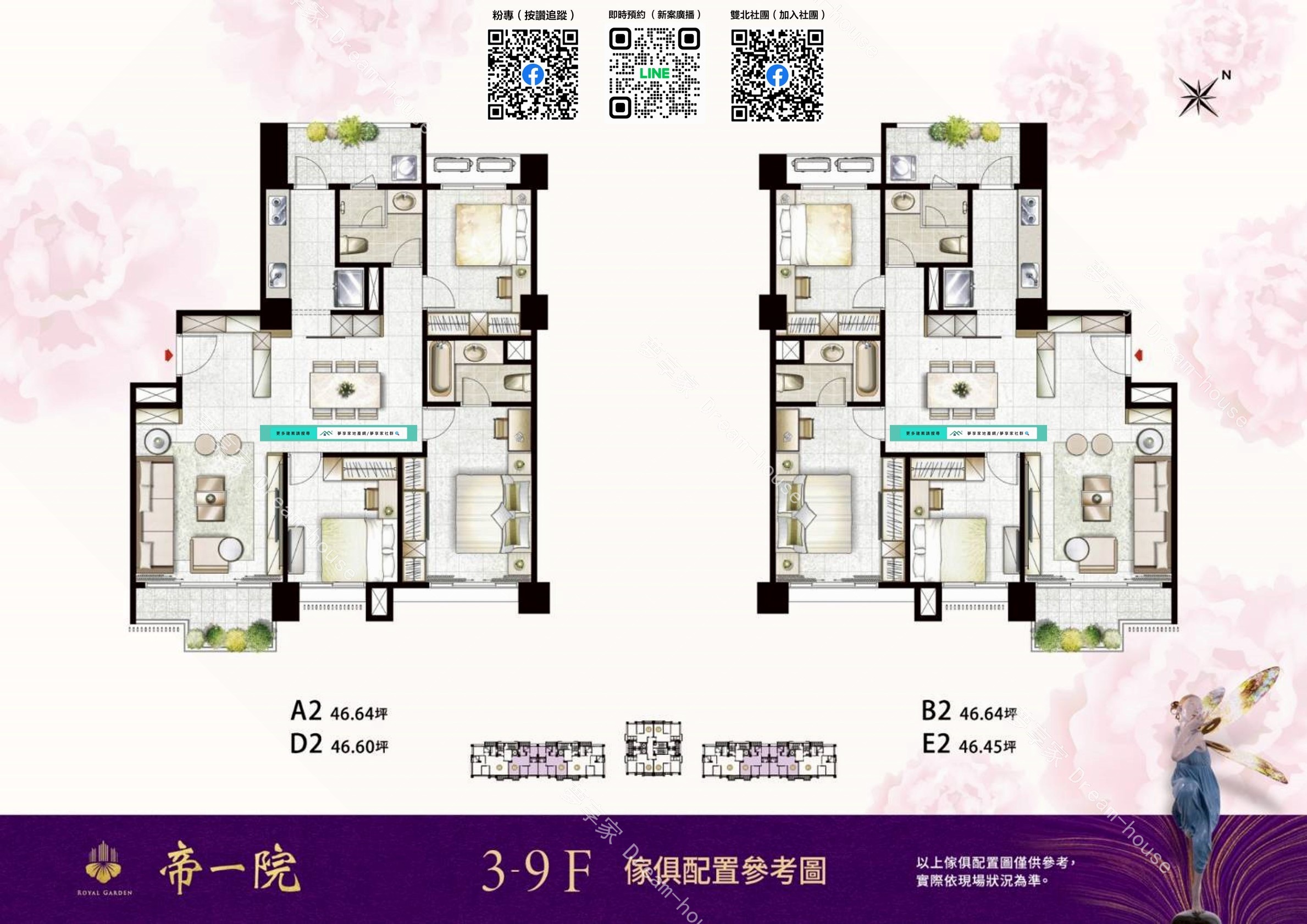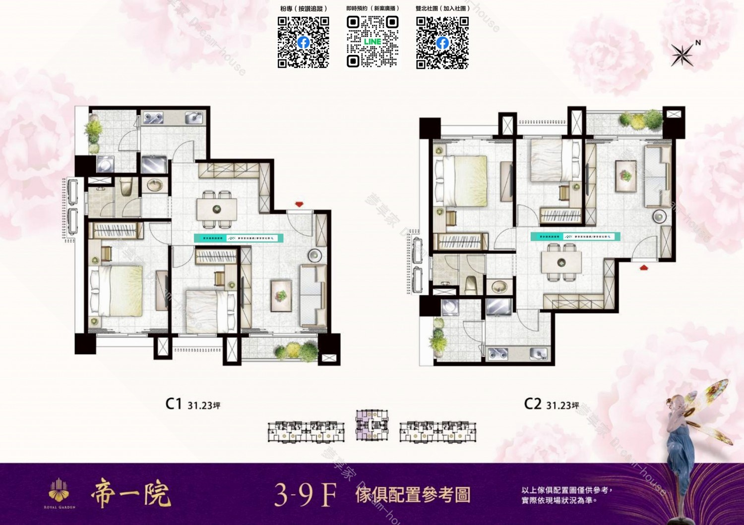 - 格局規劃 2房31.2坪 , 3房46.6坪 , 4房58.06坪