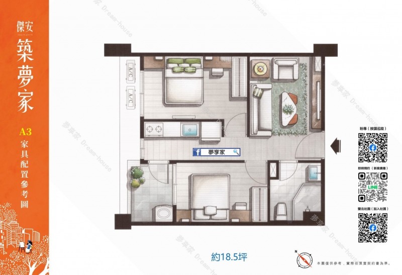 - 格局/坪數 約2房18.5~20.52坪 , 3房29.12~29.99坪