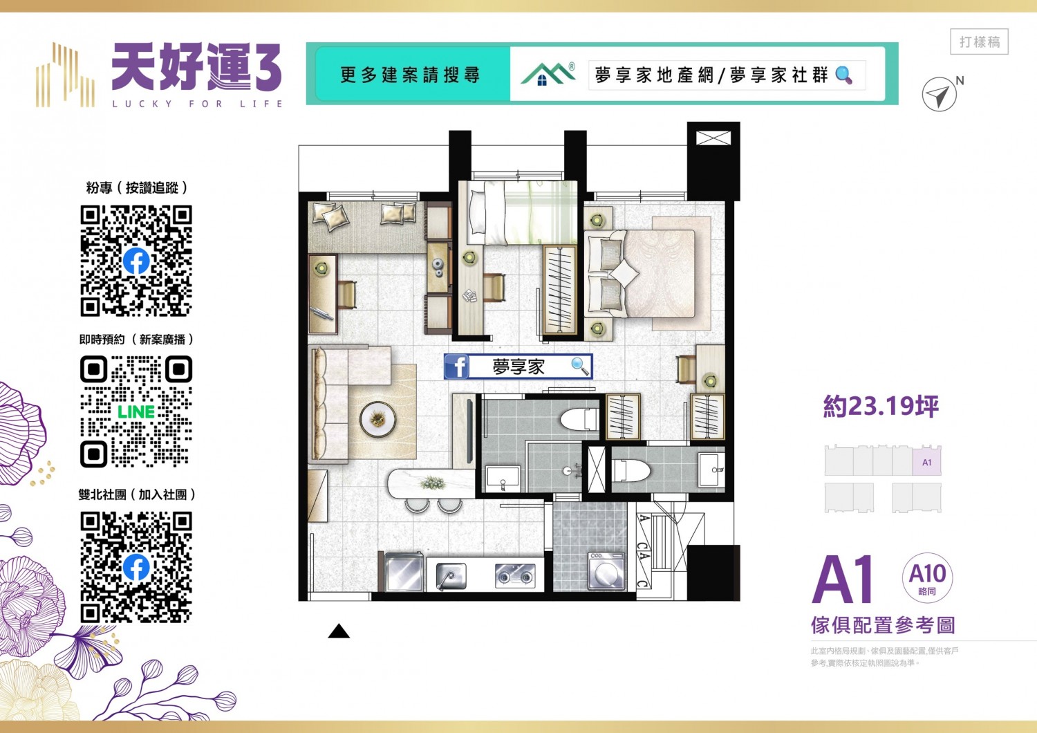 - 格局規劃 約2房16.8~21.65坪 , 2+1房23.19坪