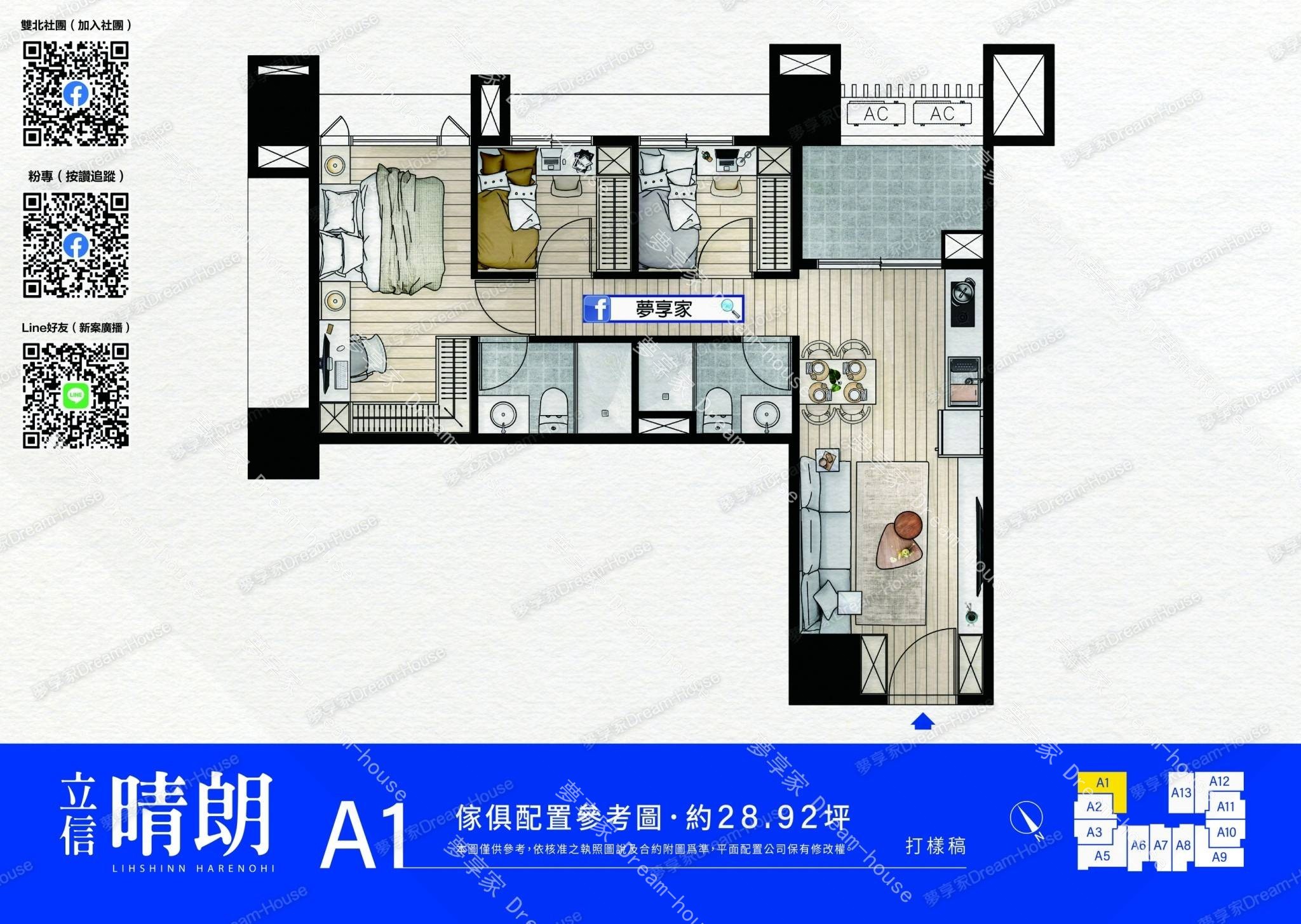 - 格局規劃 約2房20~27坪 , 3房29坪 , 店面33坪