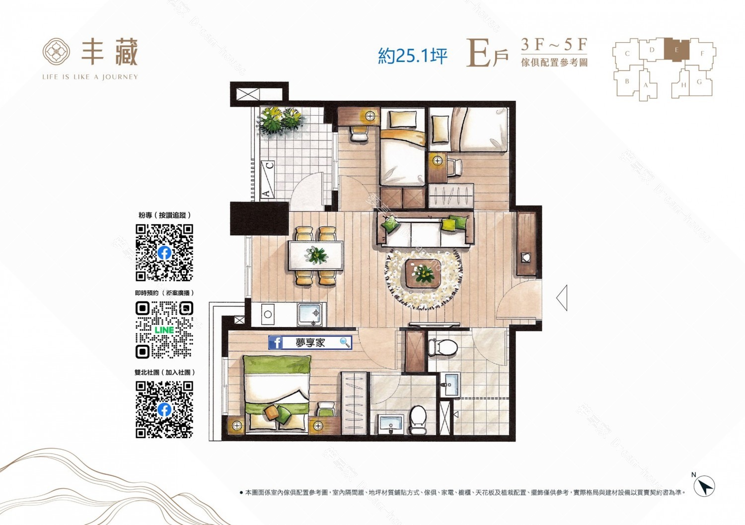 • 格局規劃 2房20~25坪 , 3房31~33坪