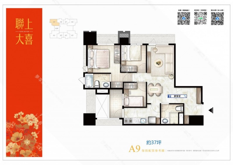 - 格局/坪數 約2房19.77坪 , 3房37.04~41.16坪