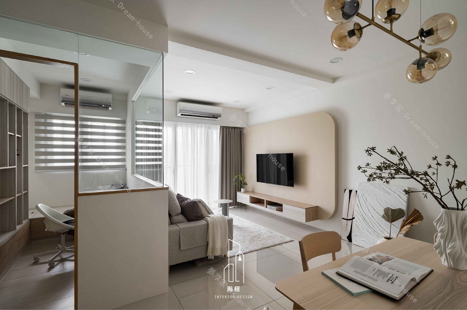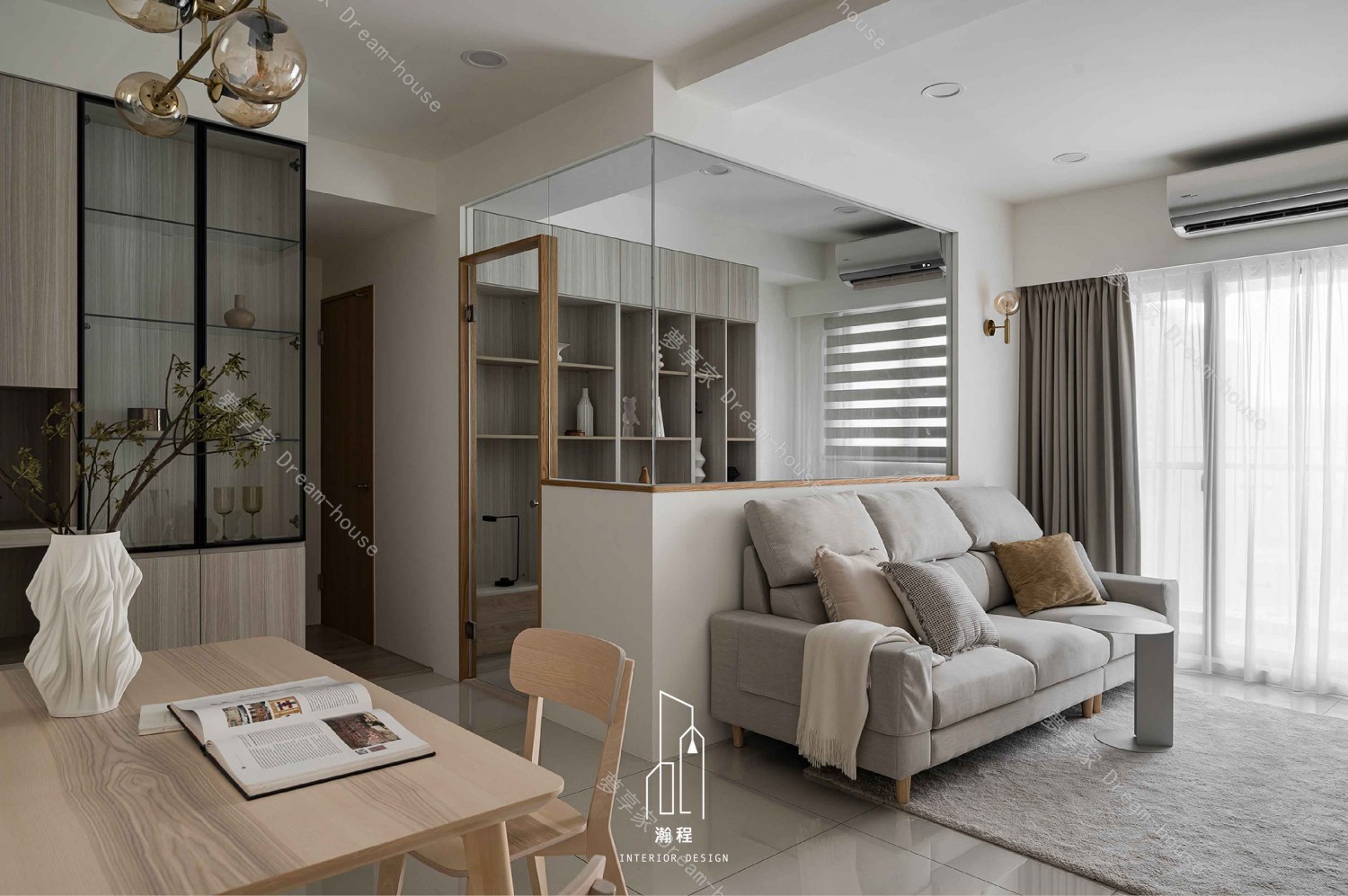 在簡潔與舒適之間,這個空間巧妙地平衡了現代生活的需求與藝術的靈感。透過精心設計的開放式空間,清晰的線條與自然材質的碰撞,呈現出一種簡約卻不失溫度的氛圍。透過玻璃隔牆的輕盈,營造出一個視覺上無縫的流動感,讓光線和空氣自由穿梭,彷彿一首靜謐的現代詩。