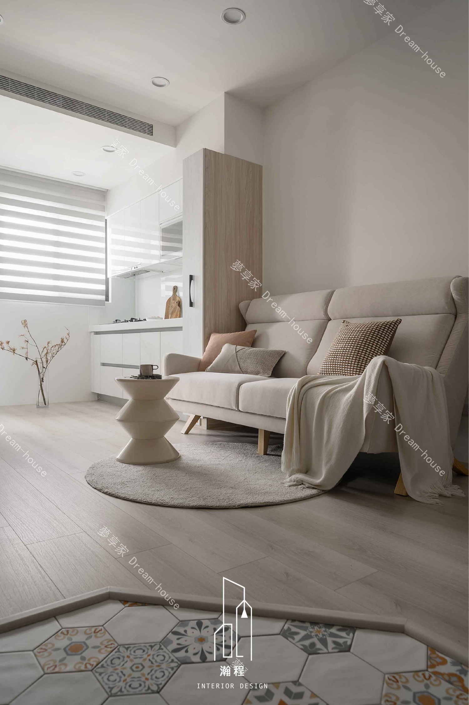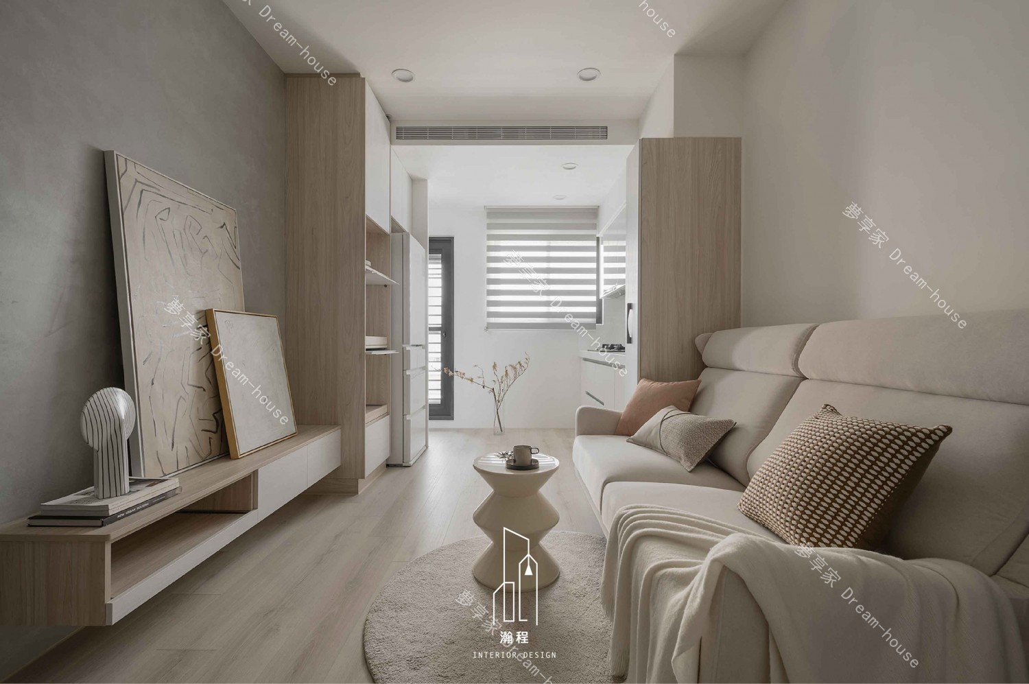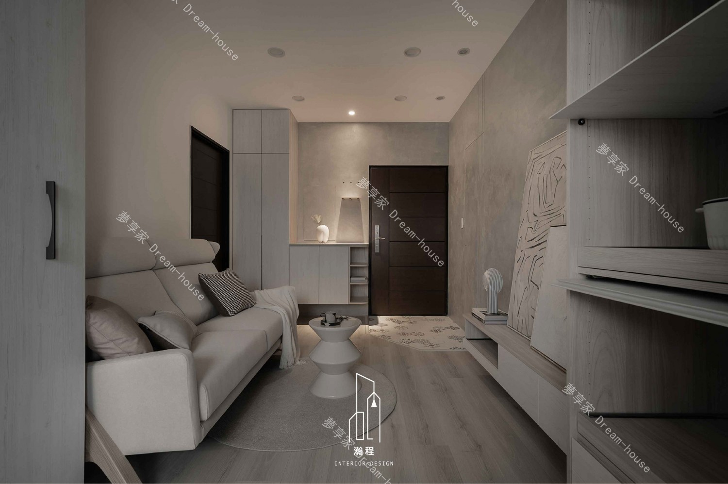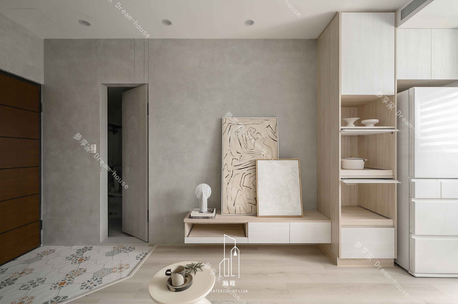 這款室內設計作品融合了現代極簡主義與自然材質,創造出一個舒適、清新的生活空間。以灰色水泥牆面和溫暖木質元素為主,配合簡約的家具設計,整體氛圍既現代又富有藝術感。精心挑選的裝飾畫與細緻的燈具,為空間增添了一絲藝術氣息。開放式布局和簡潔的線條,使整個空間顯得更加寬敞、流暢,完美呈現現代家居的精緻與實用。這樣的設計,無論是視覺還是功能性,都展現出極致的美學與舒適感,為現代都市生