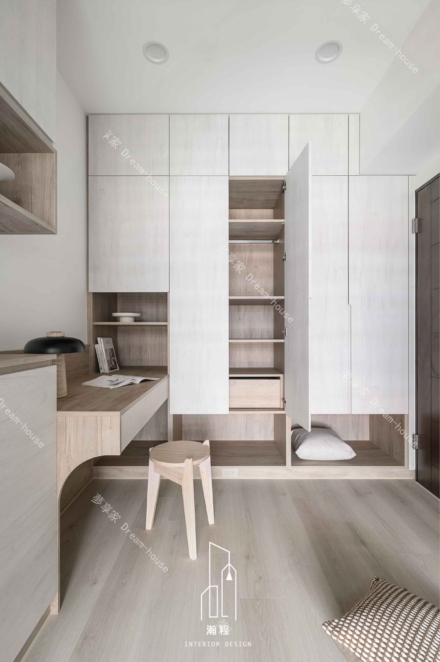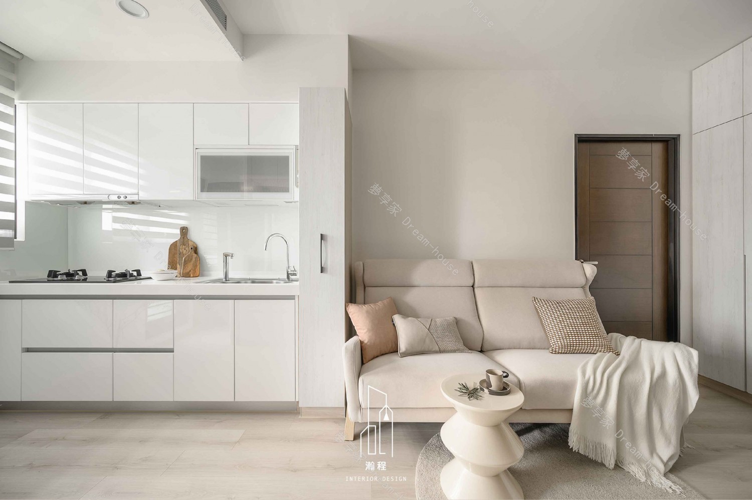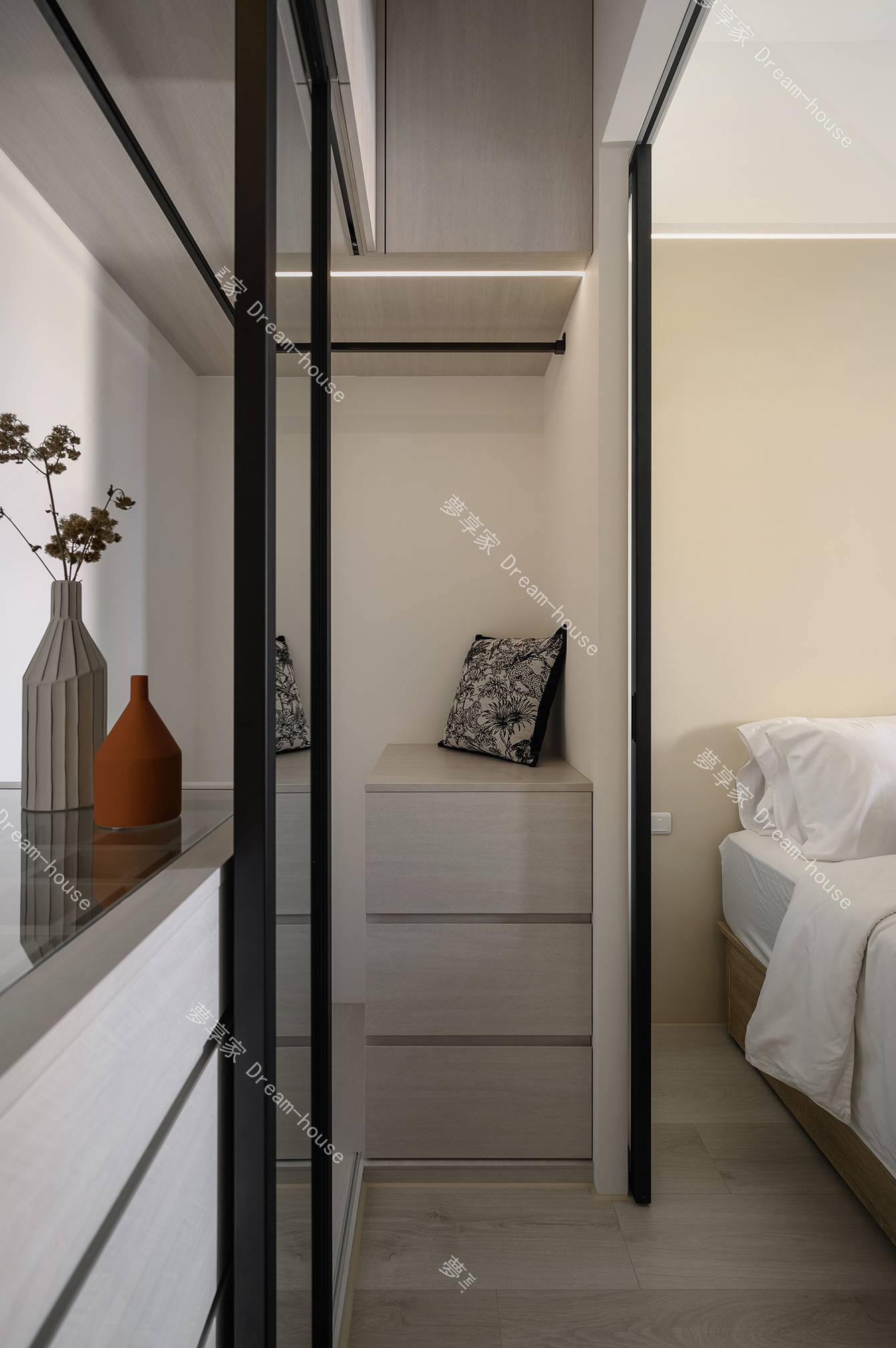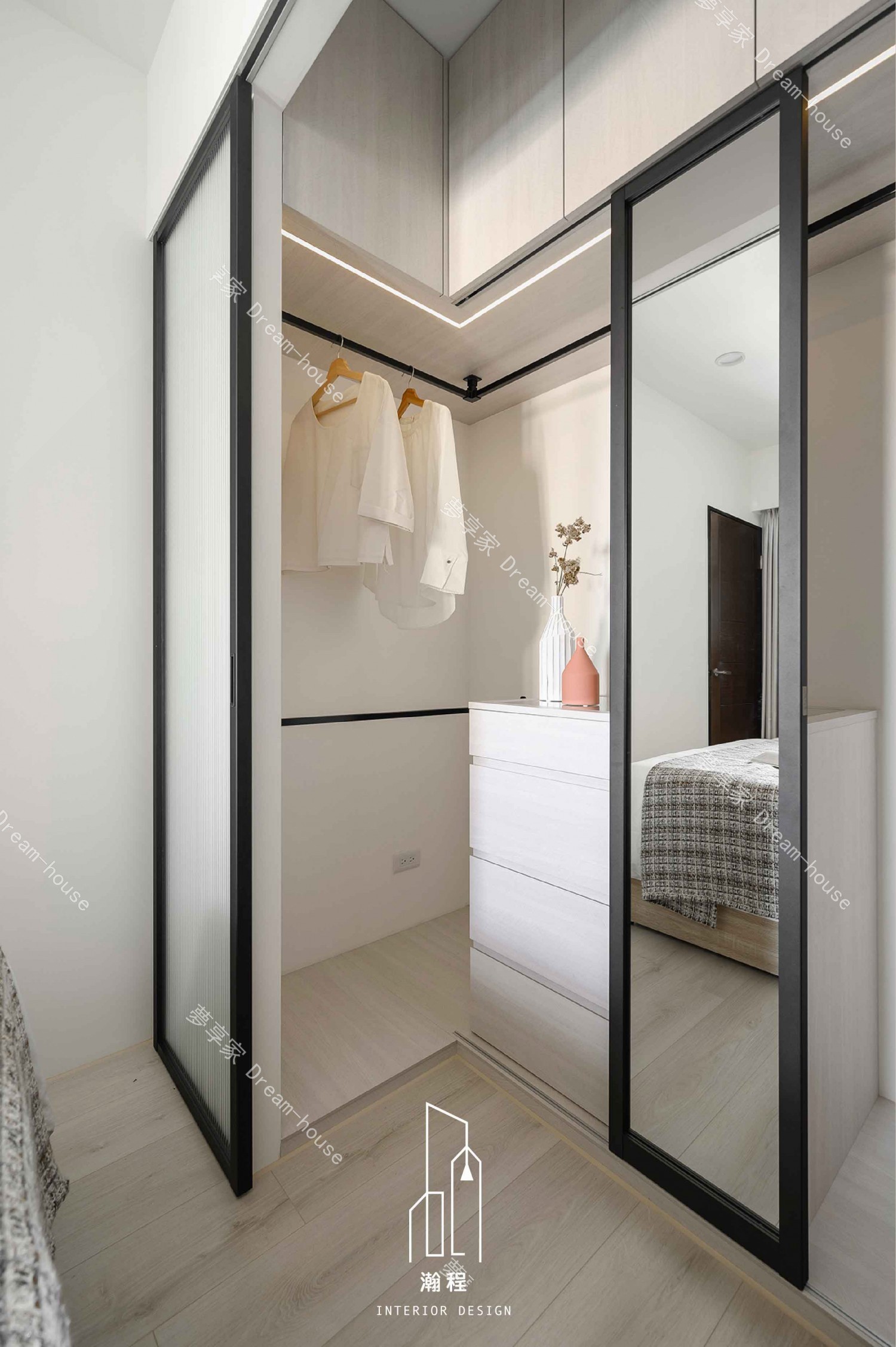 設計上需運用明亮建材、反射材質與恰當的色調搭配,改善客餐廳與廚房區域的採光限制,營造開闊輕透的空間氛圍。在入口處規劃具設計感的落塵區,兼具實用性與視覺端景效果。主臥規劃完善的更衣室提升收納量與使用動線;次臥則以兒童需求為核心,提供足夠的空間與舒適度,打造既機能完善又能隨成長調整的居住環境。