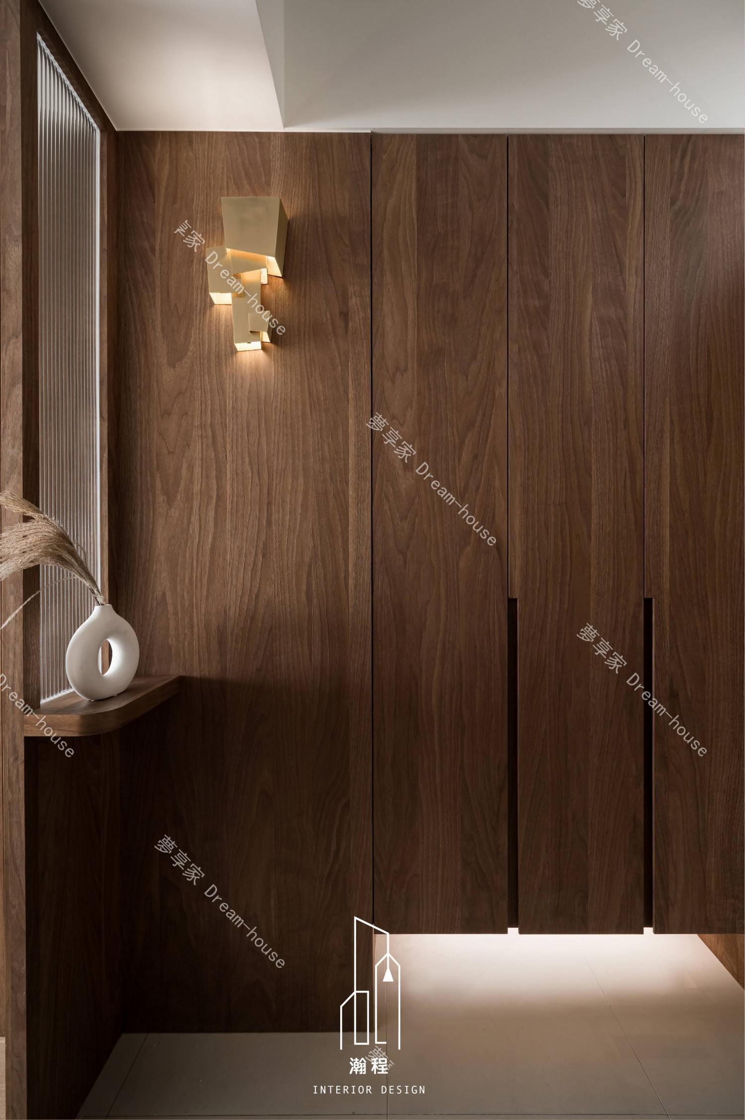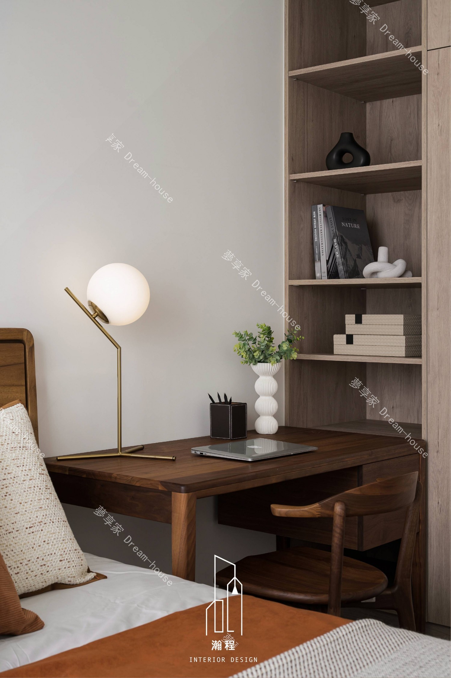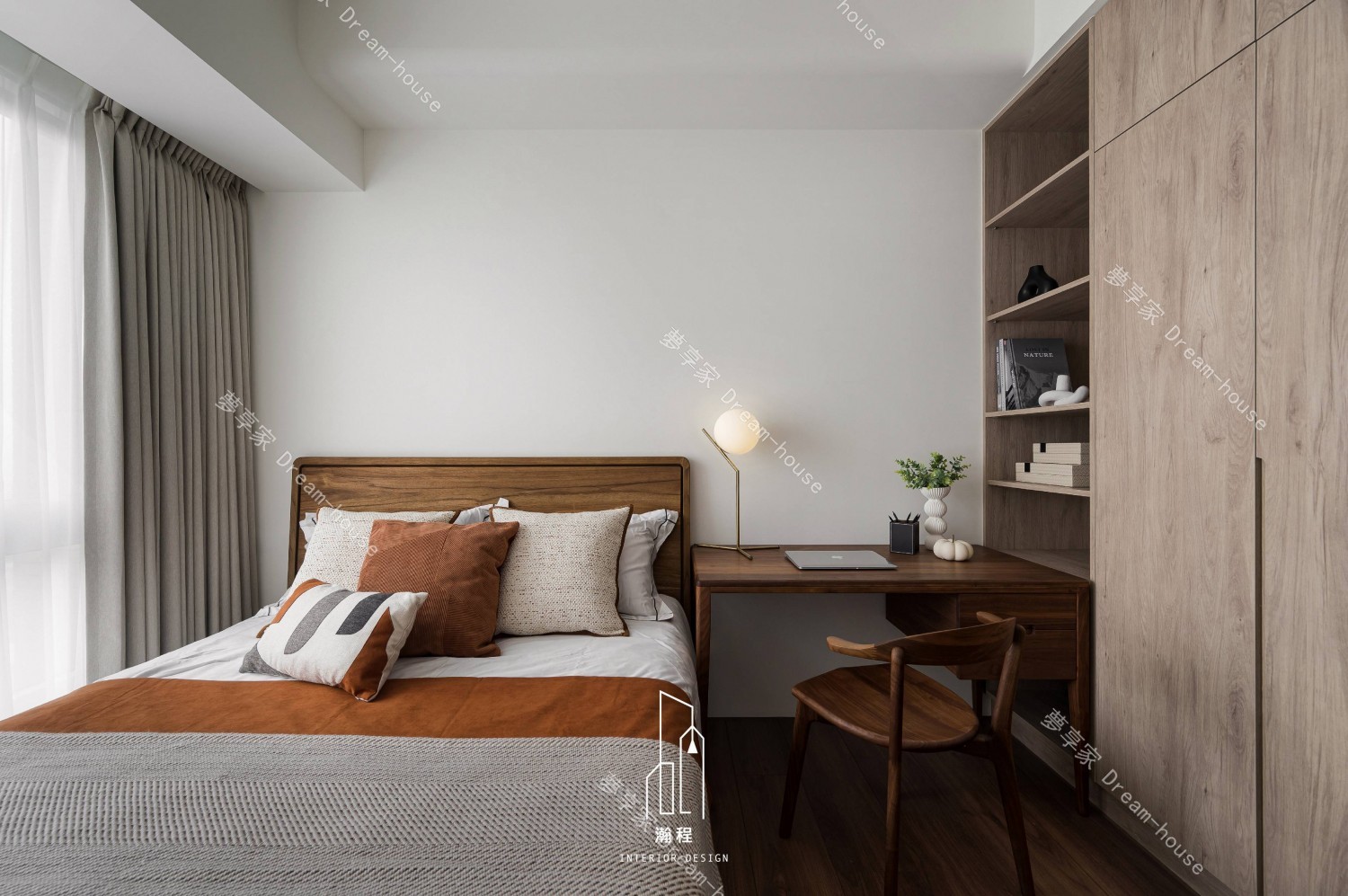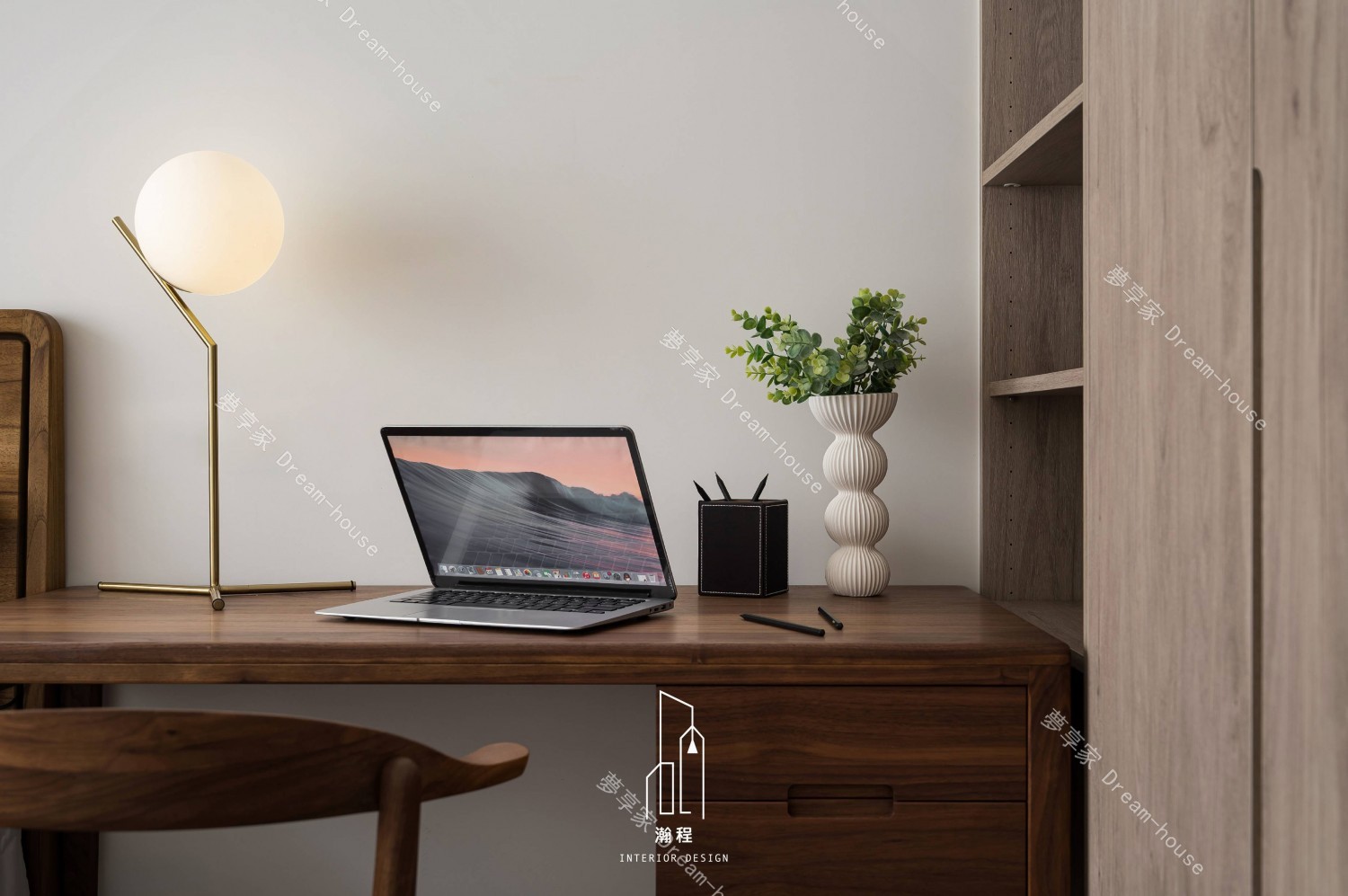這個設計作品專為一位退休老師打造,秉持著尊重過往歲月與智慧的精神,選用了胡桃木作為主要的材質,以其深邃的色調與穩重的質感,營造出一個寧靜、優雅的居住空間。胡桃木的自然紋理與色澤,讓空間散發出溫暖、沉穩的氛圍,並呼應了主人的品味與內涵。結合暖色調的皮椅與木質元素,增添了一份舒適和自然氛圍。設計師巧妙運用了大理石紋路桌面和牆面,帶來一種優雅且不失現代感的視覺效果,並且搭配低調