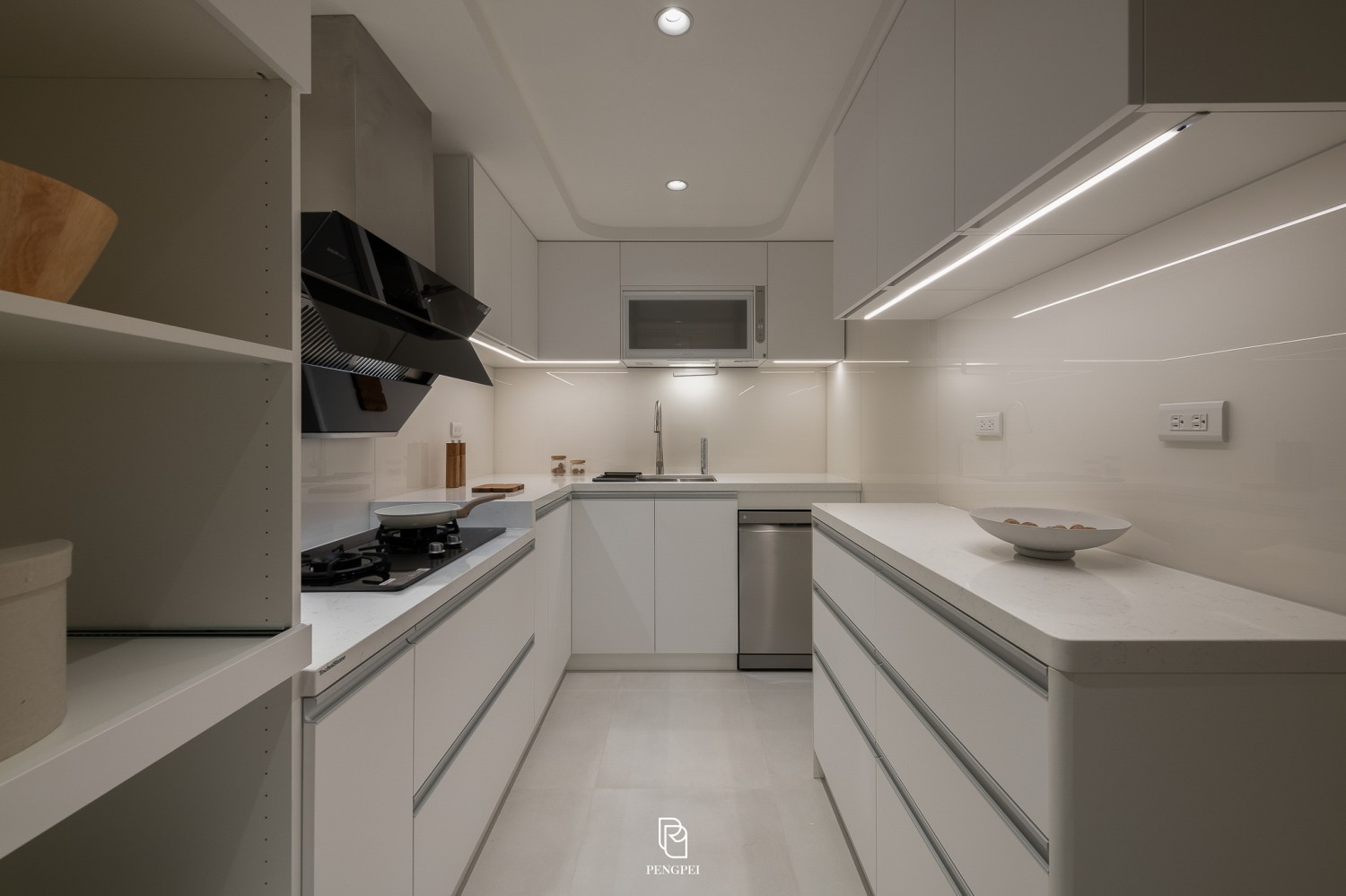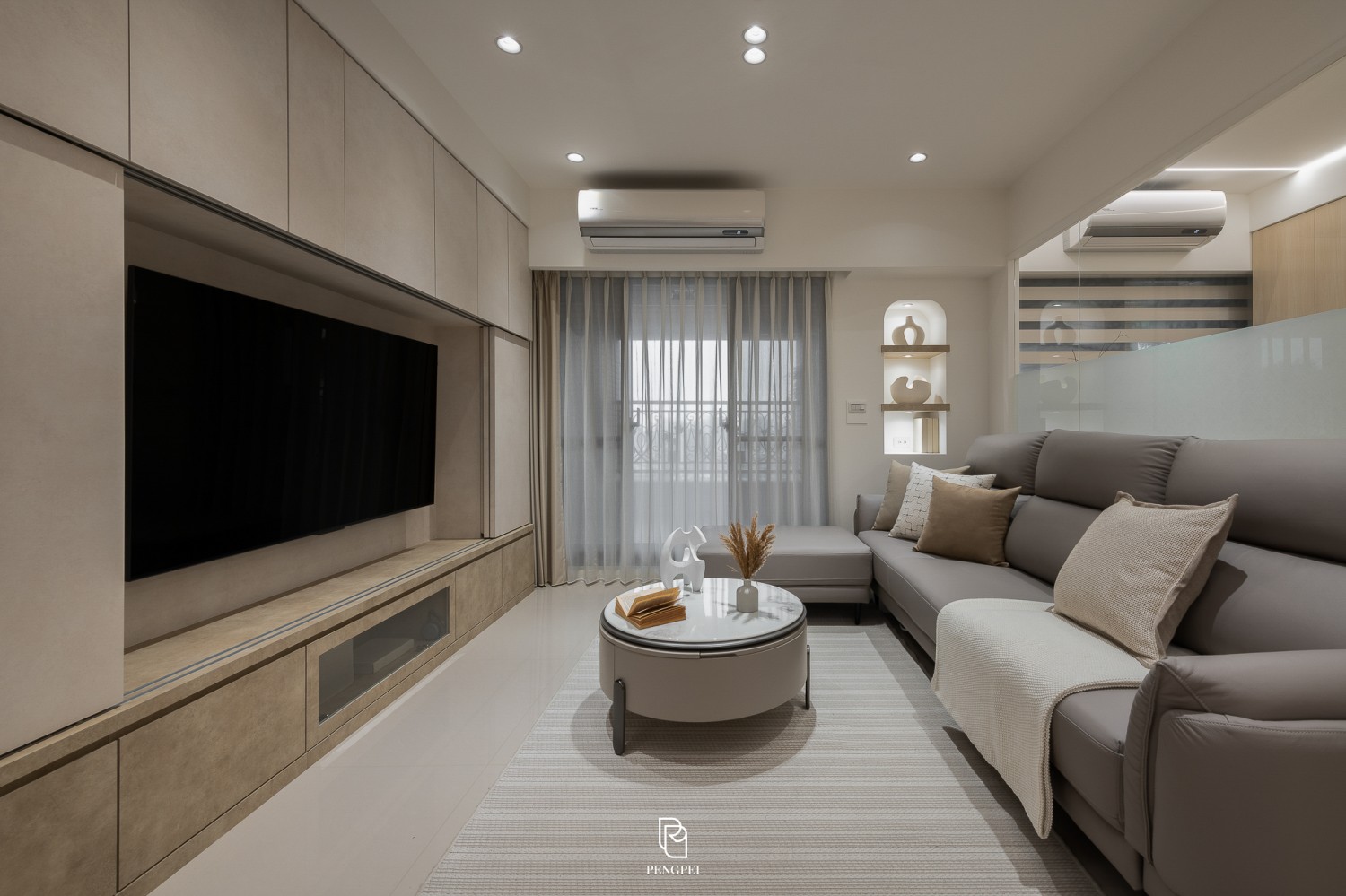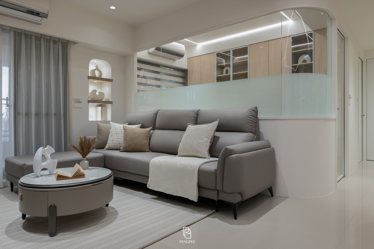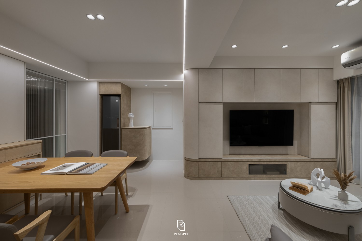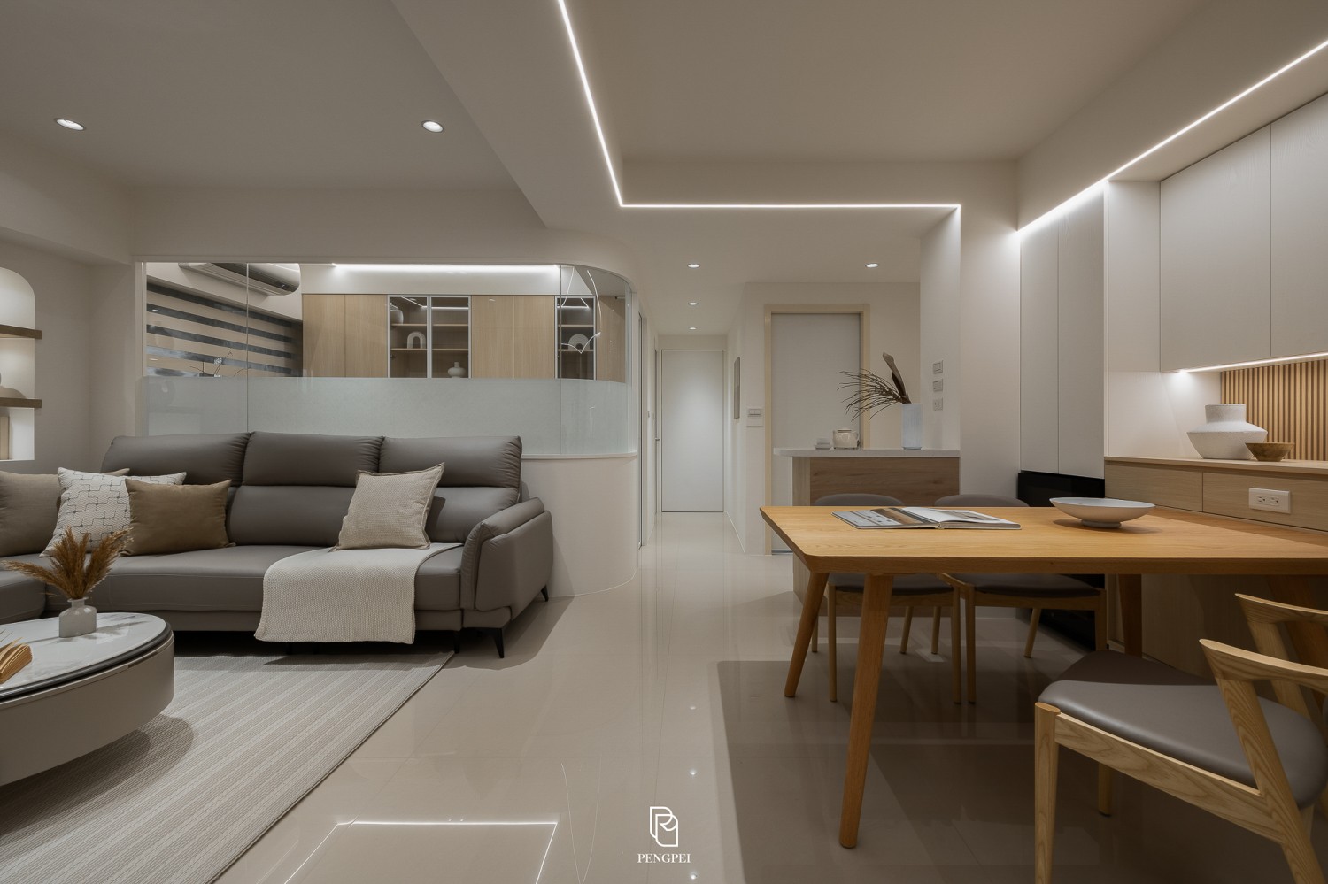 以白色與暖色調木紋為整體設計主軸,營造明亮而溫馨的居家氛圍。