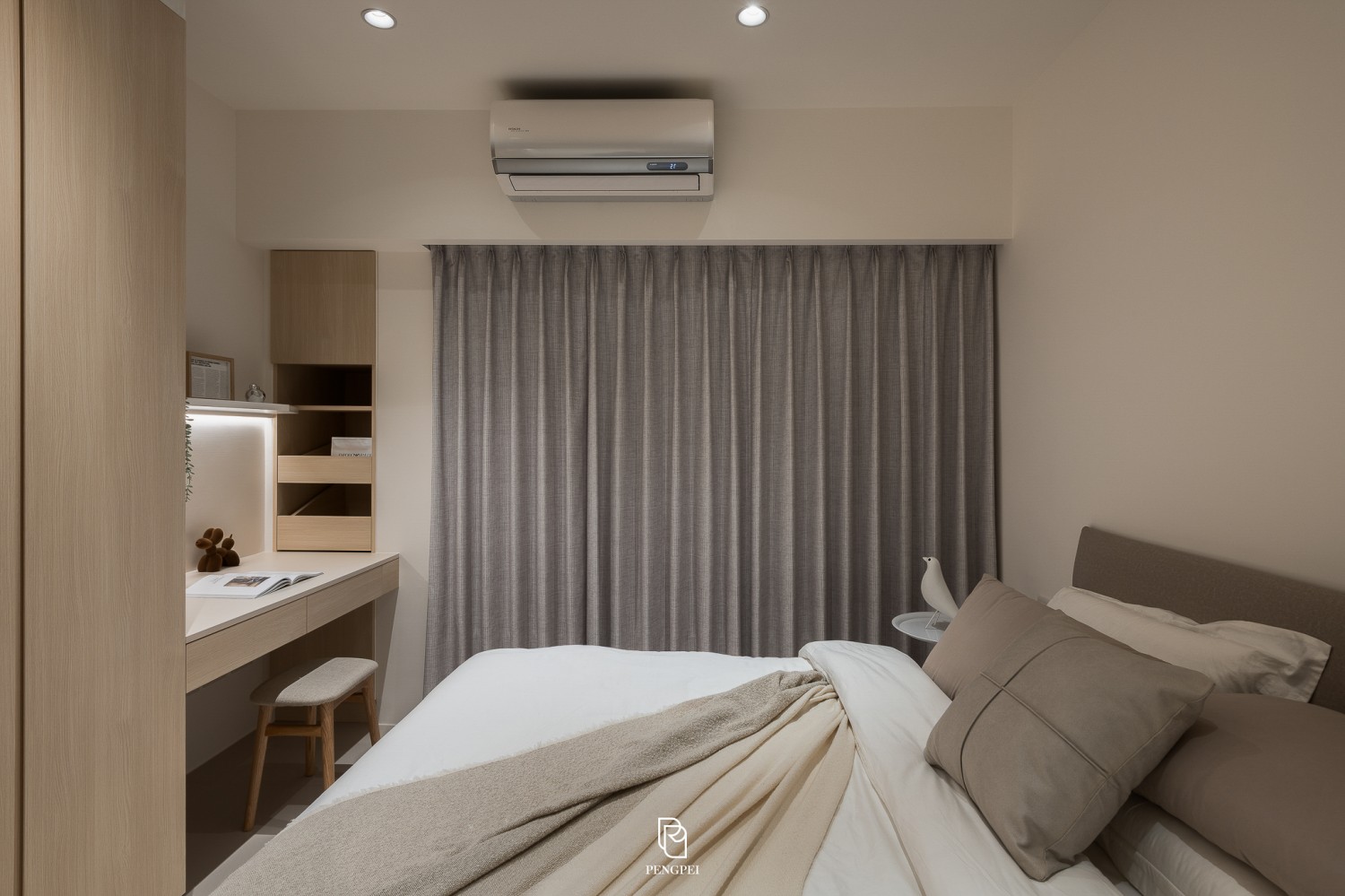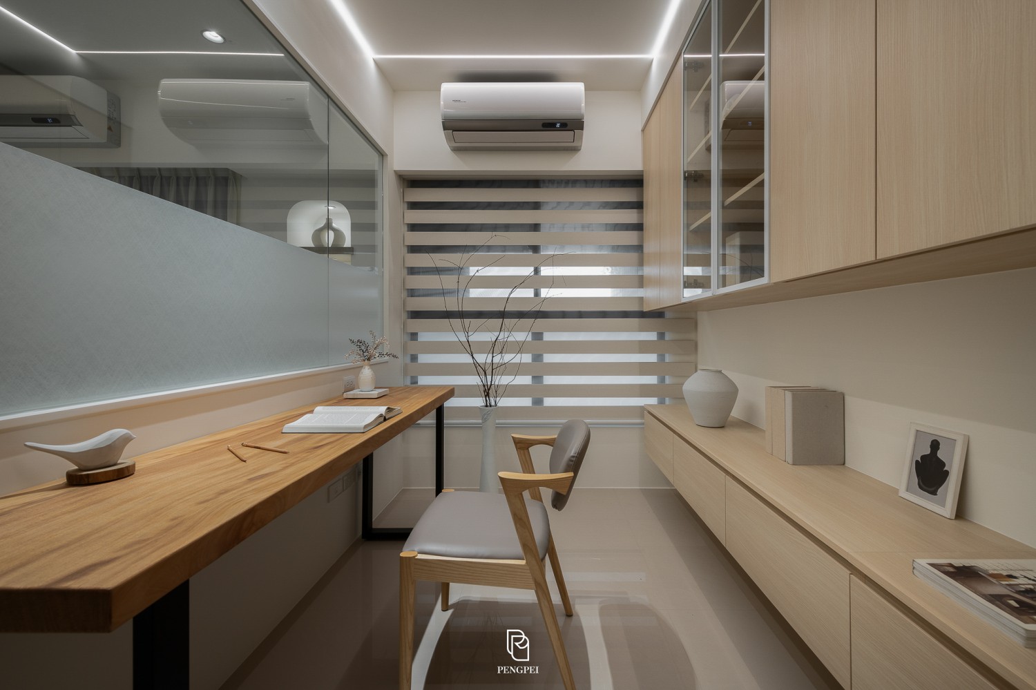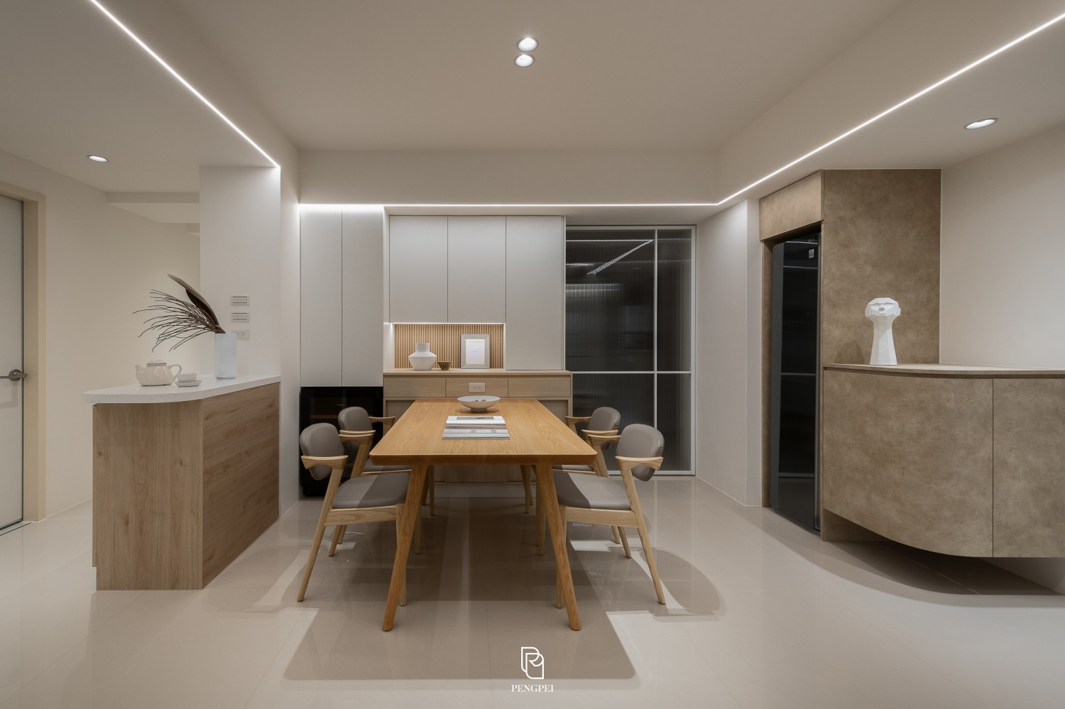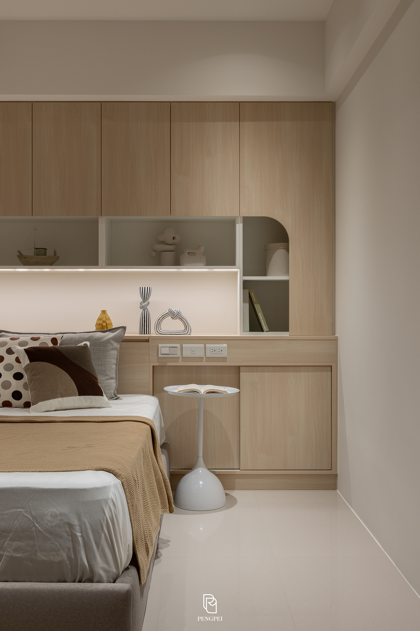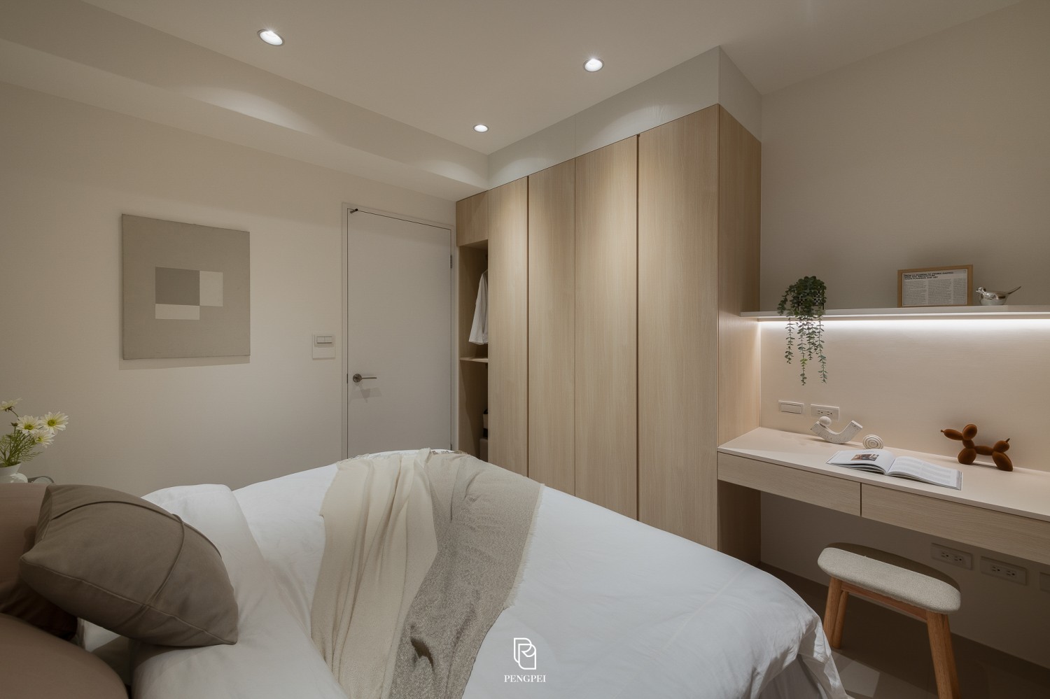 使光線在木紋與白色材質間流動,呈現輕盈舒適的視覺感受。