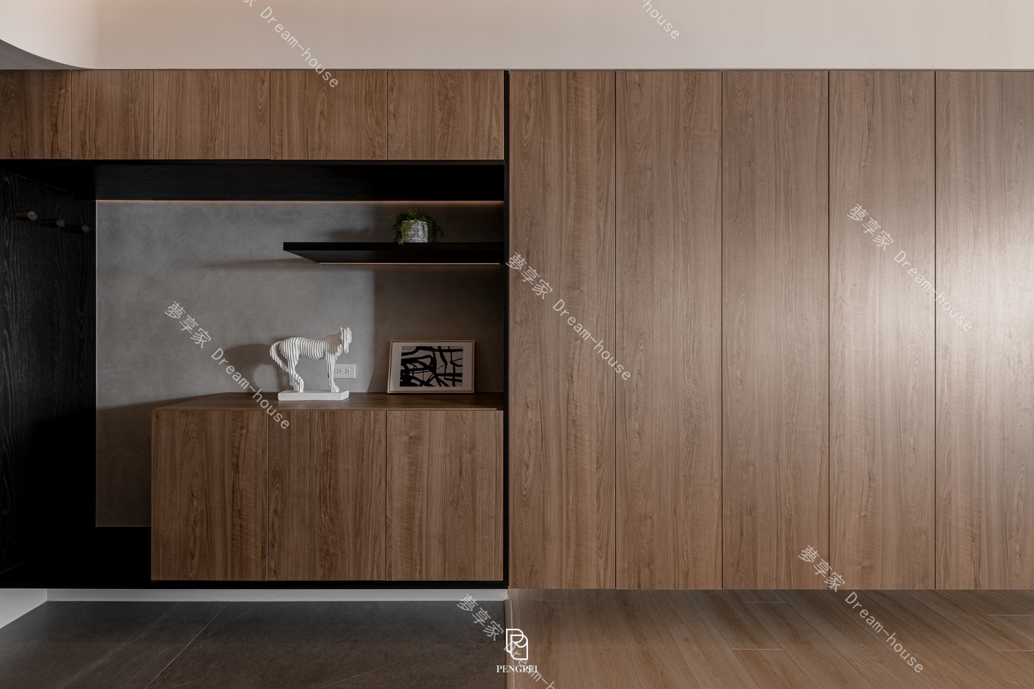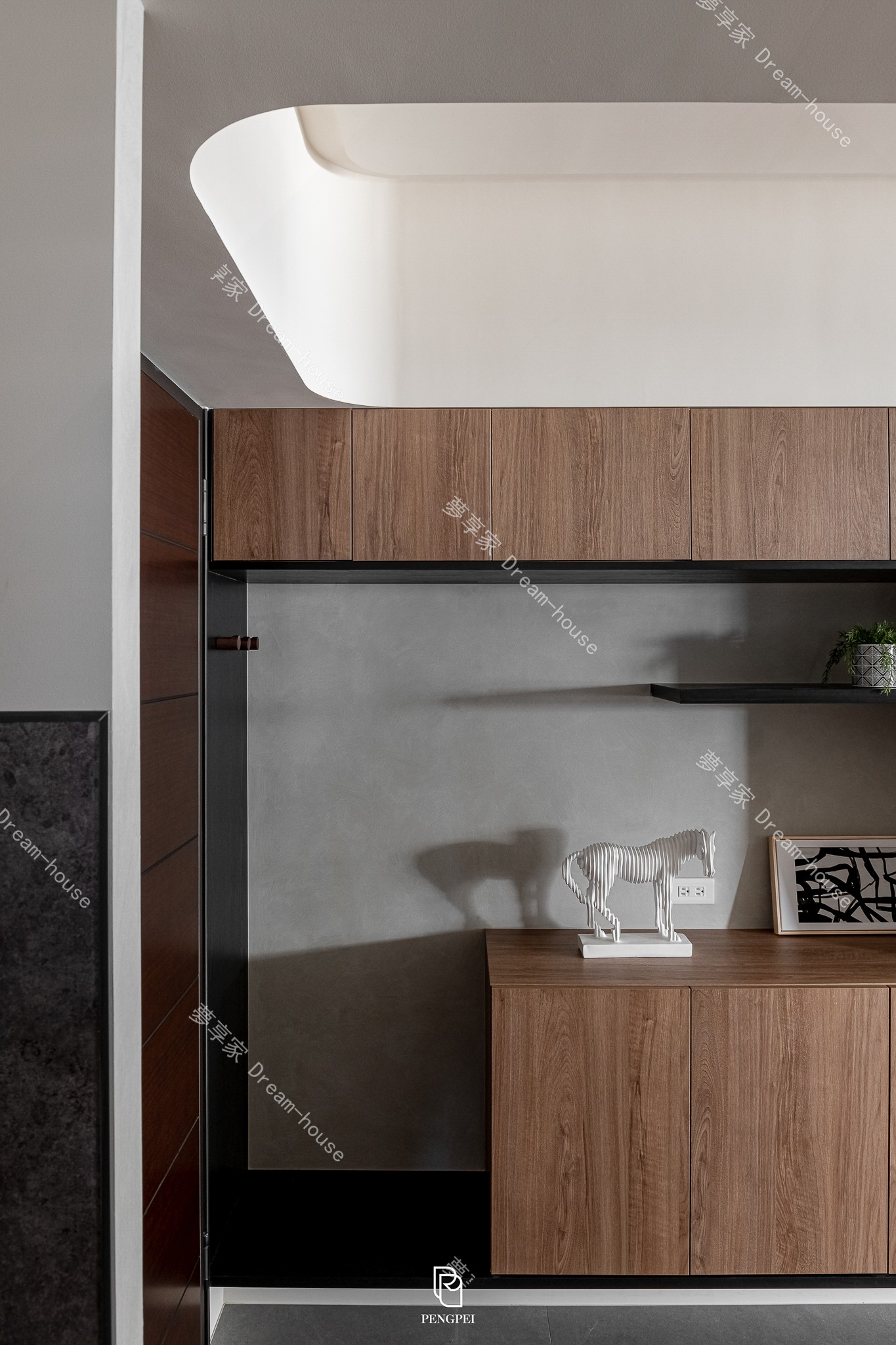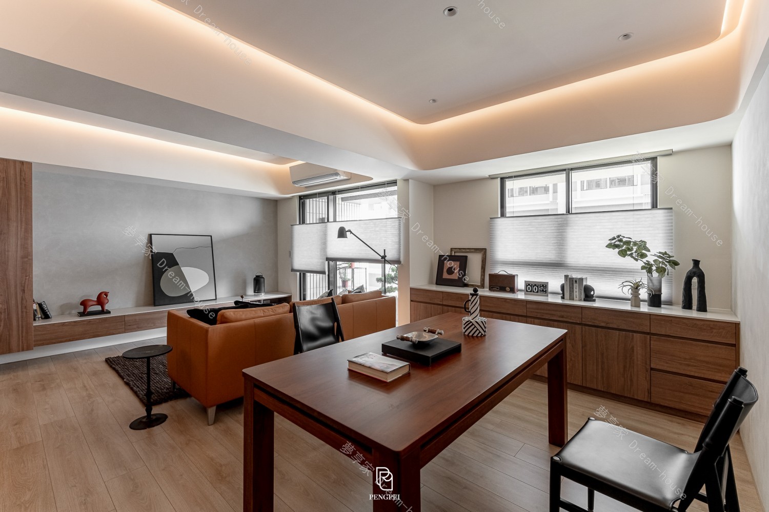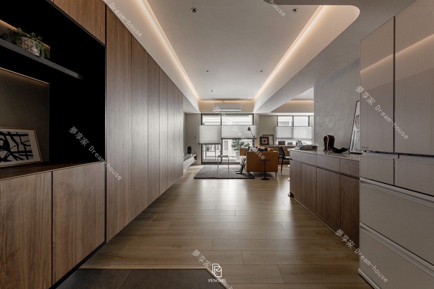 設計採用了低彩度的色調,意在引導人們靜下心來,感受生活中的簡單價值。在收納方面,設計巧妙地融入儲存解決方案,以增強空間的開闊感,使環境更加舒適和實用。流線型的燈條不僅增添了視覺上的美感,還營造出動感,讓整體空間既靜謐又富有生命力。這樣的設計理念不僅提升了居住的舒適度,也展現了對簡約美學的追求。