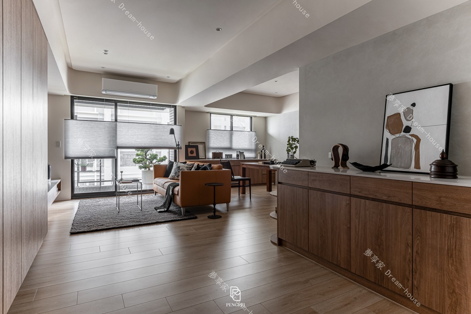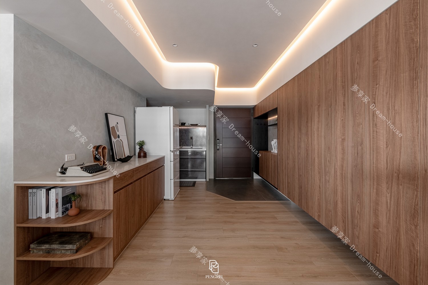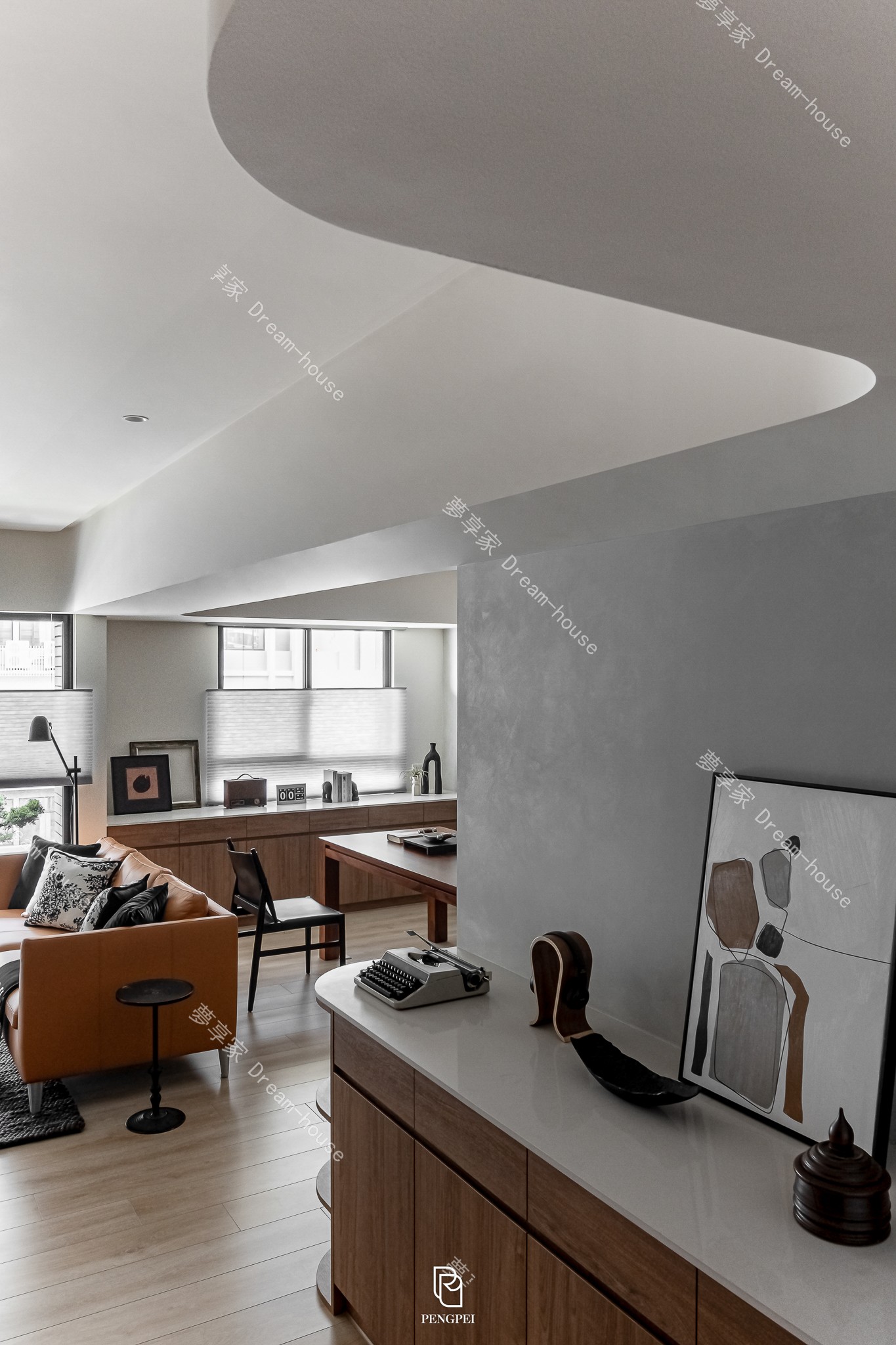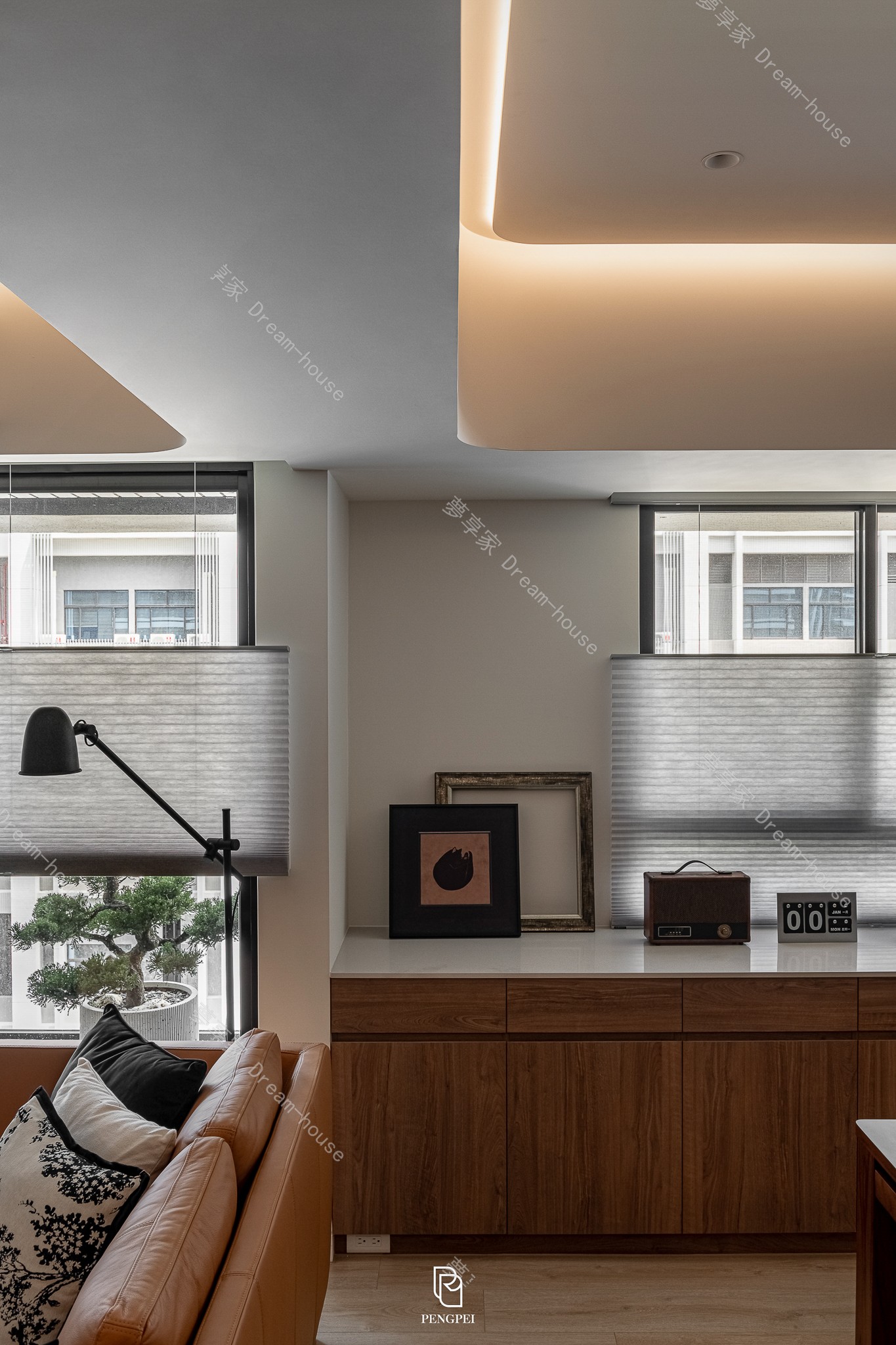 設計採用了低彩度的色調,意在引導人們靜下心來,感受生活中的簡單價值。在收納方面,設計巧妙地融入儲存解決方案,以增強空間的開闊感,使環境更加舒適和實用。流線型的燈條不僅增添了視覺上的美感,還營造出動感,讓整體空間既靜謐又富有生命力。這樣的設計理念不僅提升了居住的舒適度,也展現了對簡約美學的追求。