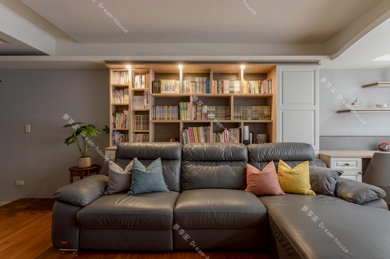 設計希望將閱讀、工作、展示與客廳休憩融合在同一視覺軸線上,使生活機能不再被分散,而是自然地串連,並讓屋主可以在一個空間中完成多種活動。