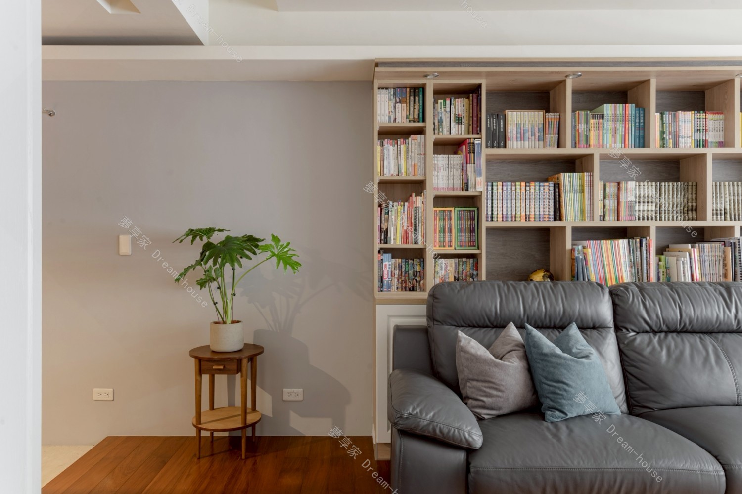 層架位置、深度與光線方向都經過設計,使收藏品、書籍、植栽在視覺上自然融入,不突兀、不紛亂,讓生活細節成為空間的裝飾。