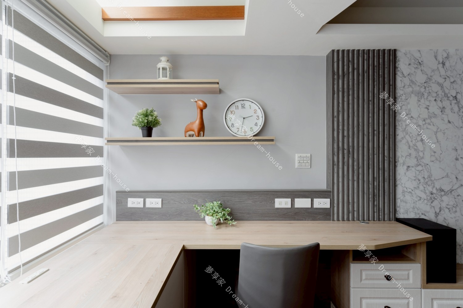 因此希望工作桌與展示架整合在窗區兩側,讓機能集中又不顯混亂。