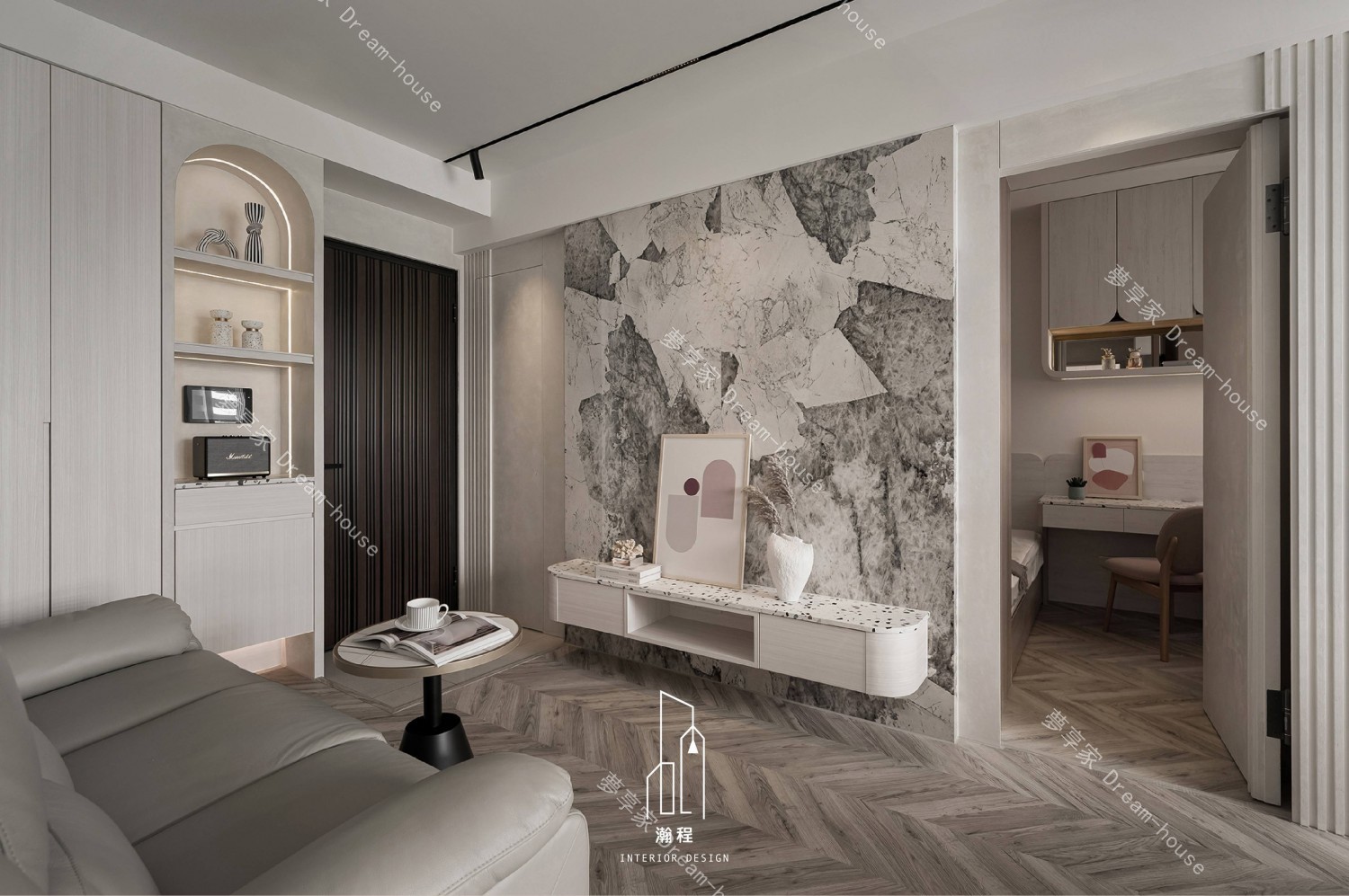 - 「灰曲」是留白與層次的交織,是剛與柔之間的溫柔過渡。 本案擷取灰階的細膩語彙,於霧光與紋理中築起一座低語的居所。 不做多餘裝飾,讓空間本身成為主角: 仿石紋牆猶如碎片畫布,拼貼著生活的片段記憶; 拱形壁龕與弧形家具,則像音符般輕巧落下, 一處處轉角,皆隱藏著不被打擾的日常美學。