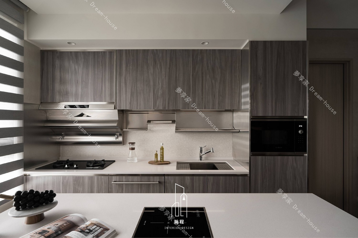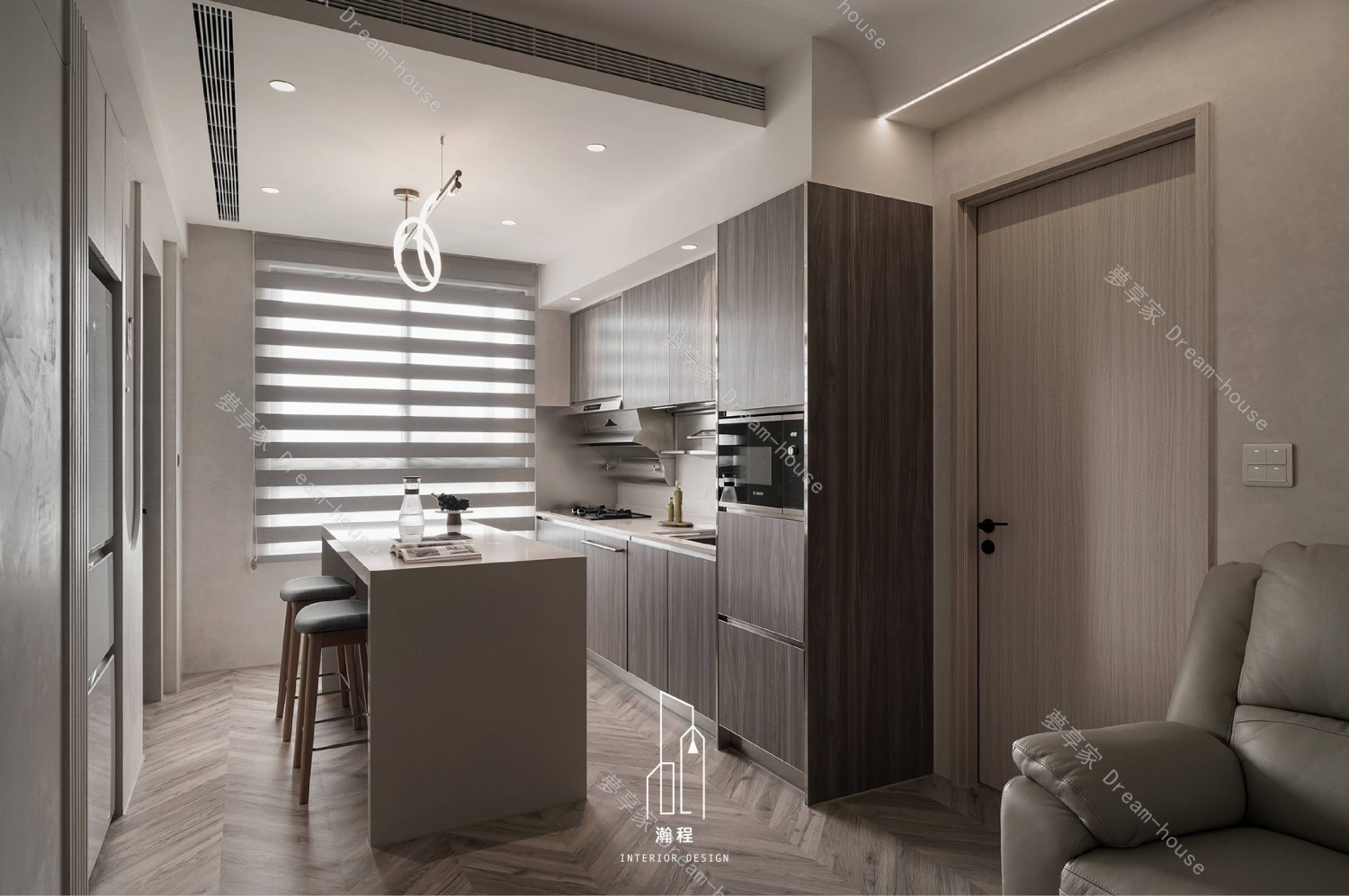 設計師的目標是將現代簡約風格與自然元素結合,以創造一個充滿設計感的生活空間。設計上注重材料的選擇與搭配,例如大板磚牆面和水磨石檯面搭配運用,不僅增添了空間的層次感,也使得視覺效果更加豐富。設計師希望每一個細節都能為空間增添價值,不僅是視覺上的美感,也兼顧使用上的實用性與舒適度。