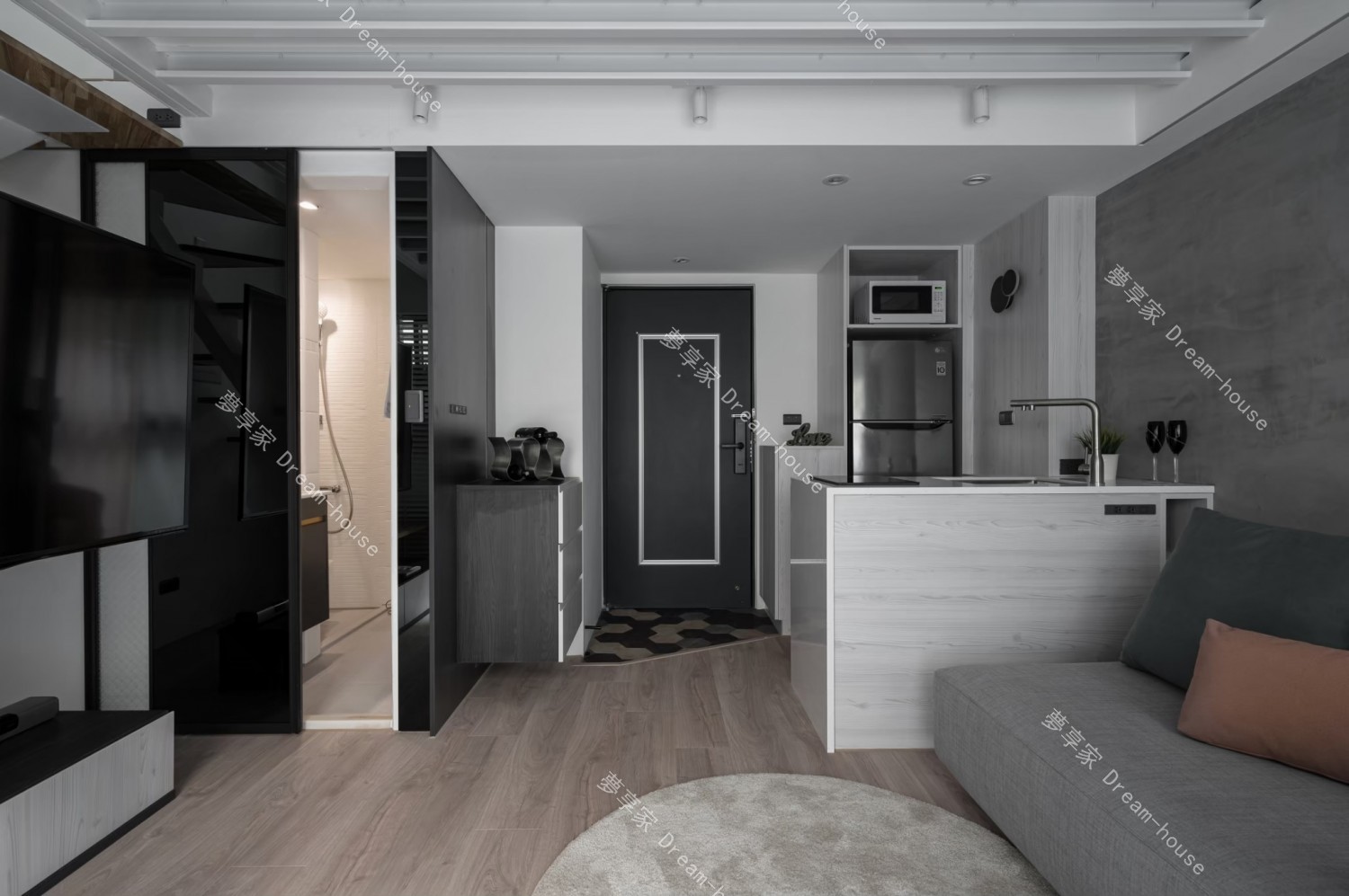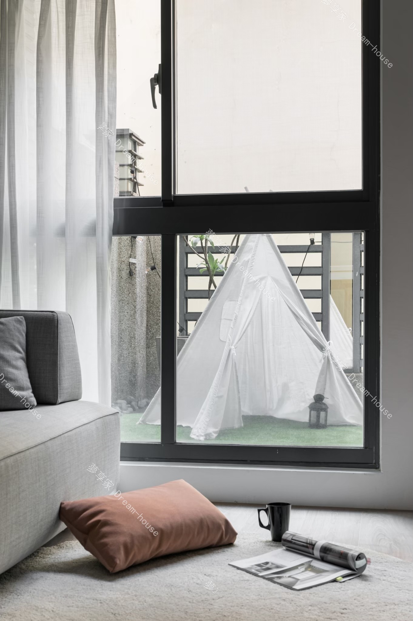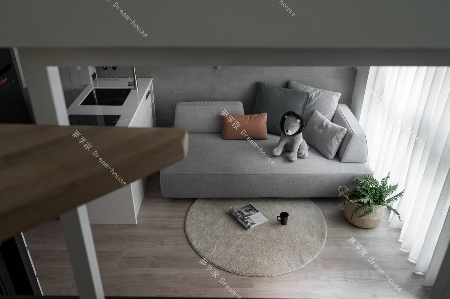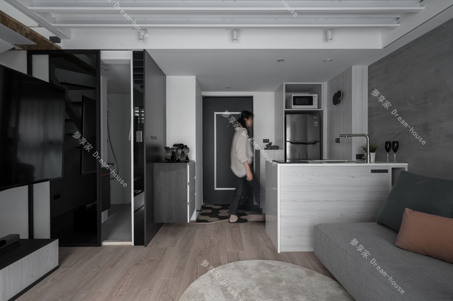因為自身偏好黑、白、灰色調,但仍盼環境有微暖氛圍,便將灰階引入北歐風室內設計風格,使大露