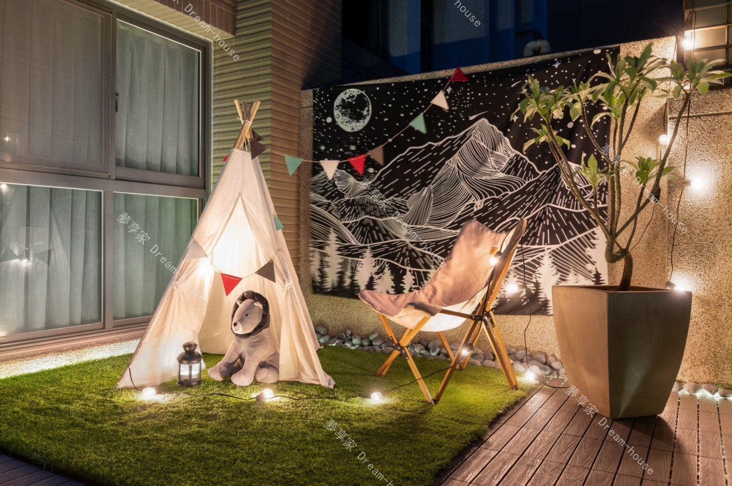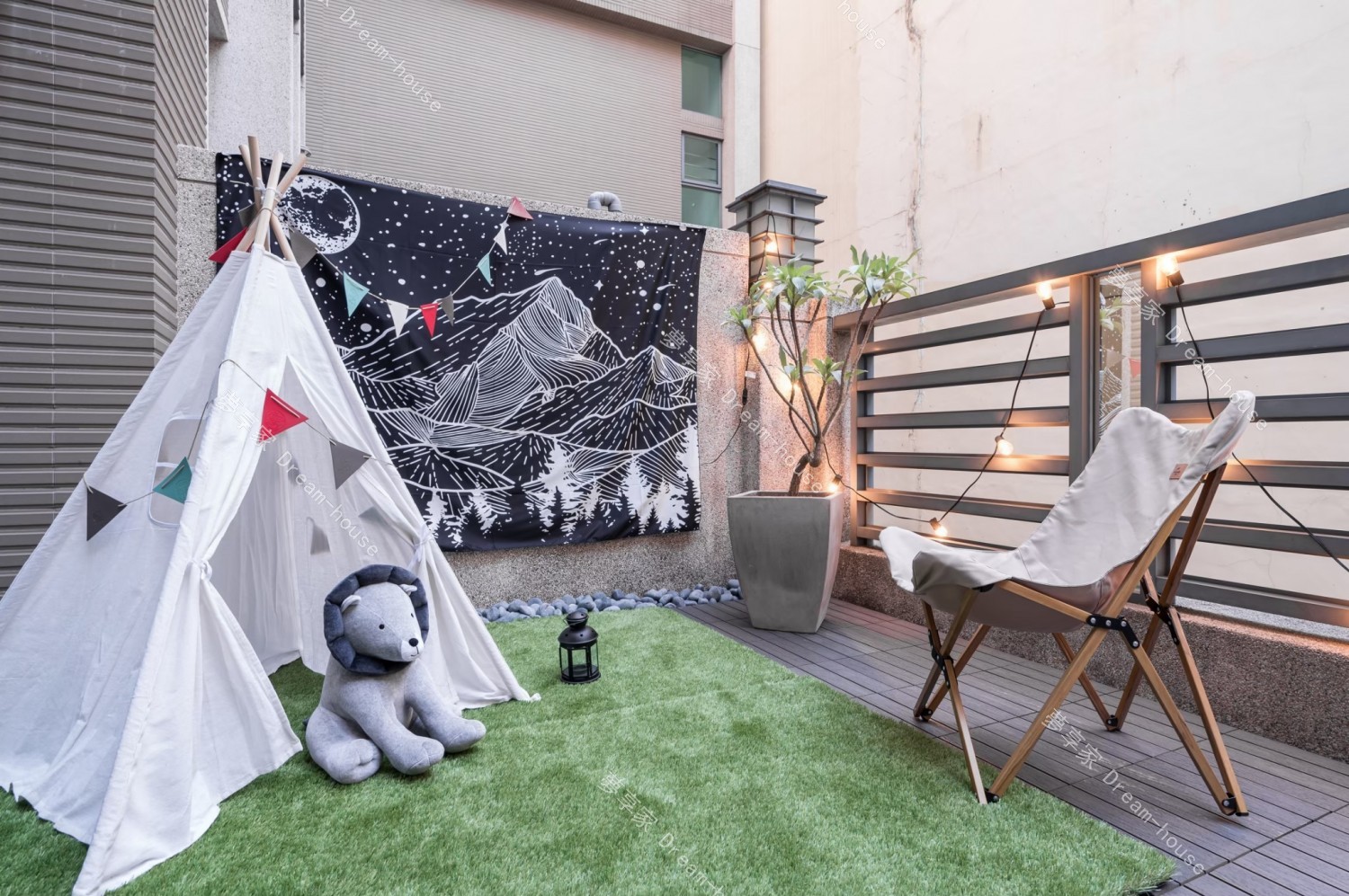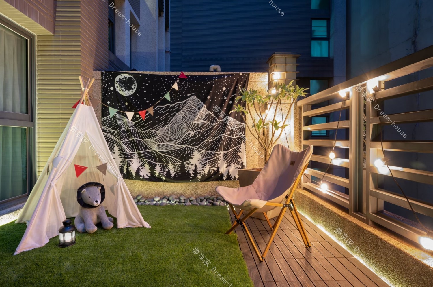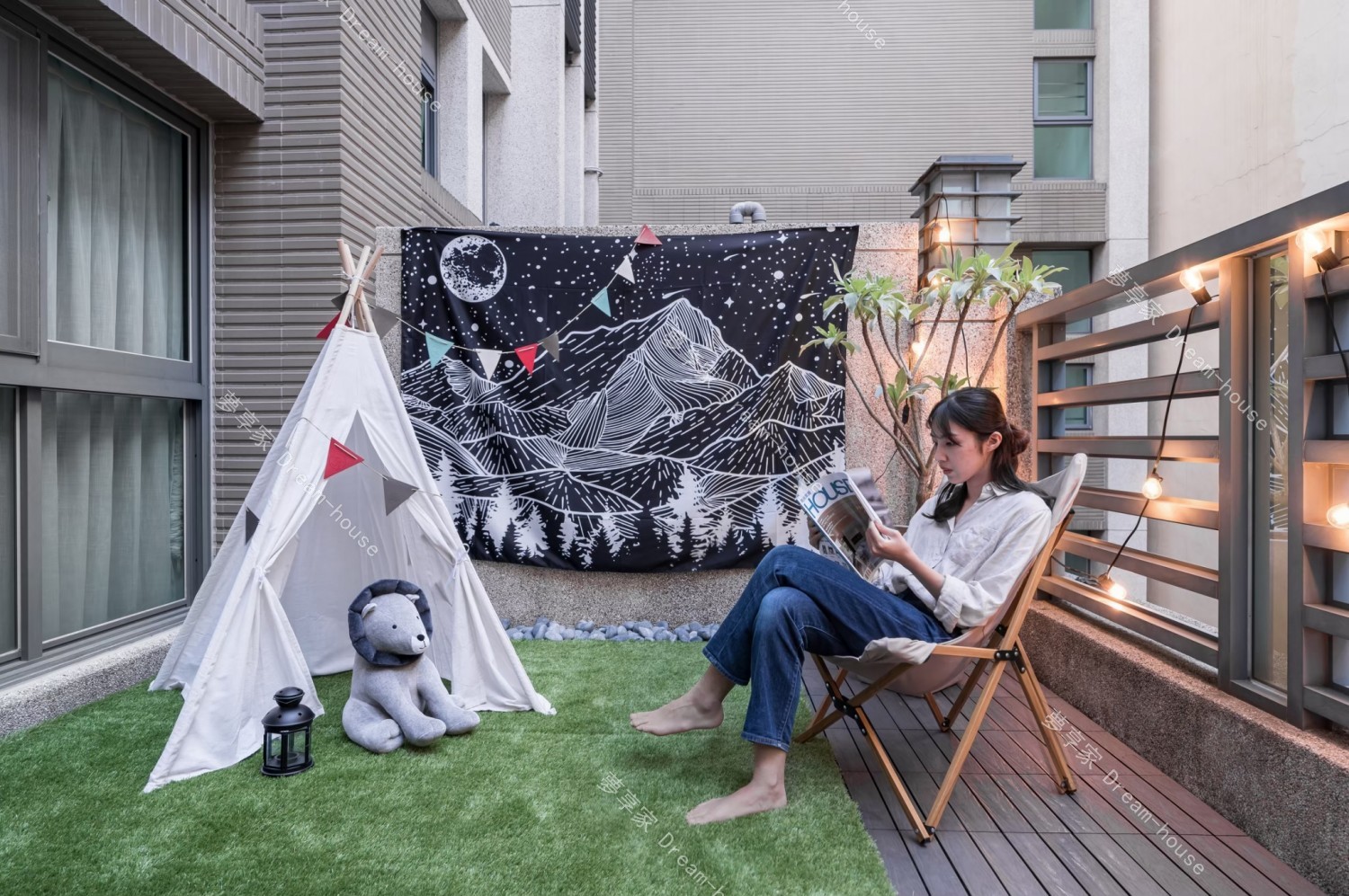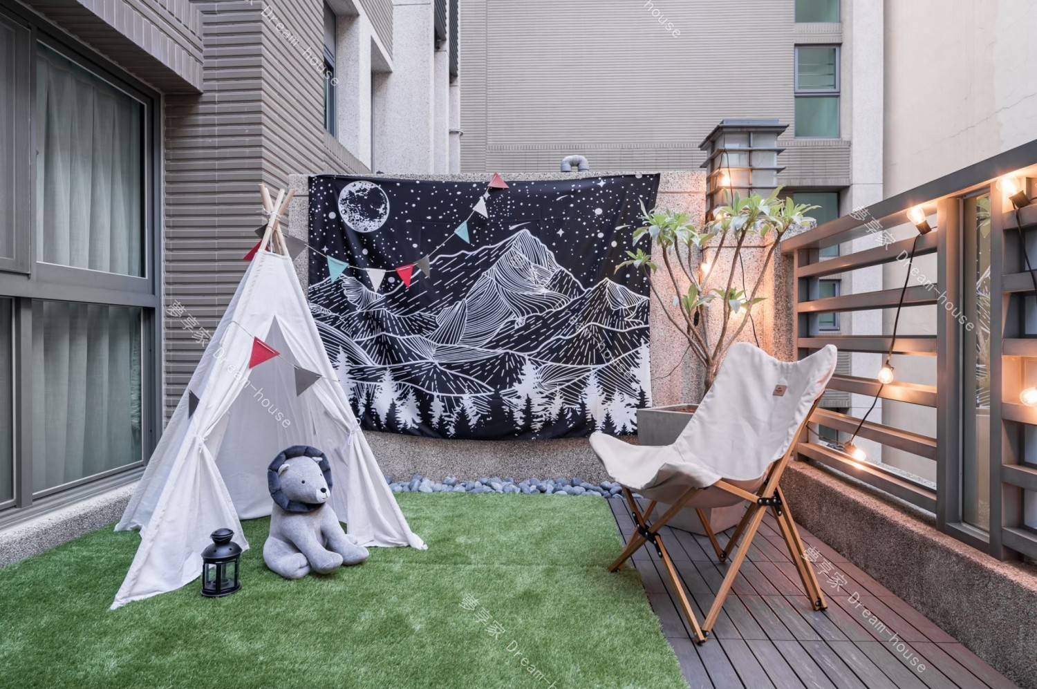 露台是使充沛光線挹注室內之源,也凝聚了愛與溫暖,與好友一同手作 DIY ,以人工草皮搭配塑木地板,讓綠植一隅滋養每日,使城市月光溫暖每夜。