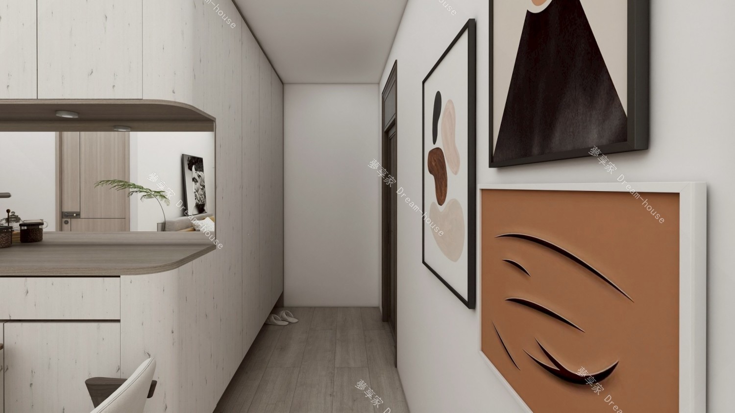 以弧形元素弱化量體感,讓櫃體與牆面更柔順融入空間