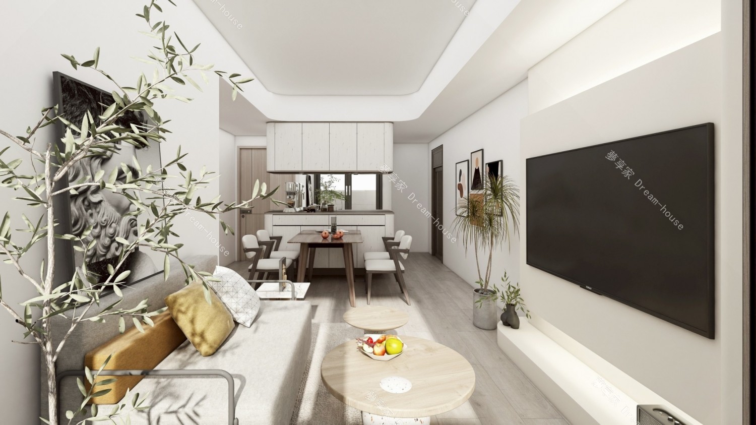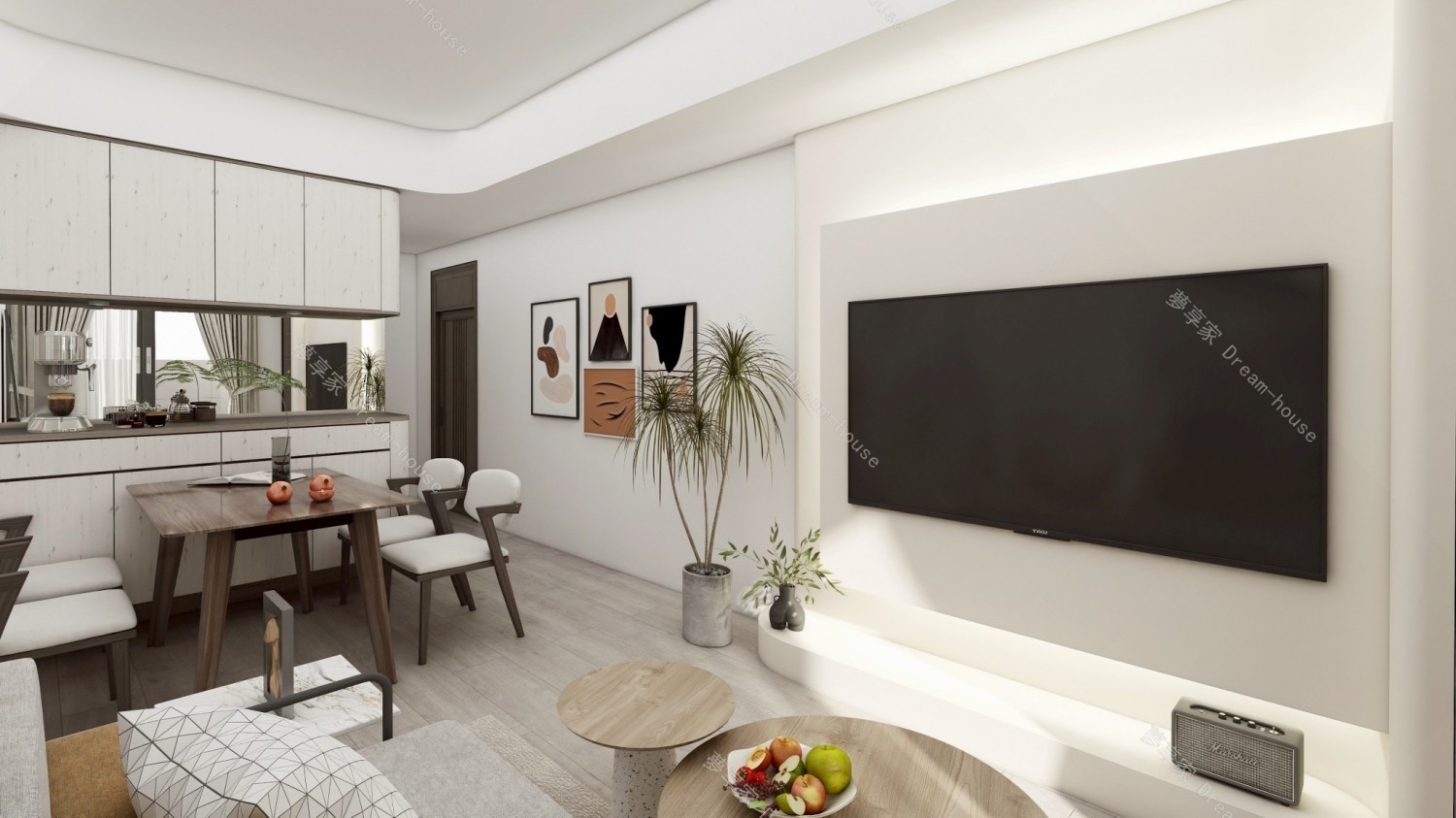 本案以開放式餐廚、客廳與臥房三大場域為主軸,透過一致的色系與材質語言串聯整體視覺。