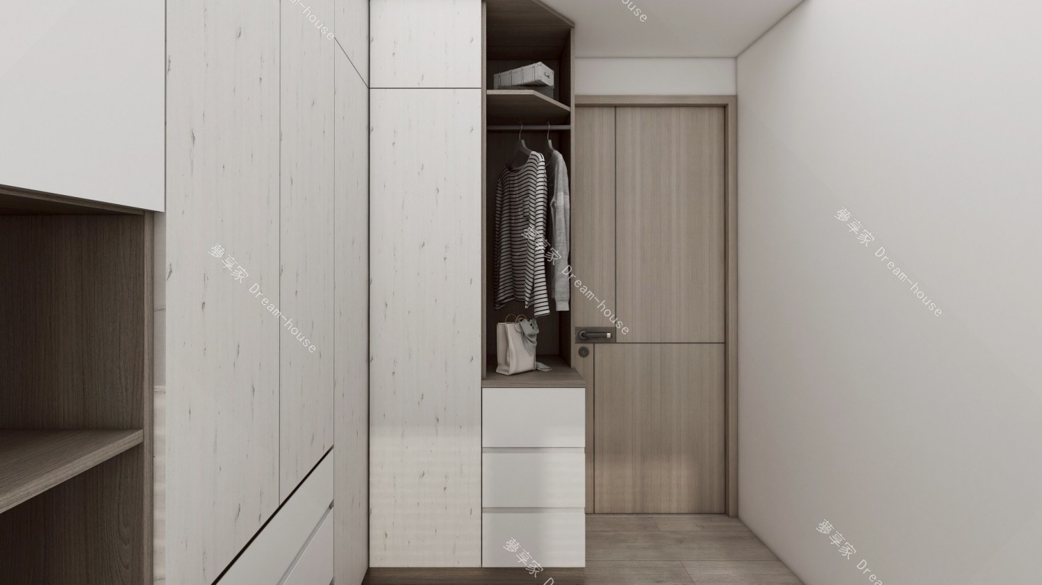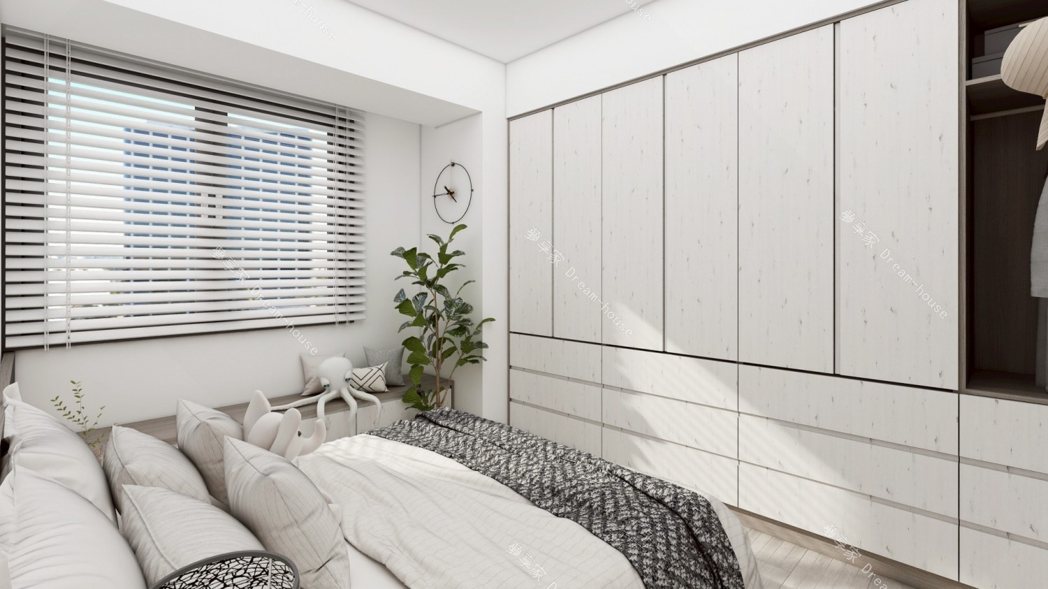 淺色木紋系統板材:作為全室主視覺,營造溫潤、放鬆氛圍