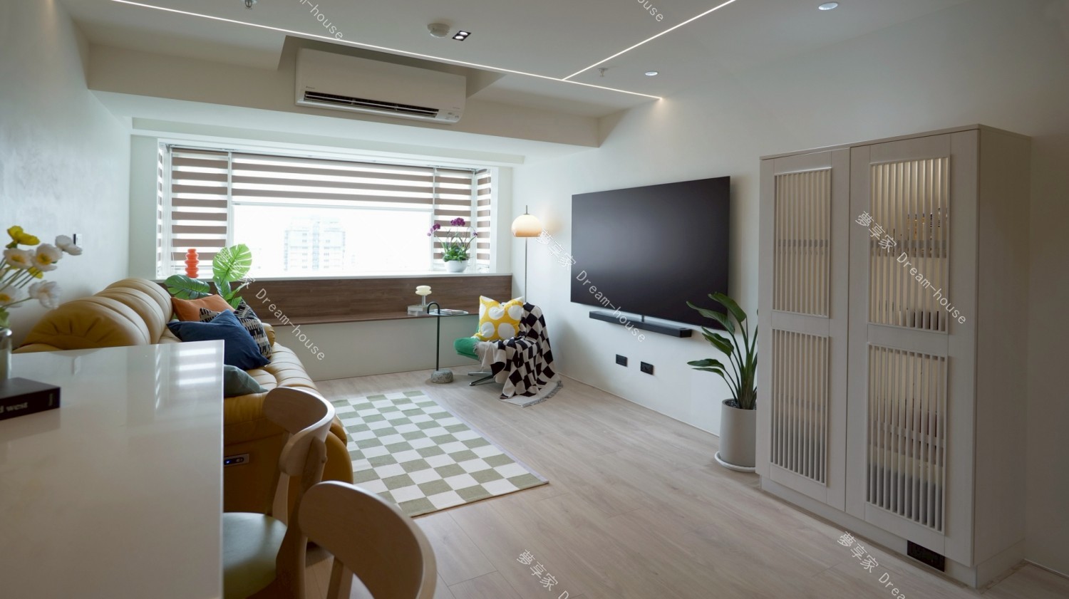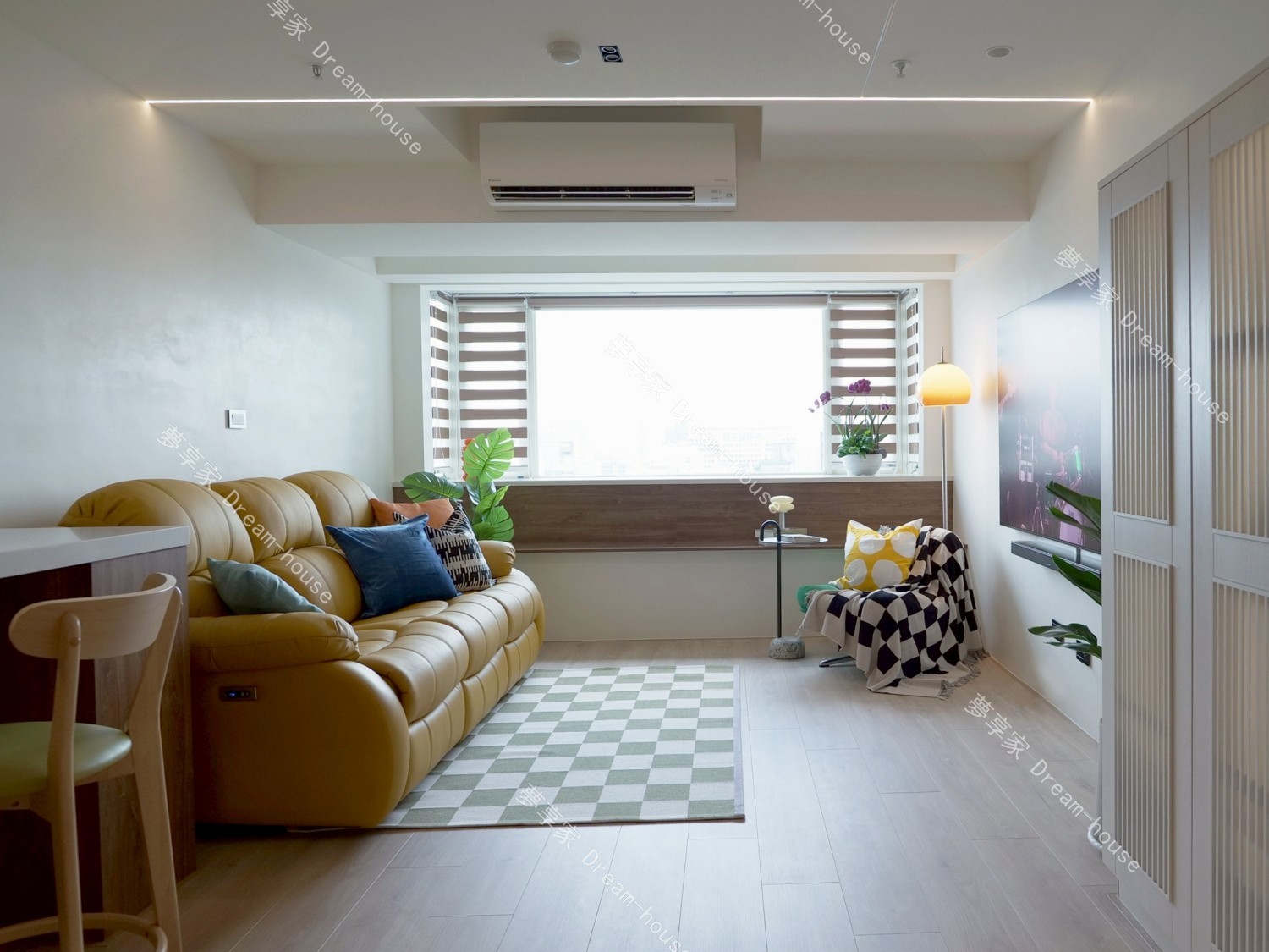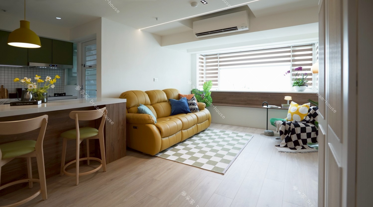 - 我們家和爸媽家同在一個社區,是一間 17 坪、2 房 1 廳的中小型住宅,空間不算大,一開始就不想被特定風格框架綁住,也不喜歡市面上常見、過於甜膩的奶油風。我和妹妹都偏愛綠色,因此想以自然清新的森林綠作為主軸,搭配溫潤木質,透過色彩比例與材質,營造屬於我們的舒適日常。