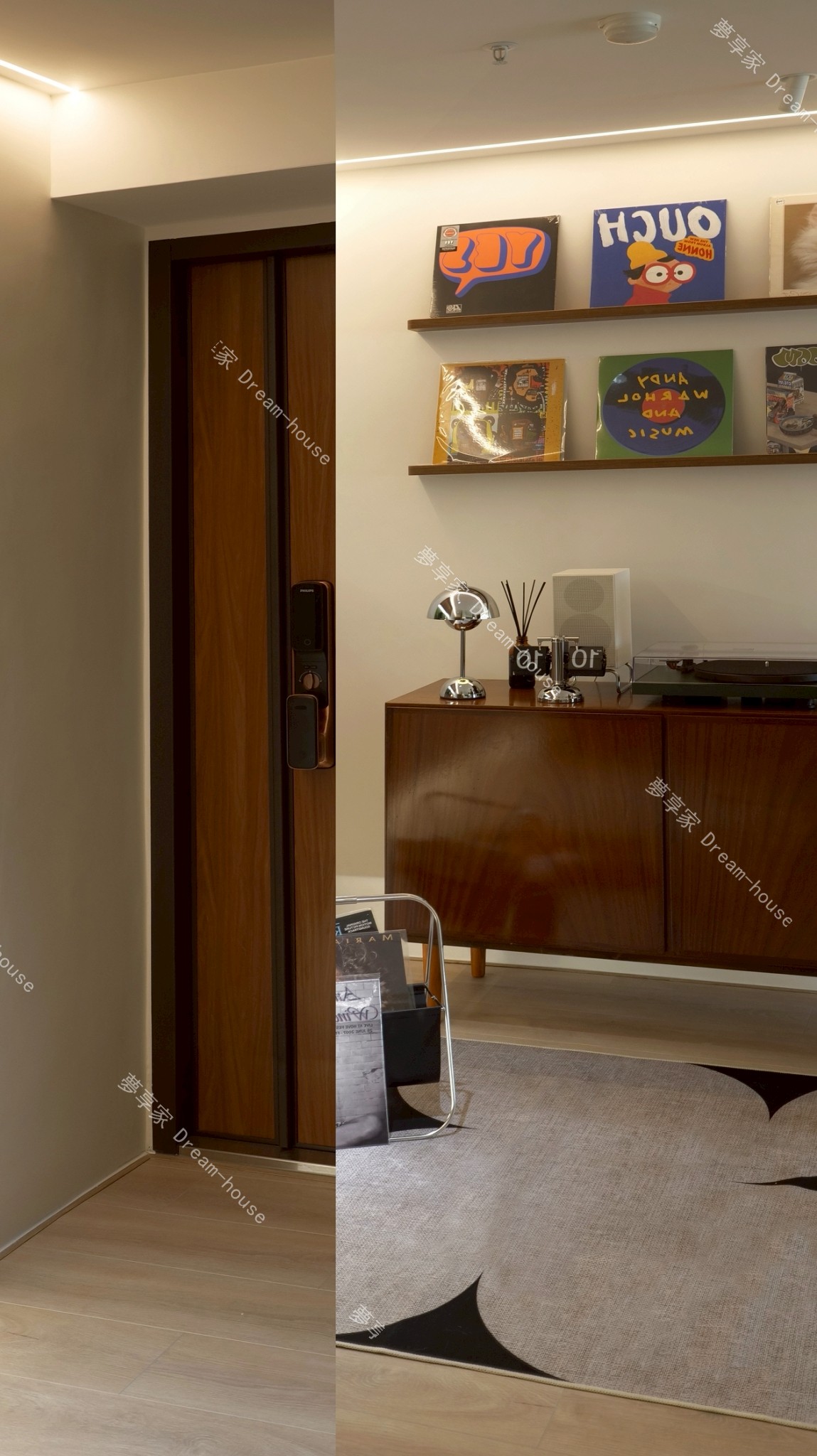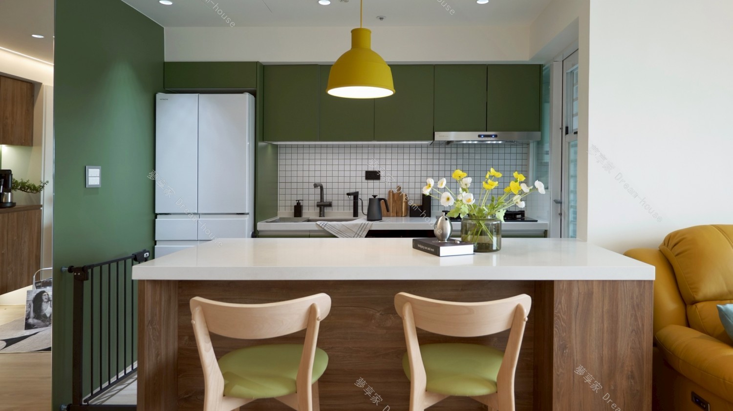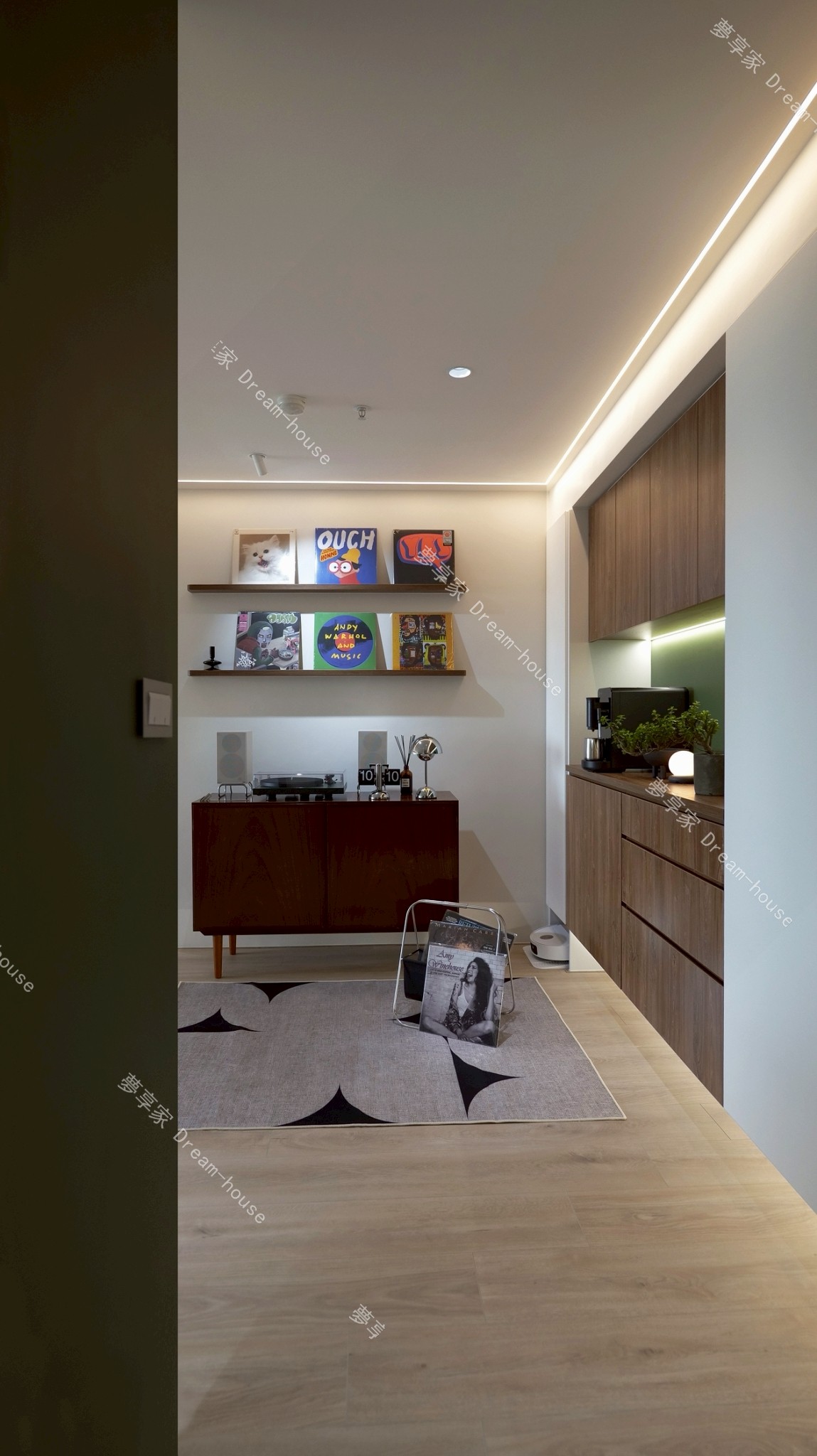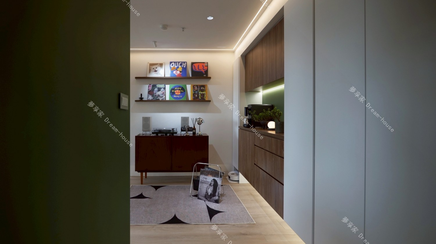 - 我們家和爸媽家同在一個社區,是一間 17 坪、2 房 1 廳的中小型住宅,空間不算大,一開始就不想被特定風格框架綁住,也不喜歡市面上常見、過於甜膩的奶油風。我和妹妹都偏愛綠色,因此想以自然清新的森林綠作為主軸,搭配溫潤木質,透過色彩比例與材質,營造屬於我們的舒適日常。