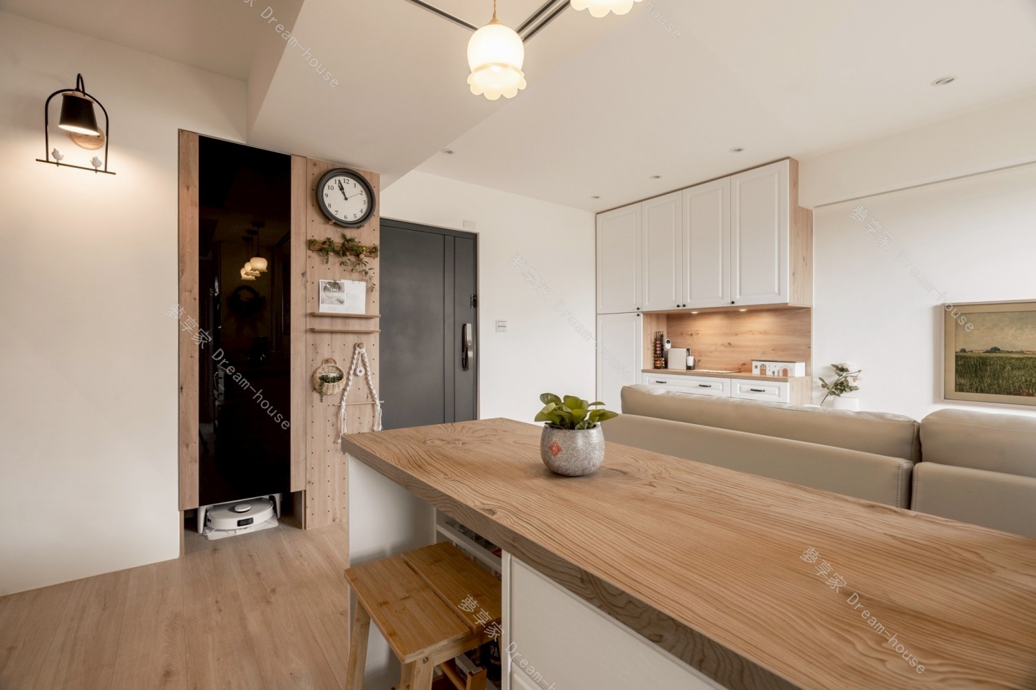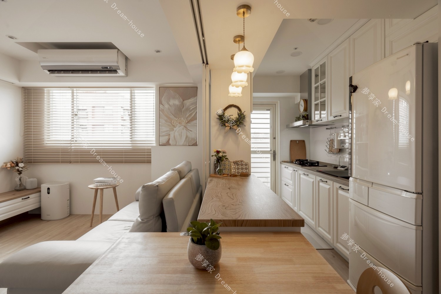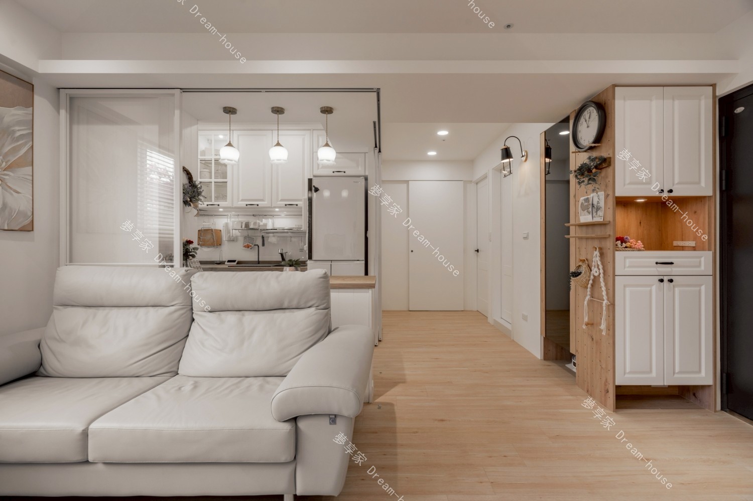- 以「日常秩序」為核心,透過白色立面與溫潤木質交織,創造安定、明亮且可長久居住的生活場景。空間不追求過度造型,而是讓收納、動線與光線成為設計主角,使居住者在視覺與使用上都能感受到放鬆與規律的生活節奏。