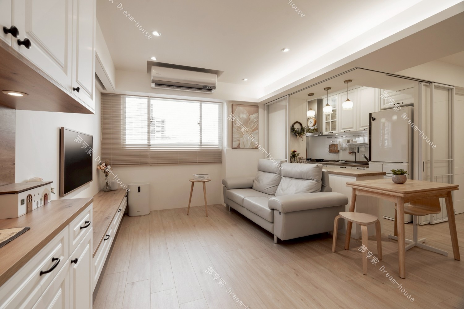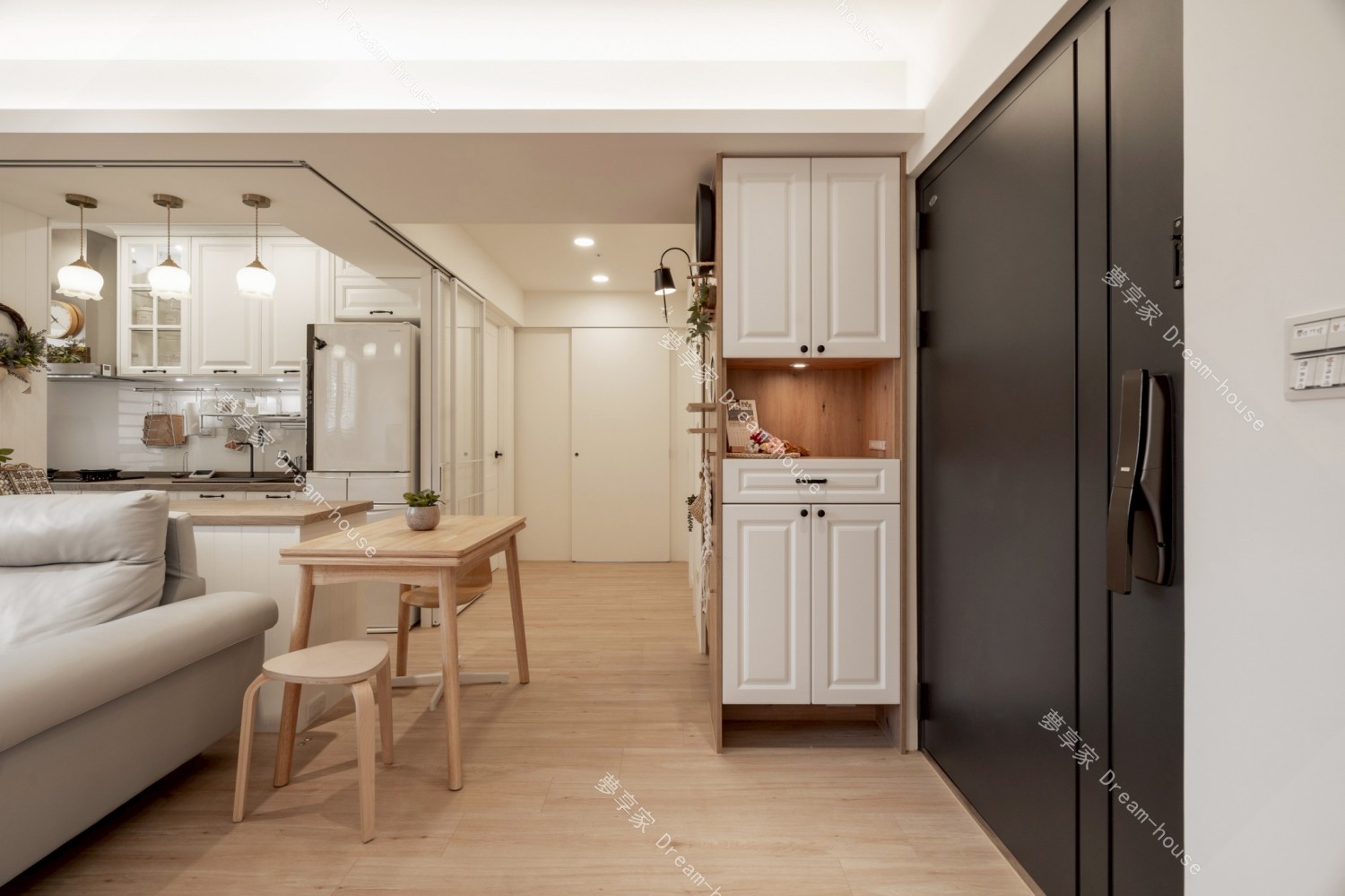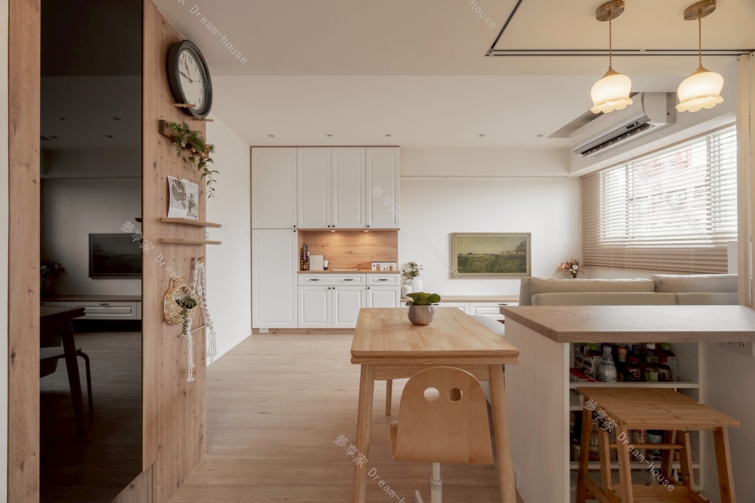 - 以「日常秩序」為核心,透過白色立面與溫潤木質交織,創造安定、明亮且可長久居住的生活場景。空間不追求過度造型,而是讓收納、動線與光線成為設計主角,使居住者在視覺與使用上都能感受到放鬆與規律的生活節奏。