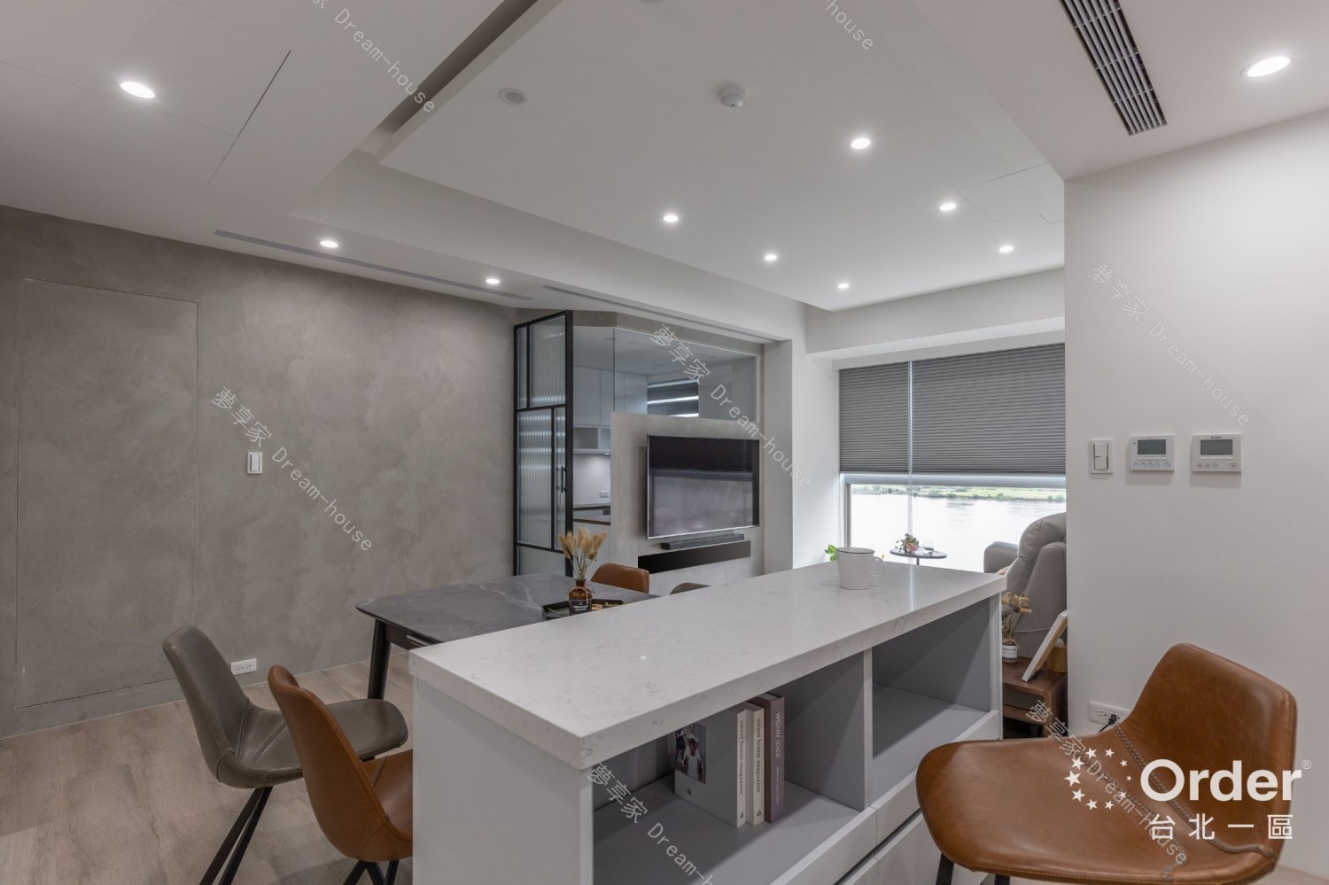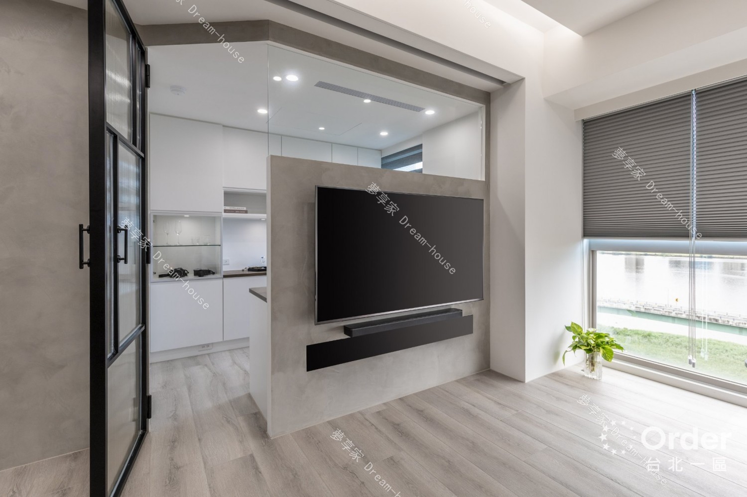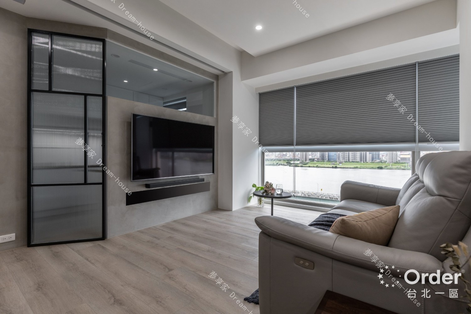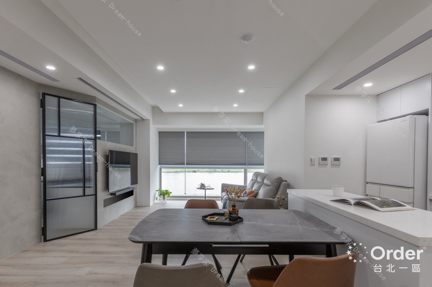 - 以「留白 × 光景 × 機能整合」為核心,讓空間成為安靜承載生活的容器。透過大面窗景引入河岸視野,搭配低彩度材質與線性量體,營造沉穩、純粹且具有生活溫度的居住氛圍。
