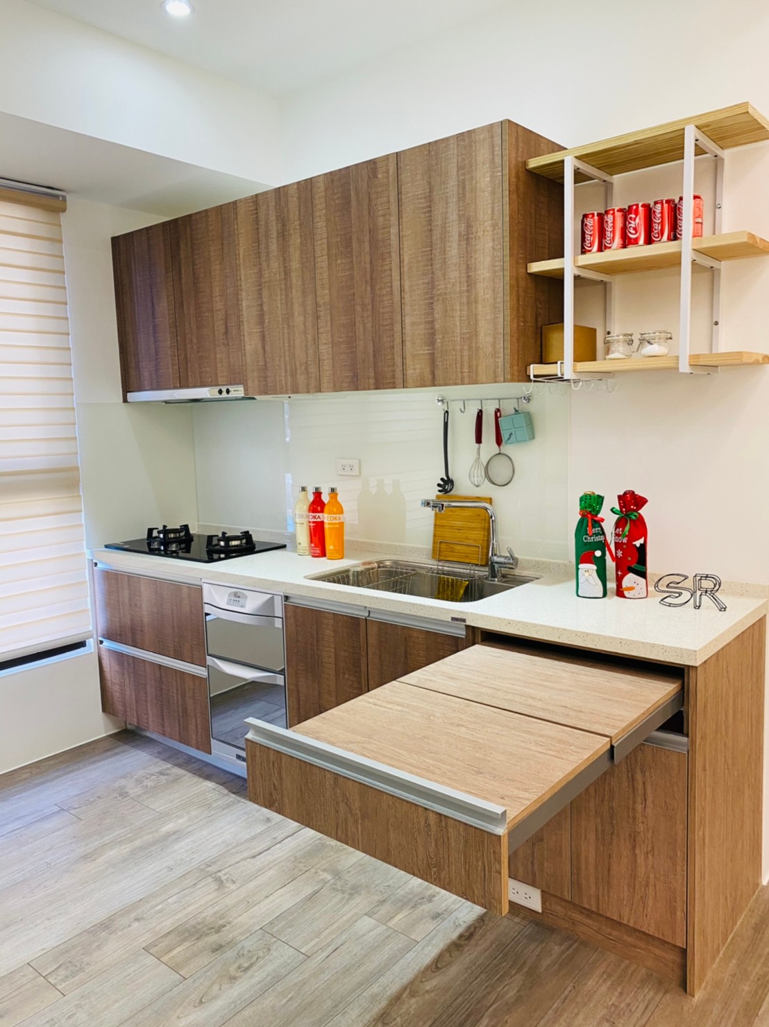 收納機能被完整整合於各區櫃體之中,使視覺維持乾淨俐落,同時滿足日常大量收納需求,避免空間因物品堆疊而顯得凌亂。
