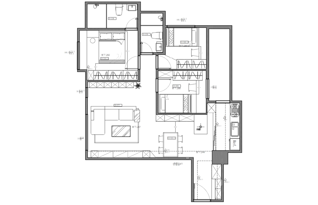 整體以「低彩度、少元素、重比例」為核心,線條乾淨俐落,透過木質溫度中和現代感的冷靜理性。