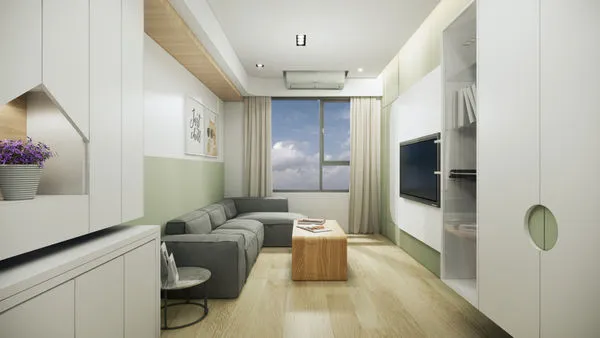 more土城「四季平安」北歐風小清新裝潢,屋主為三口之家,當時還在預售屋時購入,預售時期先找設計師進行客變,希望經由客變合理規劃空間,增加收納,小坪數不要顯得壓迫急促,經過幾次會議討論,以下為1:1的3D模擬設計圖。