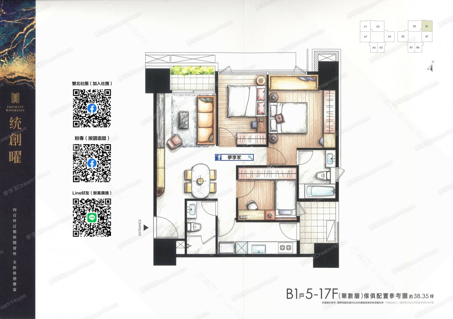 「統創曜」面河B1格局約38坪(此為預售屋換約,預計115年完工)專業設計師客變