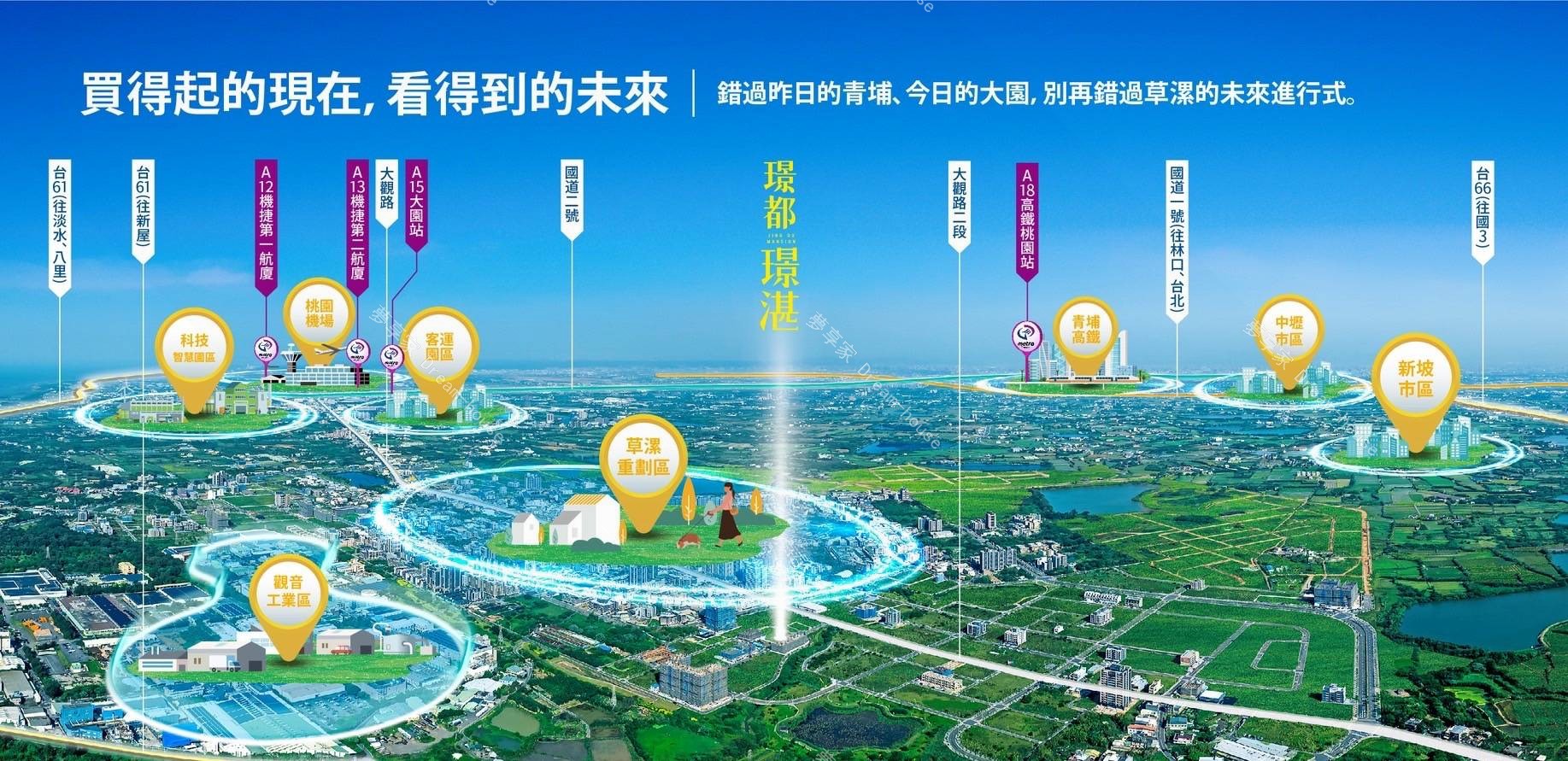 「璟都璟湛」身處桃園觀音草漯重劃區,近年來草漯重劃區因2~3字頭親民房價、日常機能越發展越好、桃園航空城利多….,成為新北、桃園人沿台61、台66購屋置產族熱門選項之一。草漯重劃區日常機能近幾年來多了許多大型連鎖企業如全聯、路易莎、麥當勞、寶雅….加上在地大型生鮮超市、美食小吃..加上親民房價,草漯重劃區可說是首購族的天堂。
