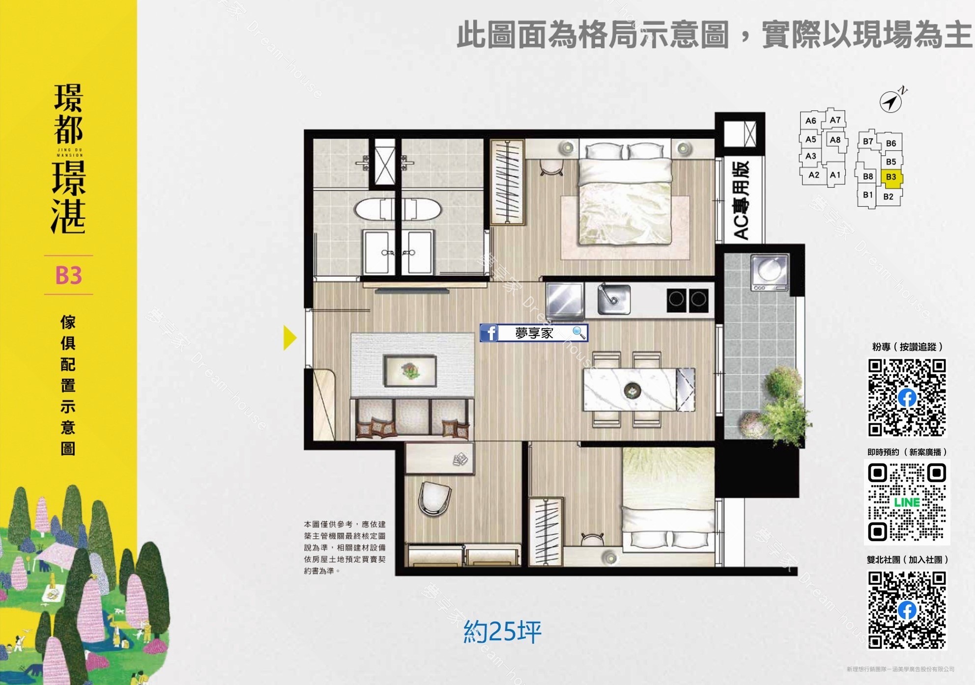 - 坪 數 2房21~25.24坪 , 3房29.35~30.57坪