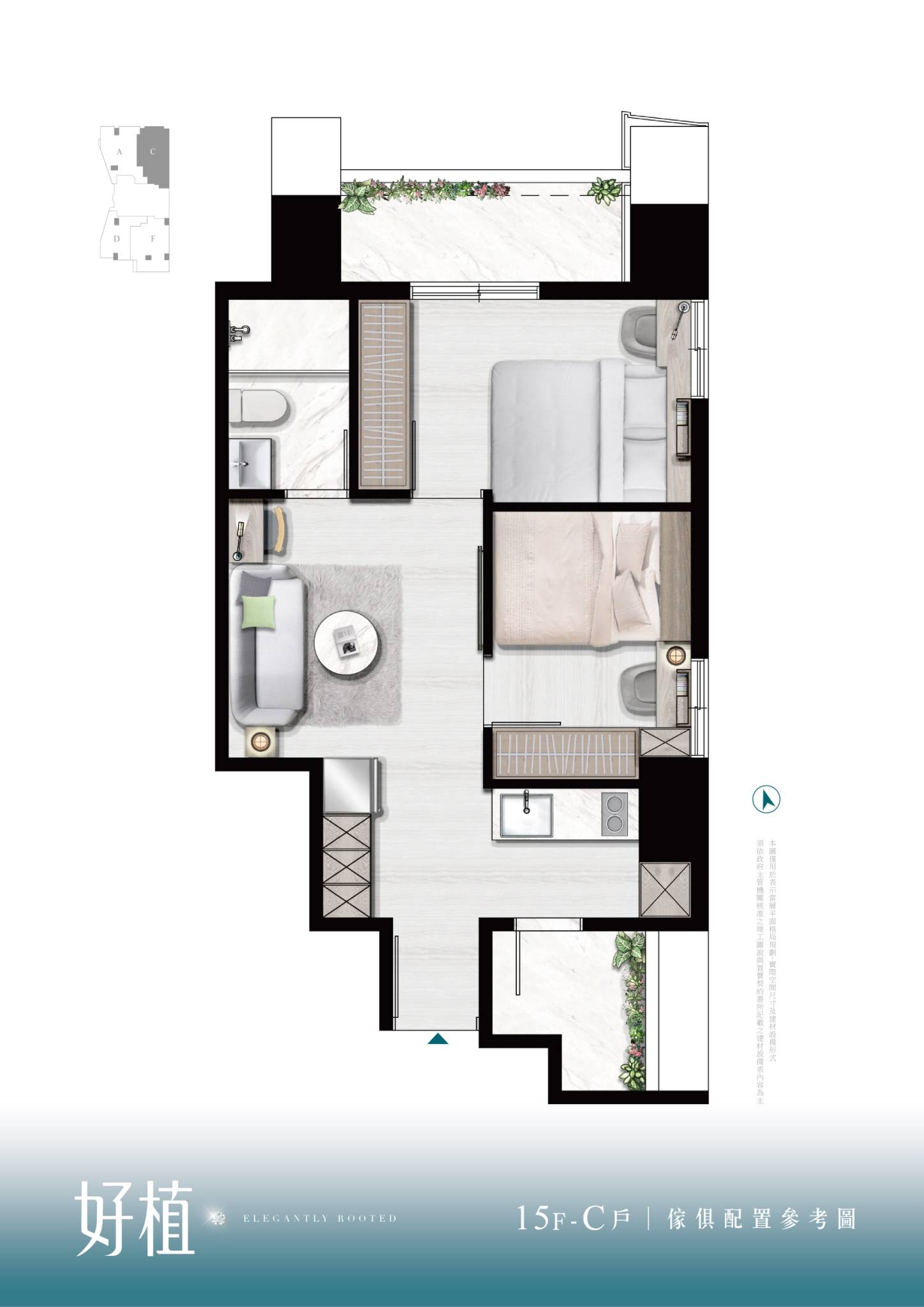 - 格局規劃 1房9~14坪 , 2房18~25坪