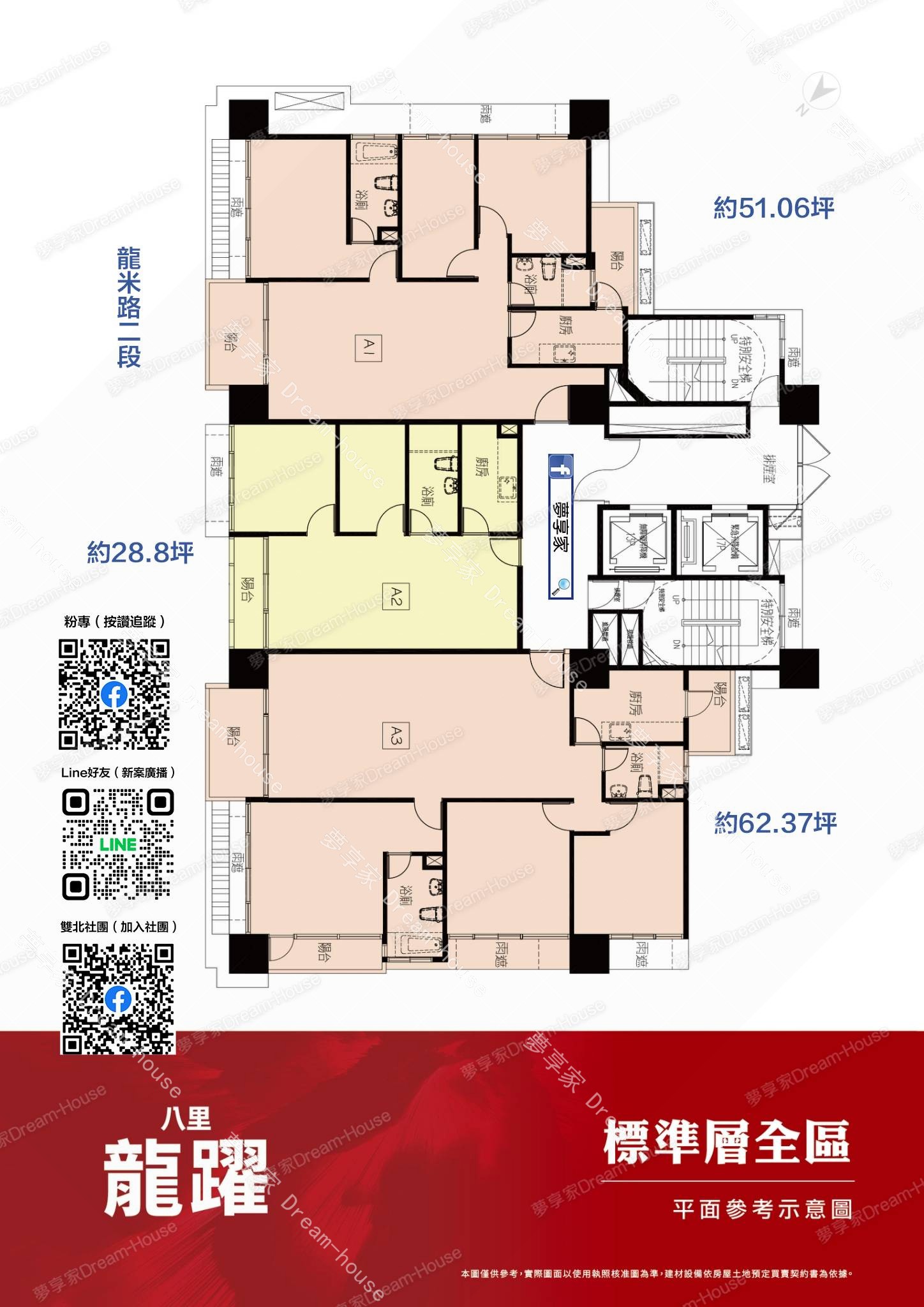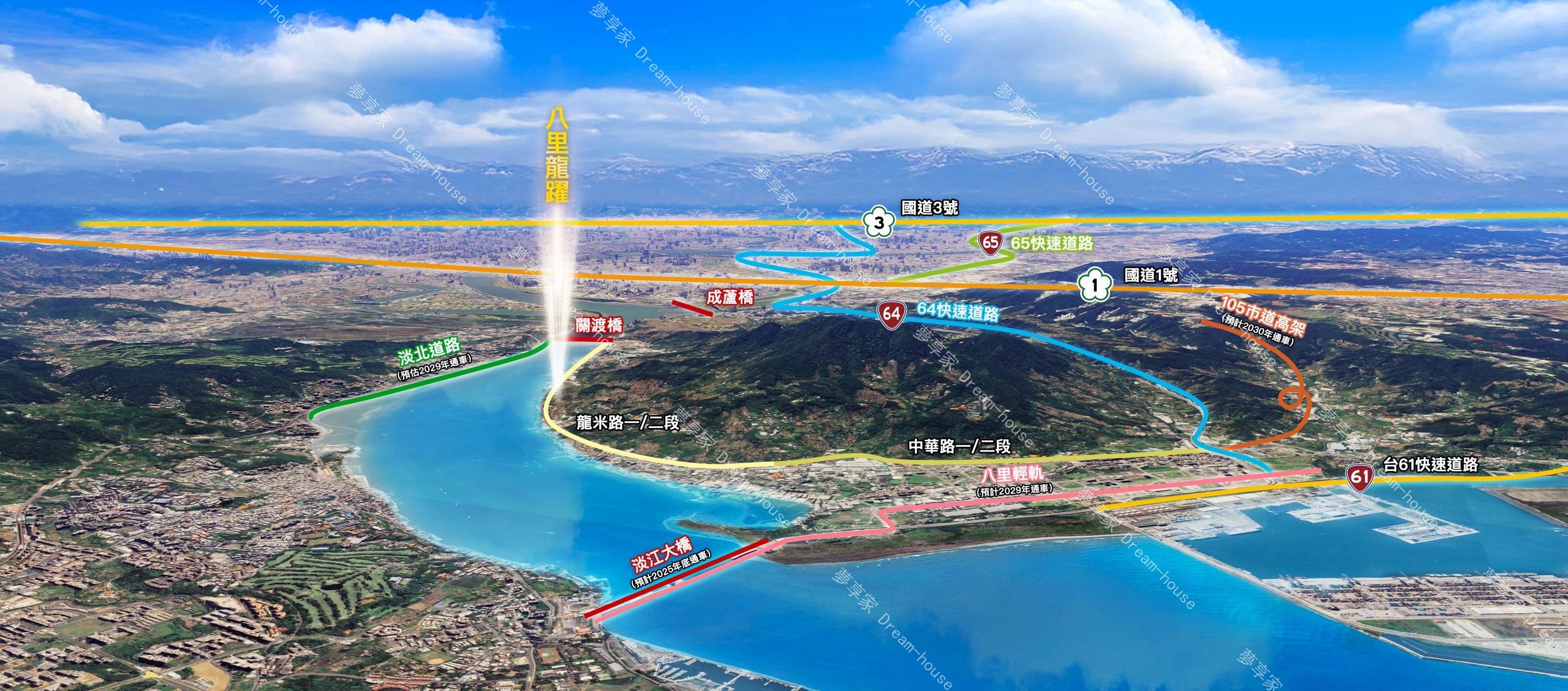 - 特色介紹 現場有實品屋可參觀 ‘’八里龍躍‘’基地周邊為保護區,正面戶戶享壯闊河景,環境清幽舒適。位龍米路主要道路,77米地標建築一層3戶雙電梯,32%低公設比。5分鐘達關渡橋,距61快11分鐘、64快12分鐘。學校:步行6分鐘至米倉雙語小學,車行12分鐘至八里國小。商業:基地至龍形市場、全聯車行2分鐘。休閒:至龍米河濱公園步行2分鐘。八里投入超過百億重大建設,後期區域發展及增值性強勁。
