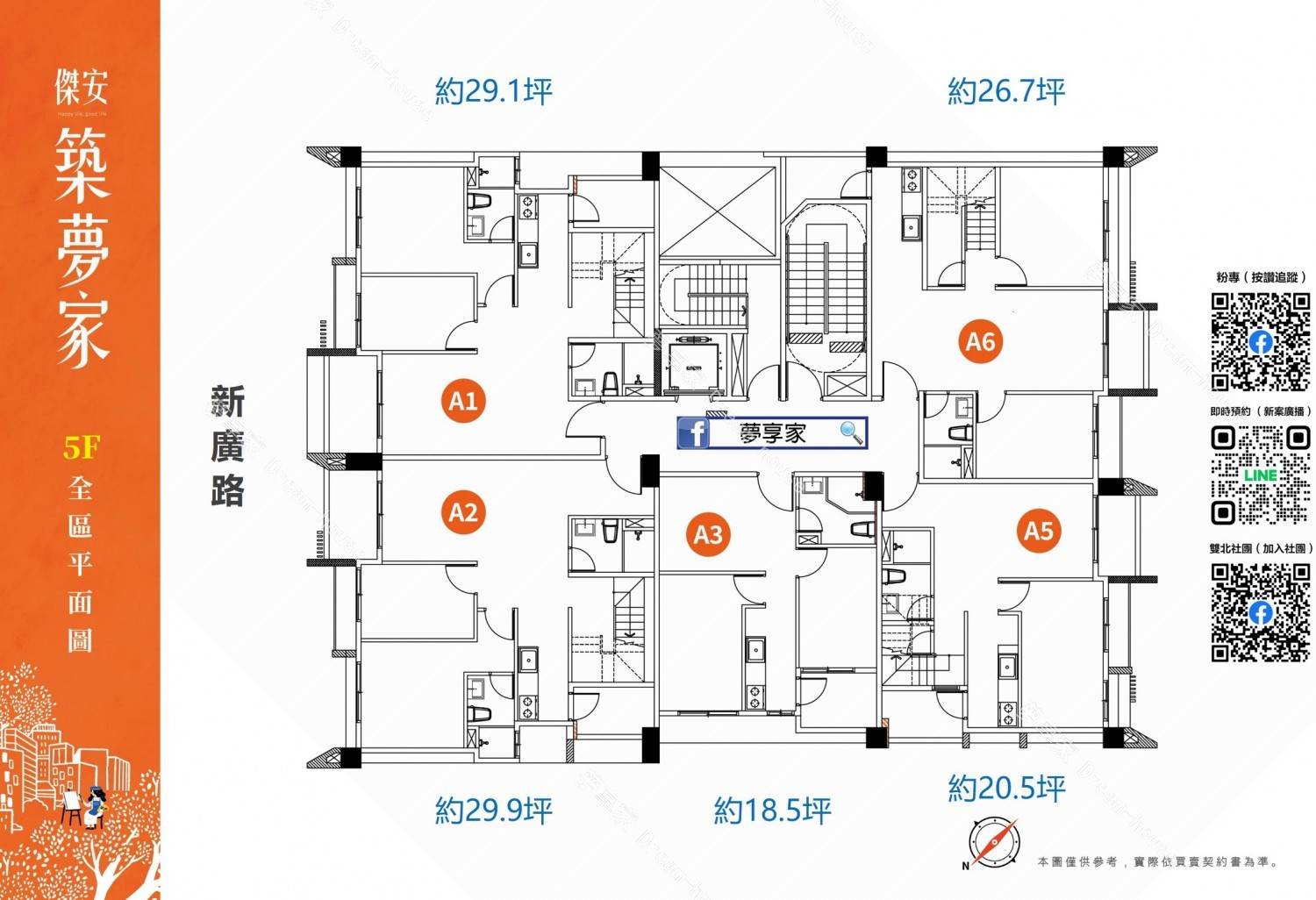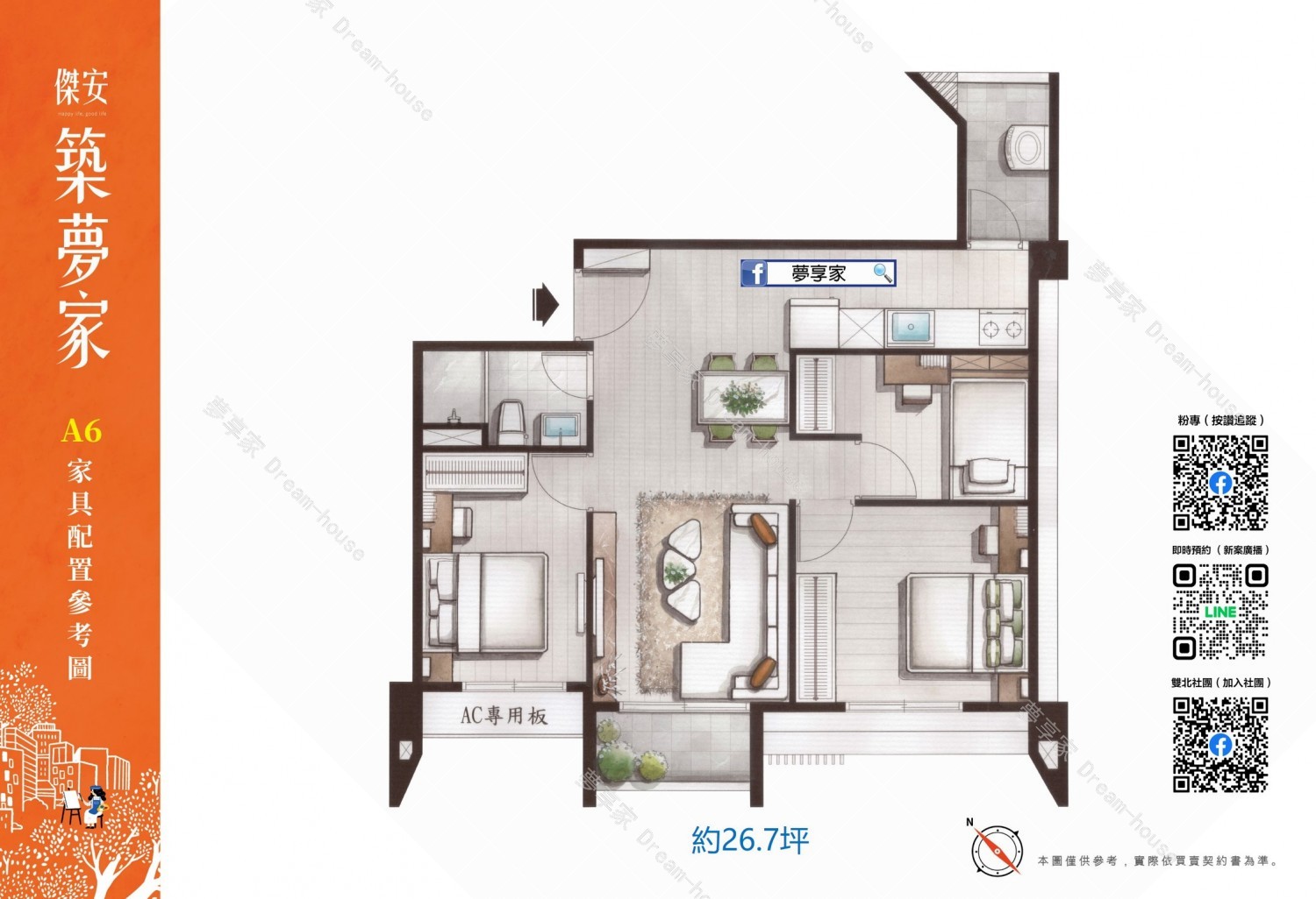 - 特色介紹 「傑安築夢家」位於桃園市觀音區新廣路460巷,由傑安開發建設有限公司投資興建,嘉富營造有限公司營造,黃豊竣建築師事務所建築設計,基地面積172.42坪、建蔽率59.99%、公設比20.53%,樓層規劃為1棟地上5層建築,共有21戶住家,格局坪數規劃二房(18.5~20.52坪)、三房(26.72~29.99坪)。