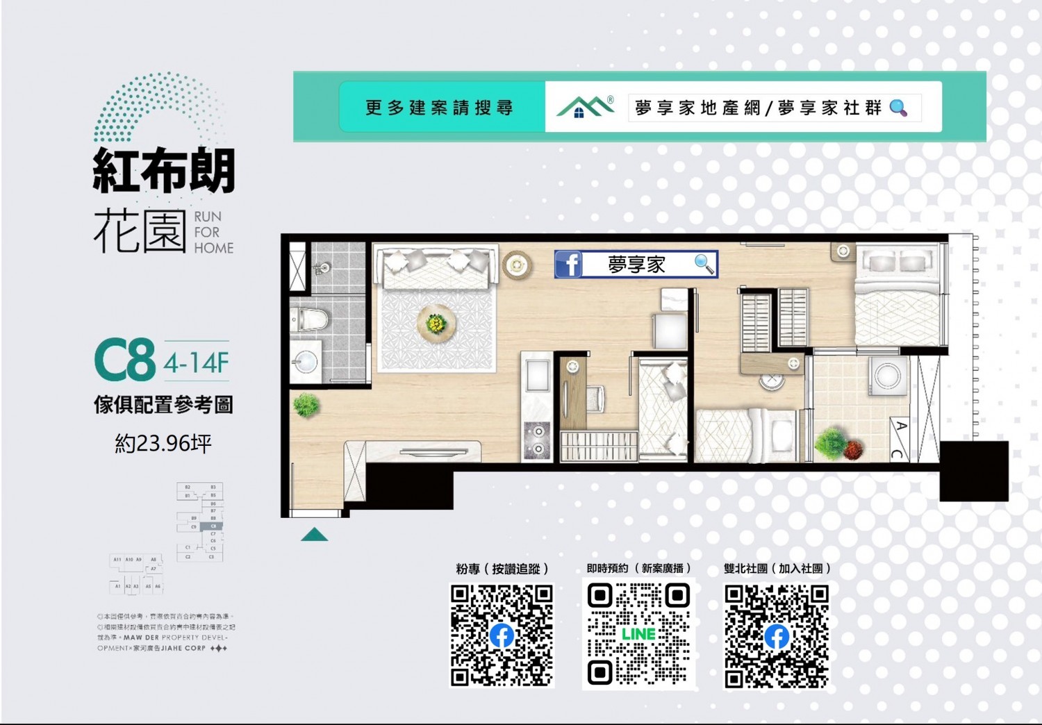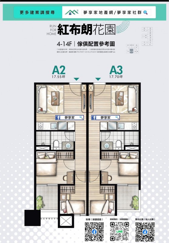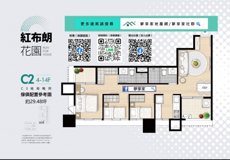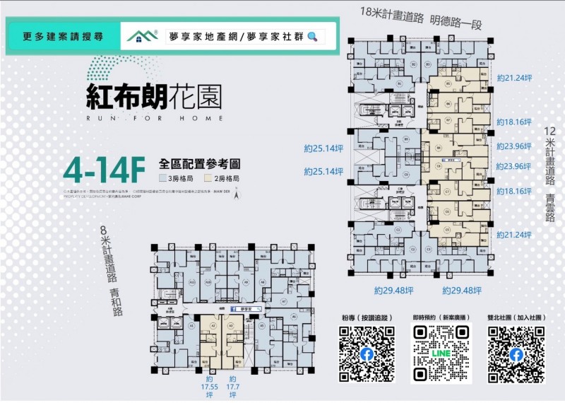 - 格局/坪數 約2房17~21坪 , 3房19~29坪