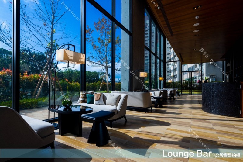 - 公設項目 接待大廳,中庭花園,空中花園,交誼廳,閱覽室,游泳池,健身房,信箱區,曬被區,Lounge Bar,茶屋