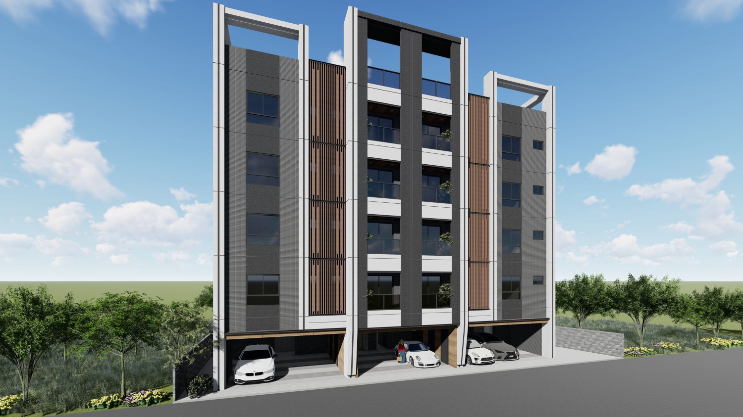 基地面積179.98坪、建蔽率59.01%、公設比19.3%,樓層規劃為1棟地上5層建築,共有23戶住家,格局坪數規劃二房(19.38~25.47坪)、三房(29.59坪)。