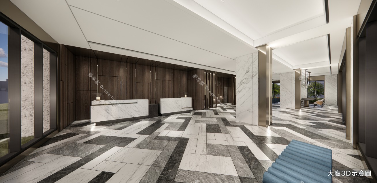 - 公設項目 接待大廳,交誼廳,健身房,信箱區