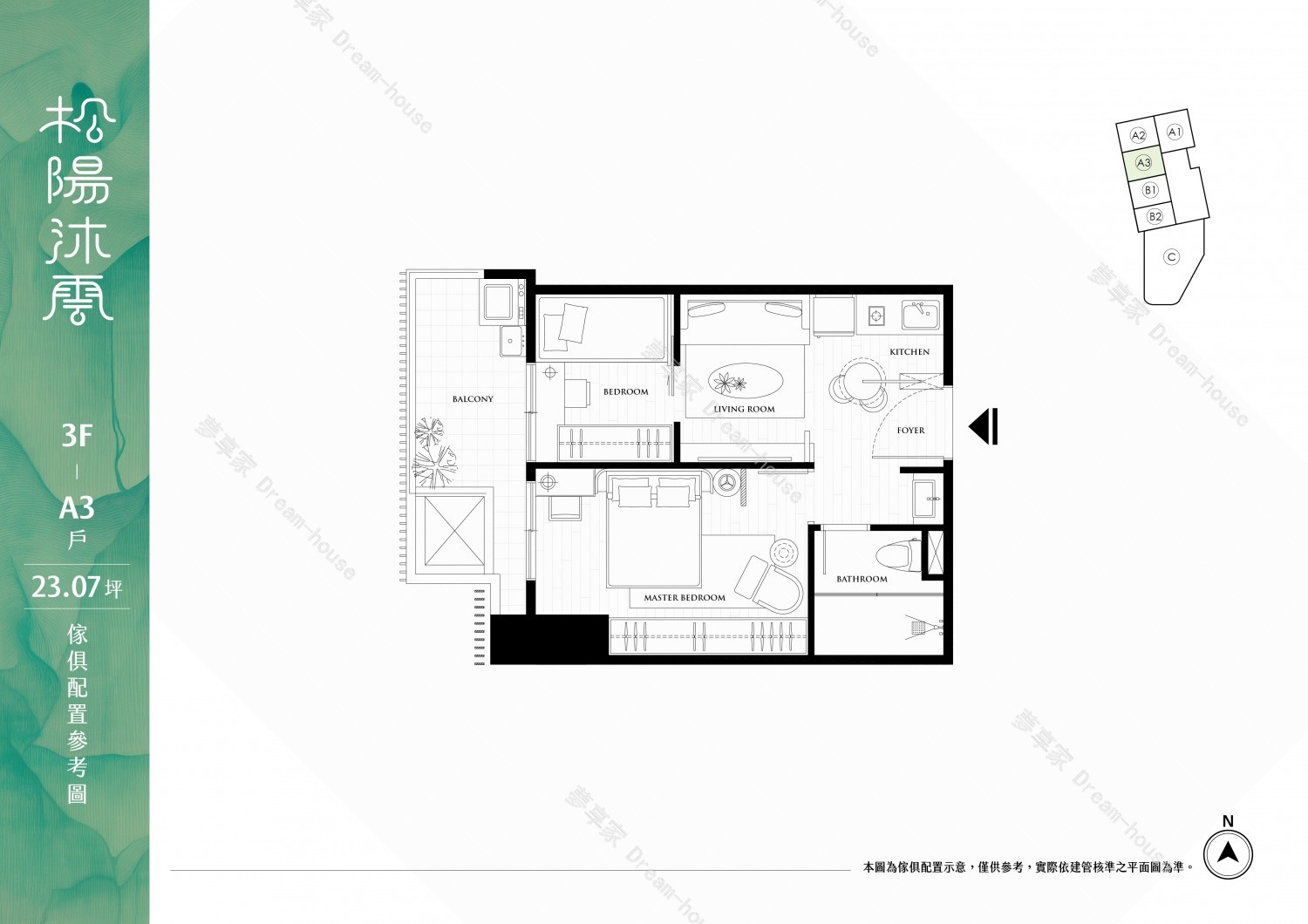 3.提供23-68坪彈性戶型,滿足首購、換屋與三代同堂客戶需求