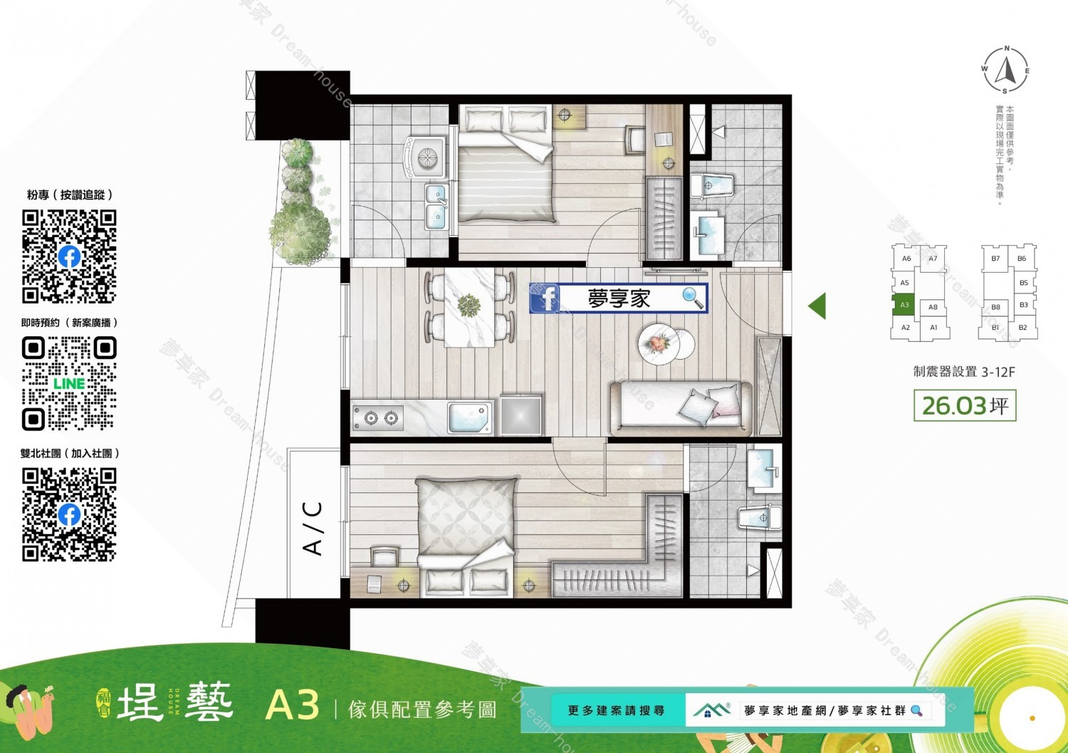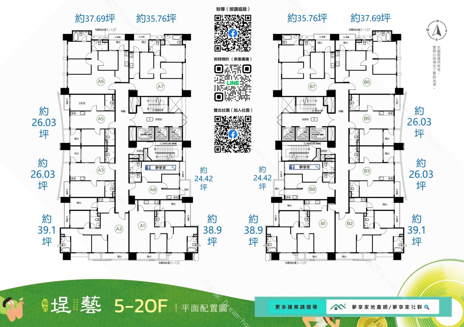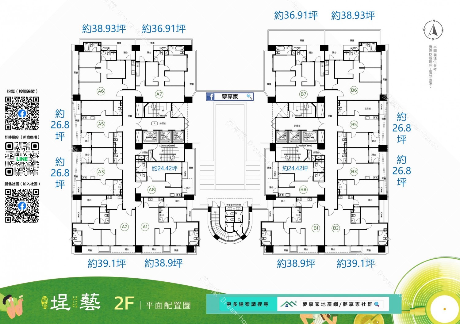 - 格局規劃 2房24~26坪 , 3房35~39坪