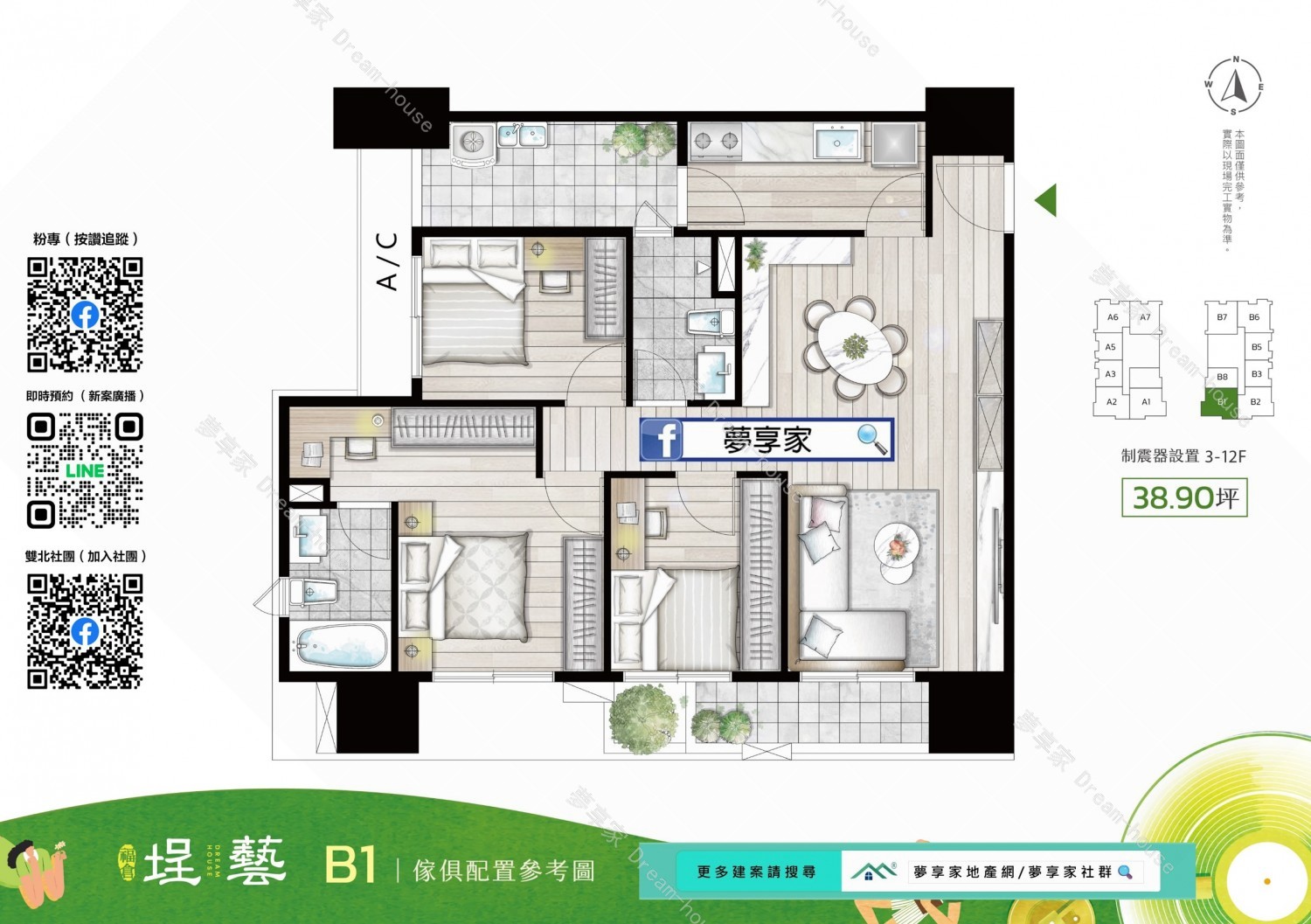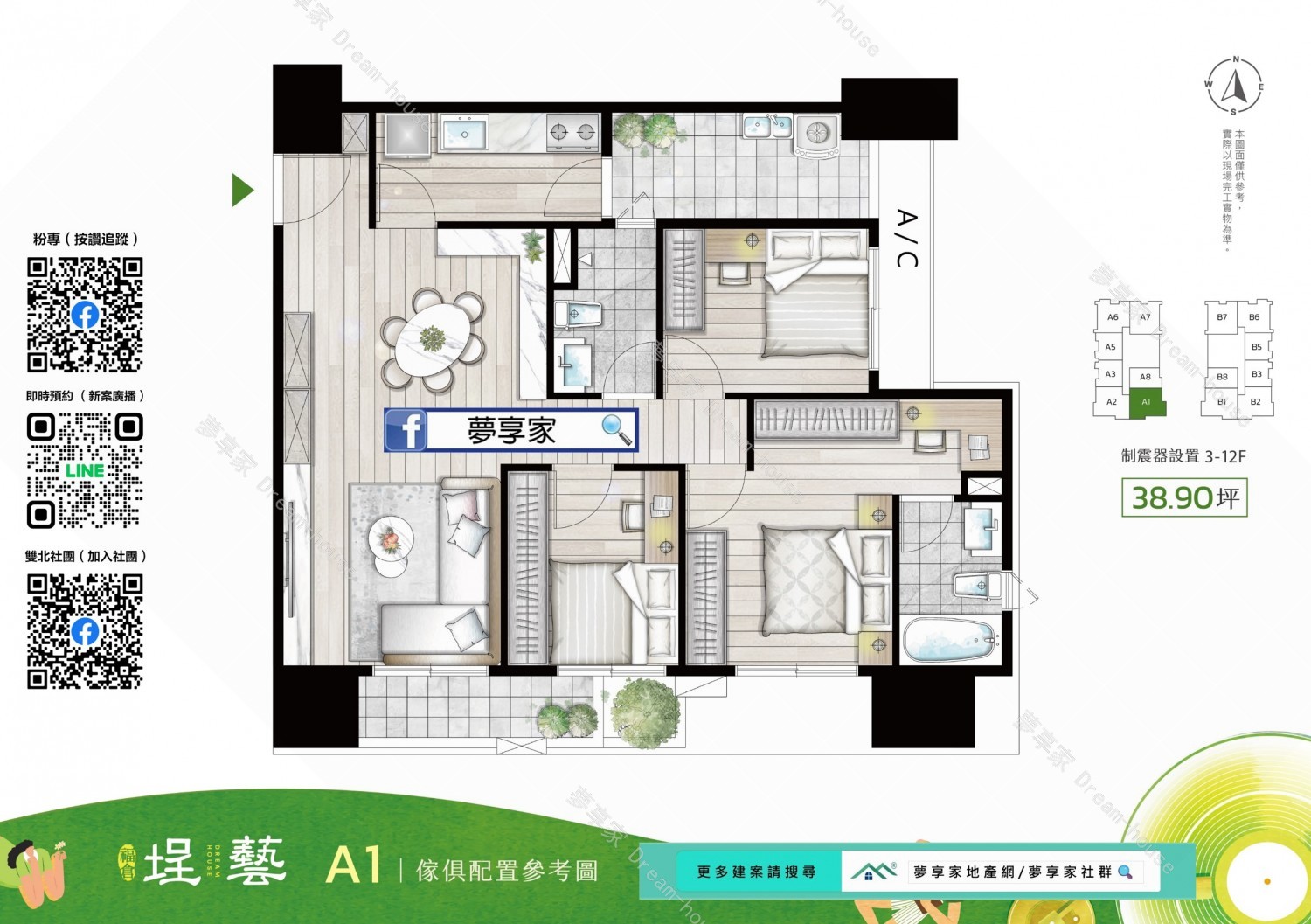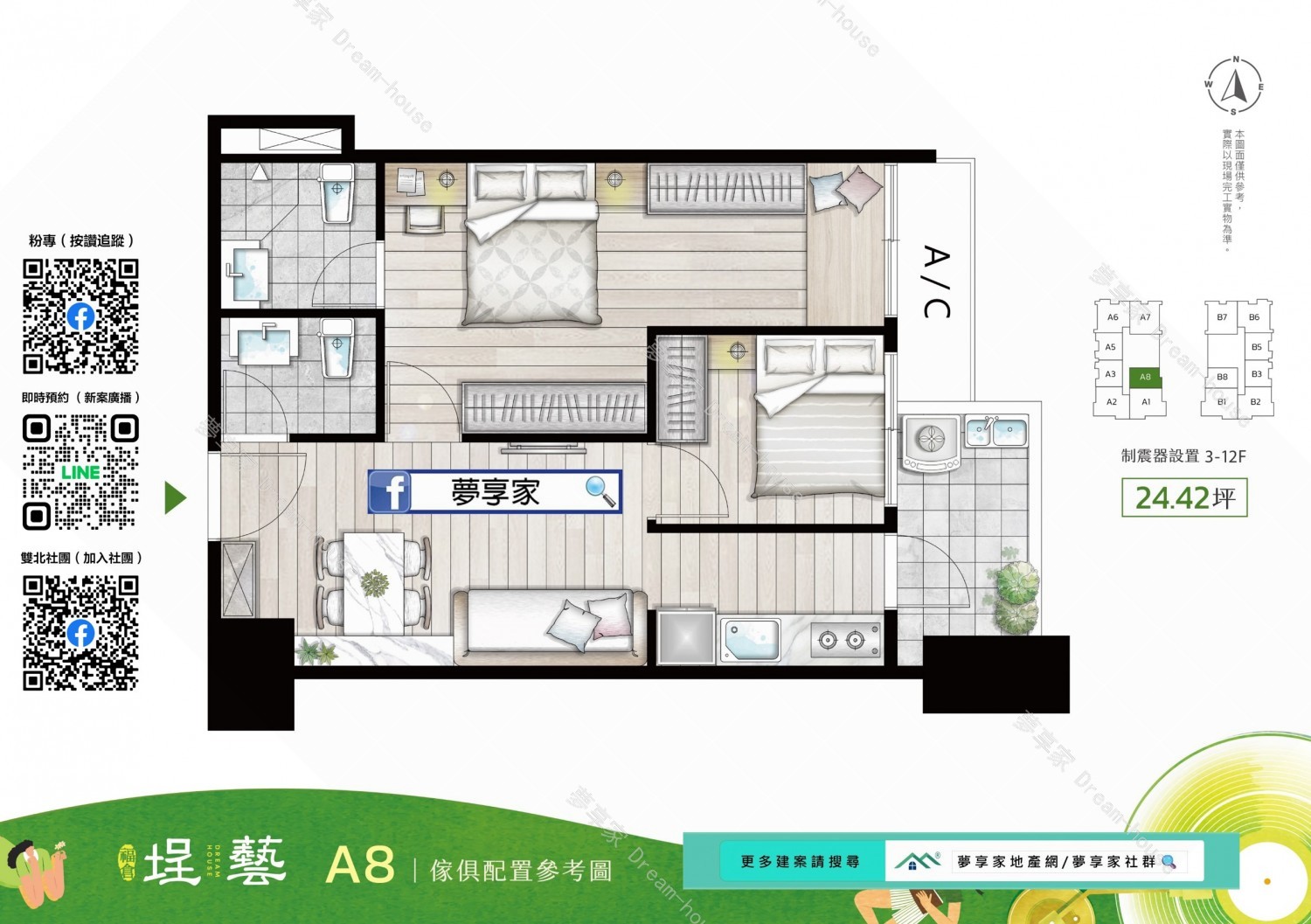 - 格局規劃 2房24~26坪 , 3房35~39坪