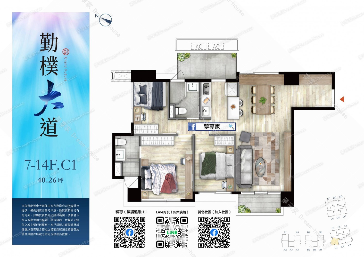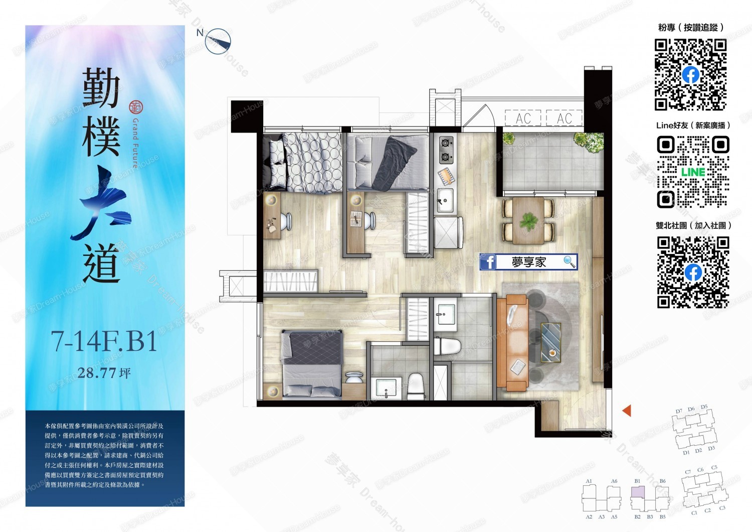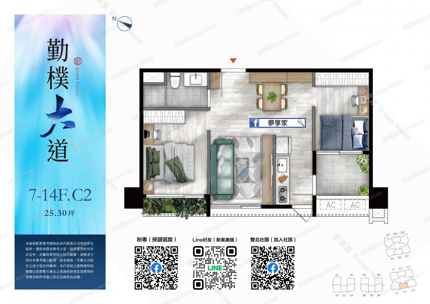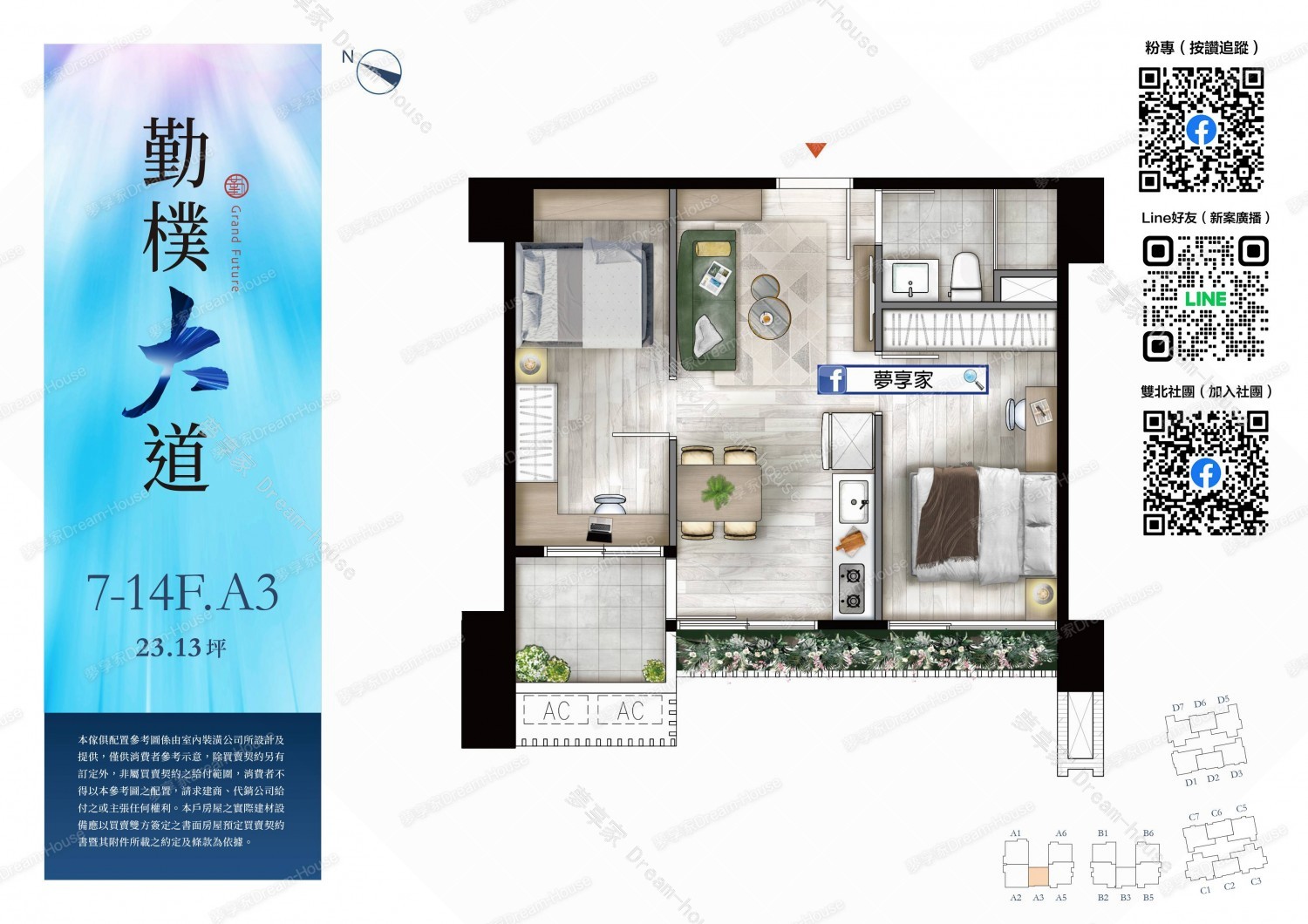 - 格局規劃 2房23~26坪 , 3房28~41坪
