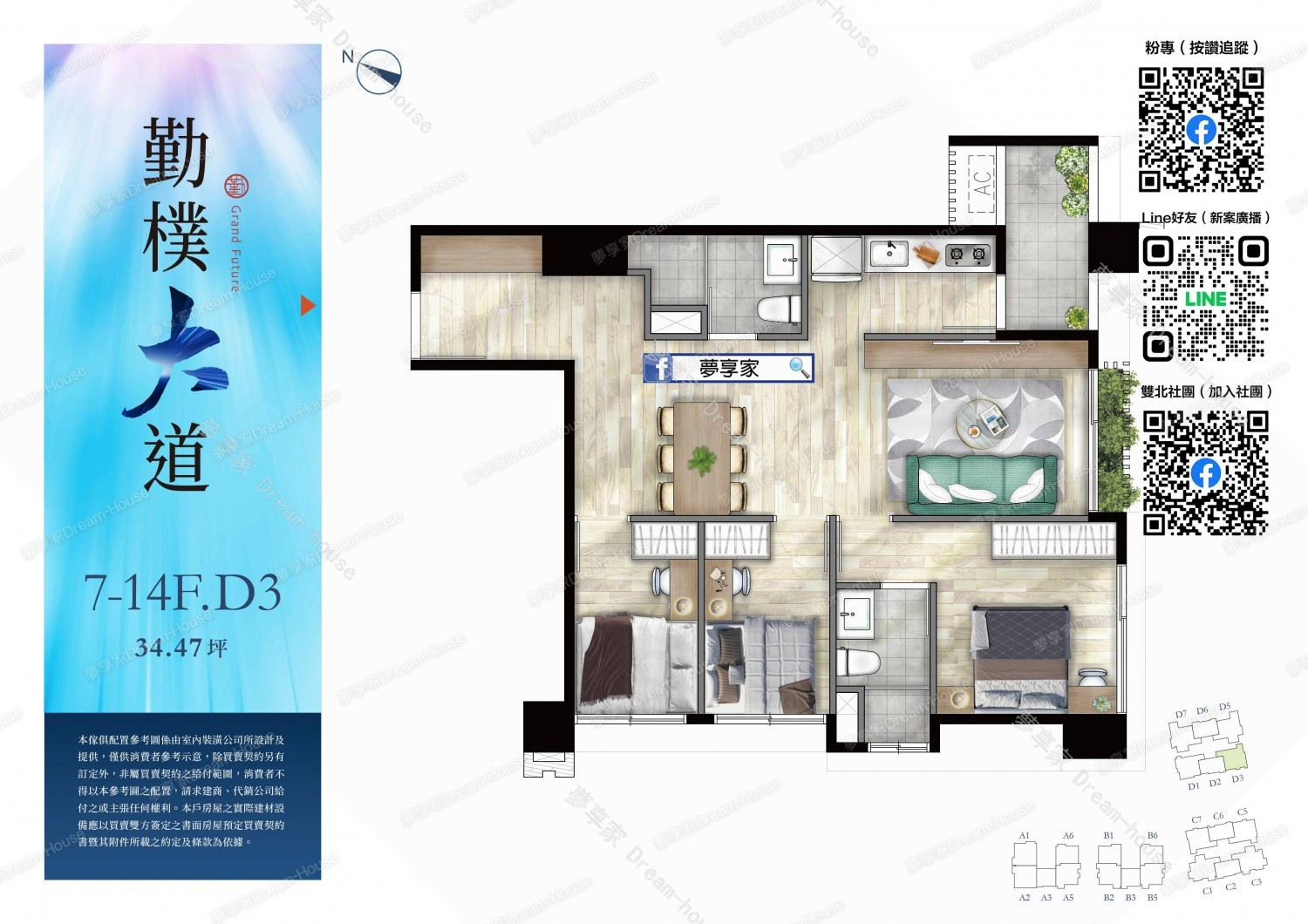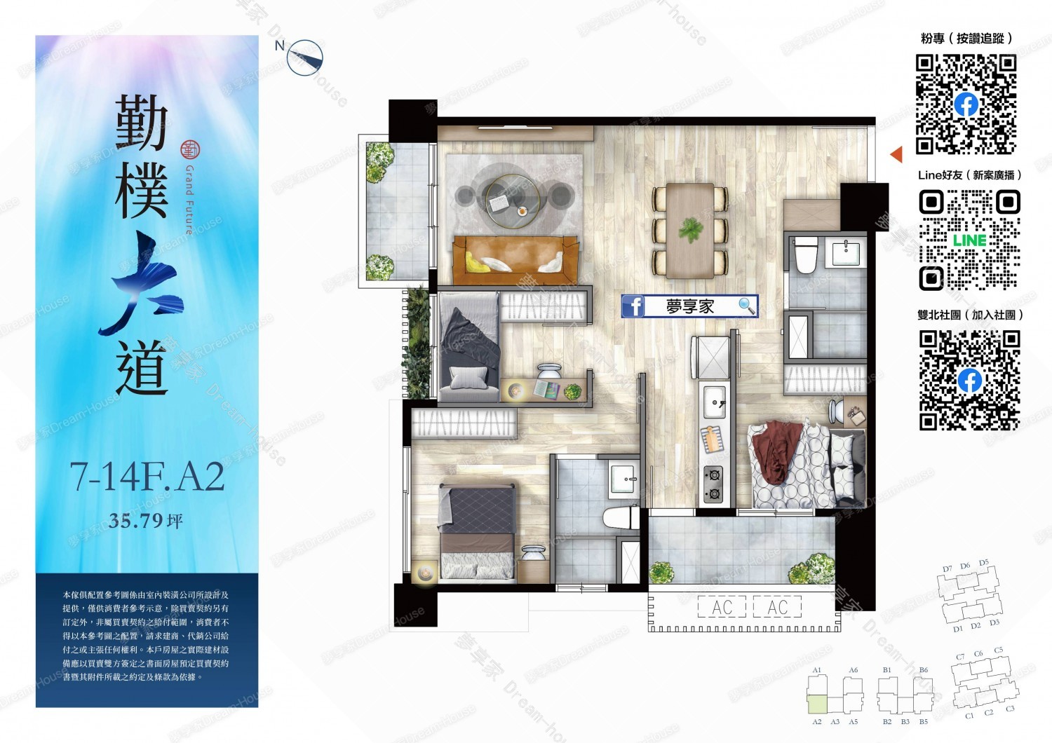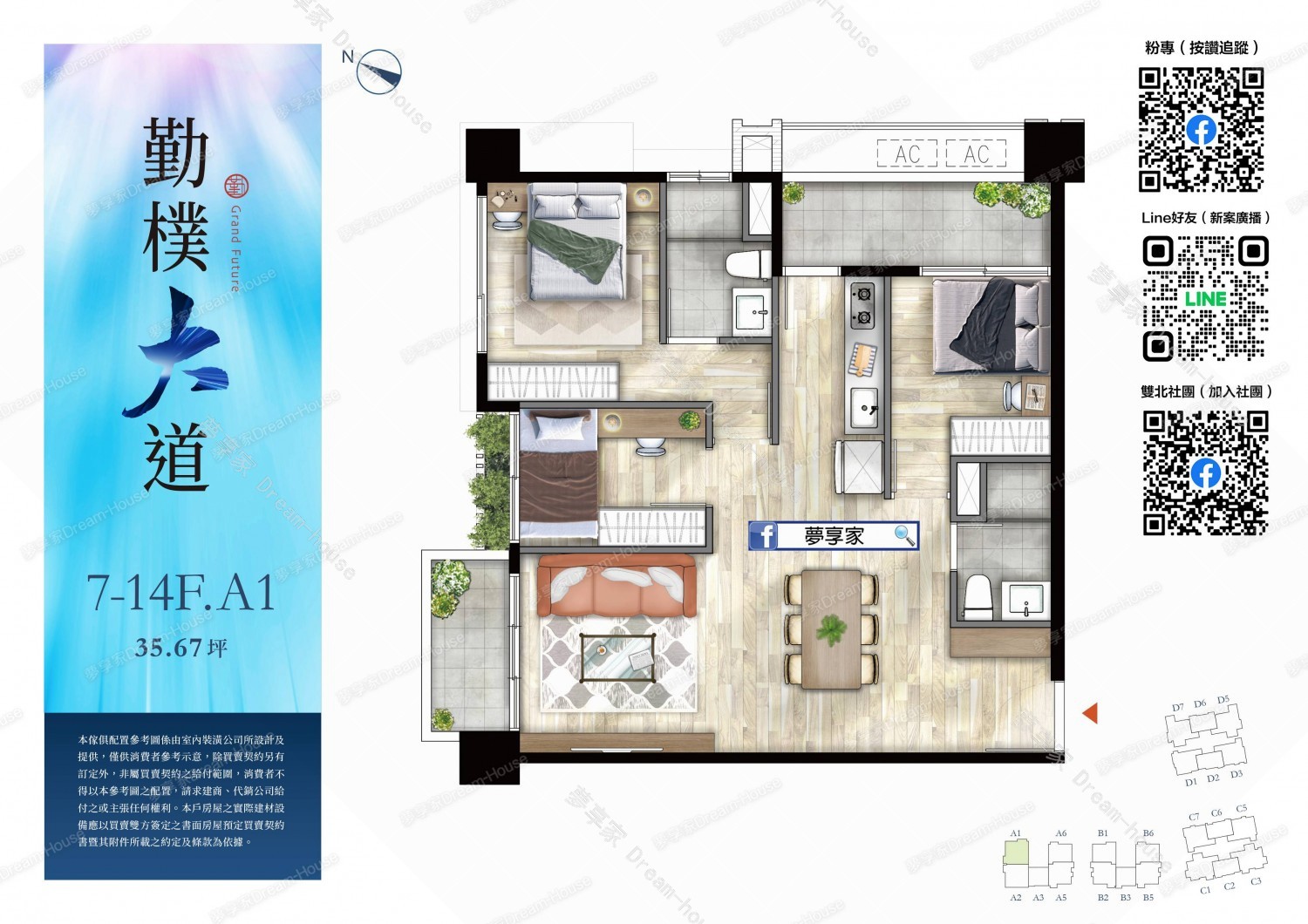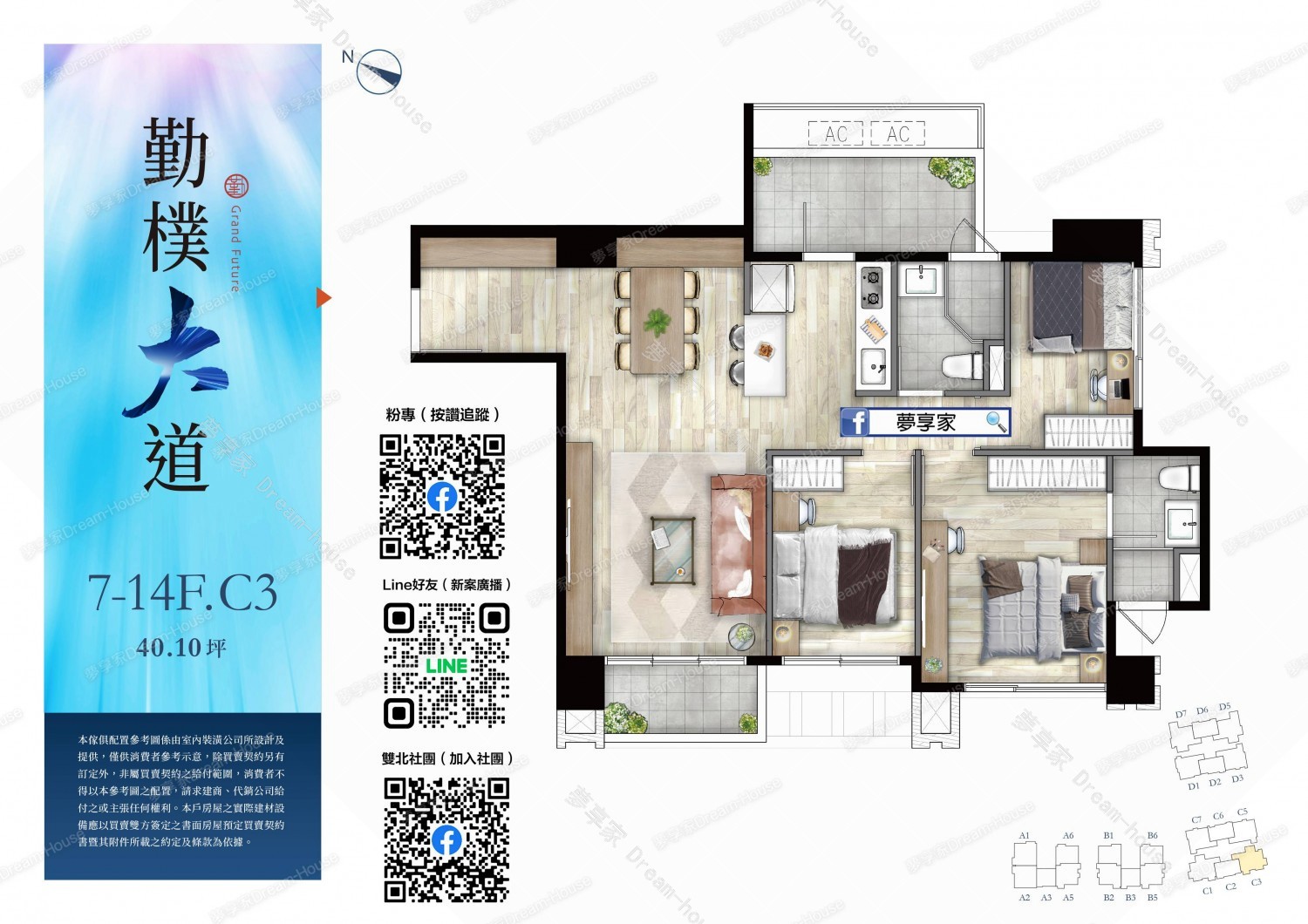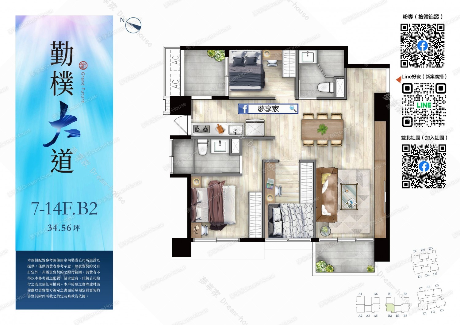 - 格局規劃 2房23~26坪 , 3房28~41坪