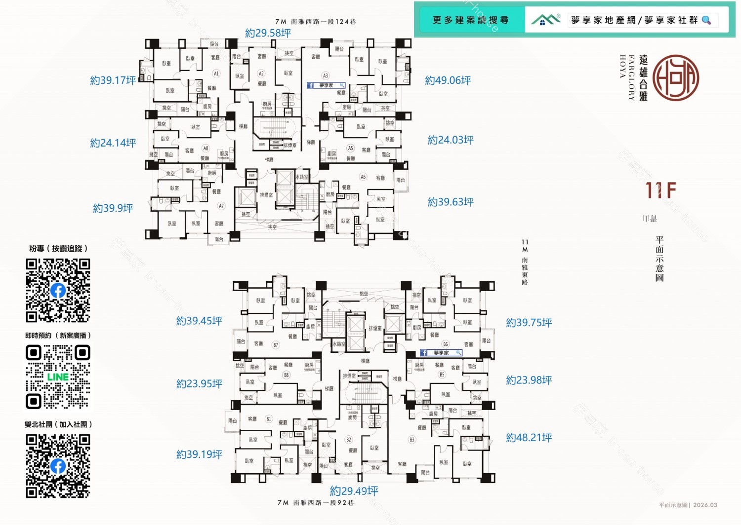 - 格局/坪數 約2房24~29坪 , 3房39~48坪 , 4房66坪
