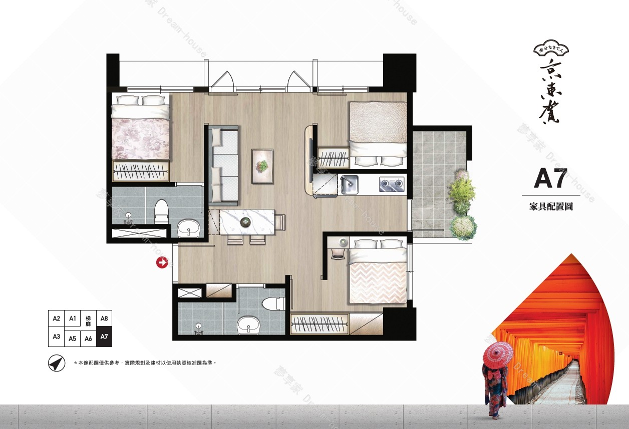 - 格局規劃 2房18~19坪 , 3房26.57坪