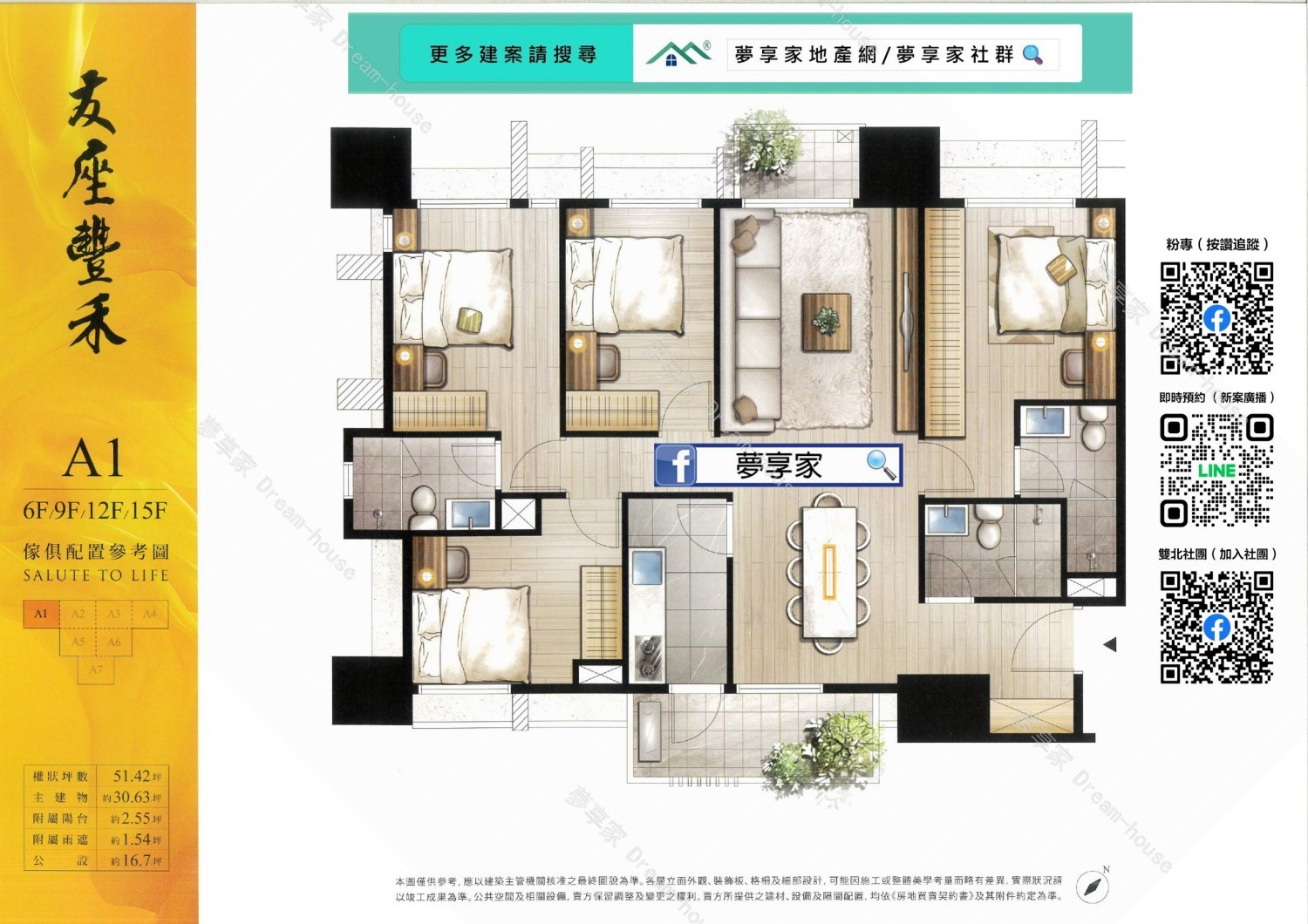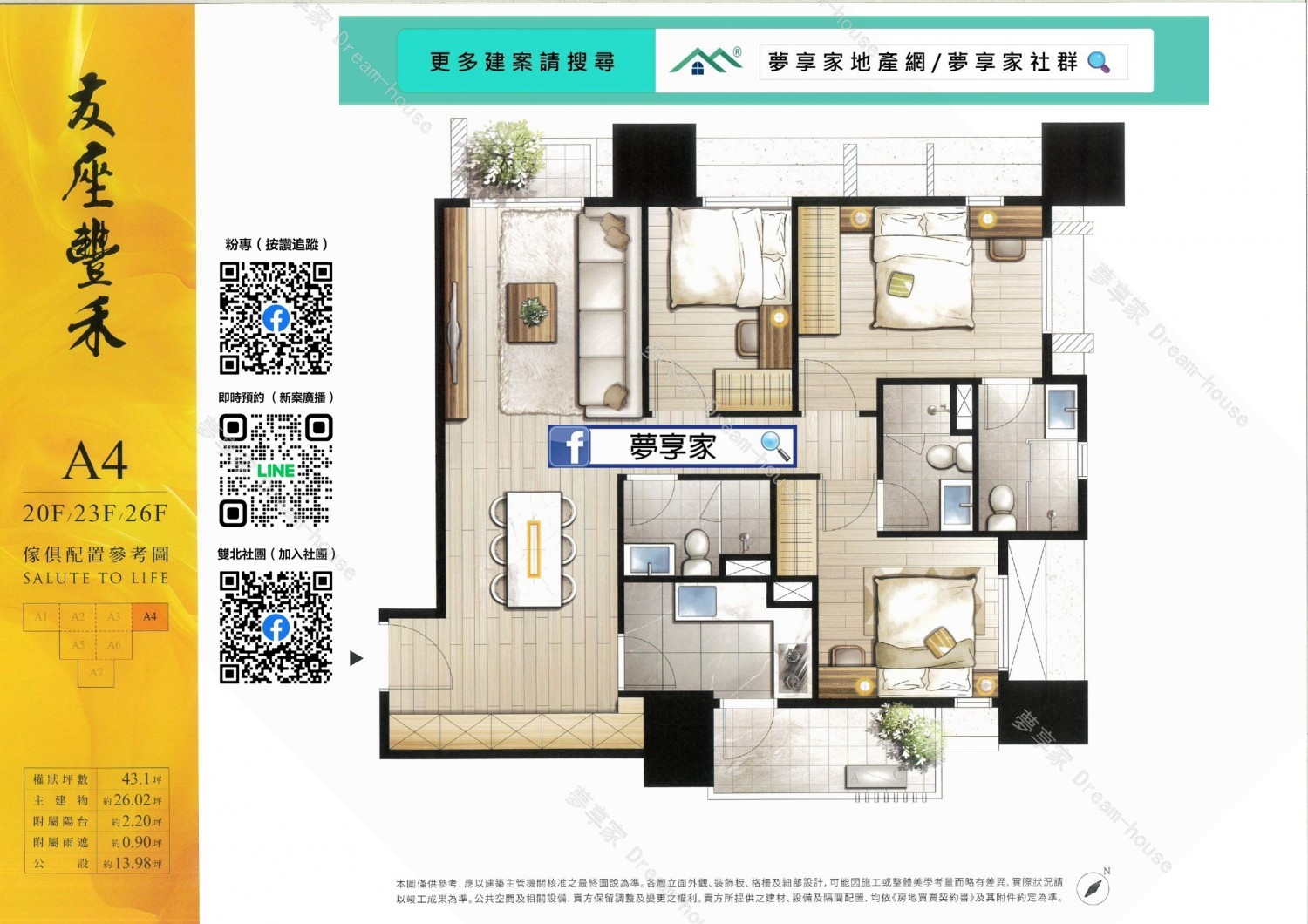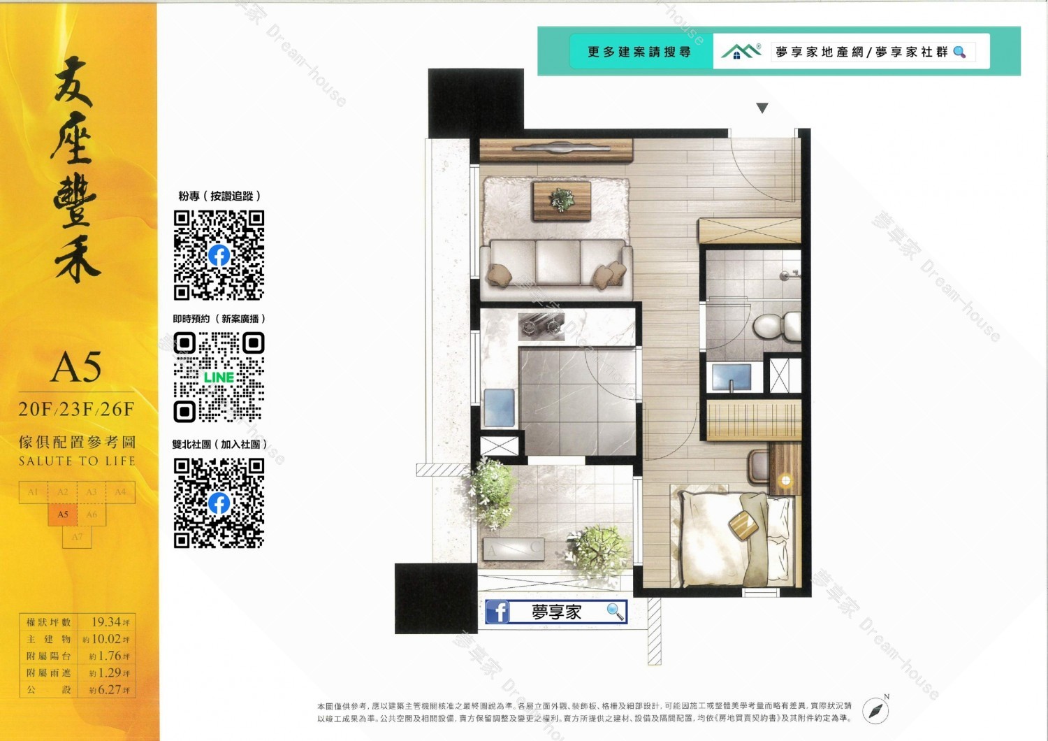 - 格局規劃 約1房19坪 , 2房21~27坪 , 3房30~43坪 , 4房47~51坪